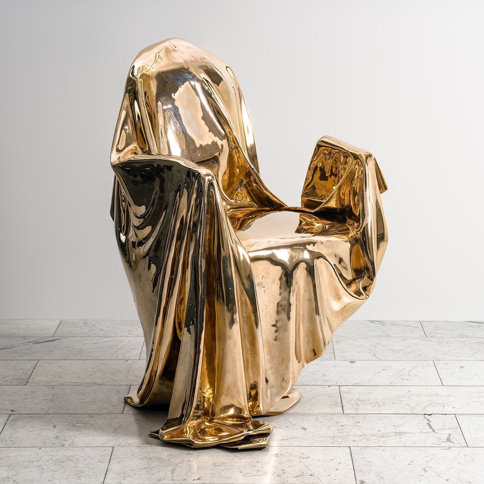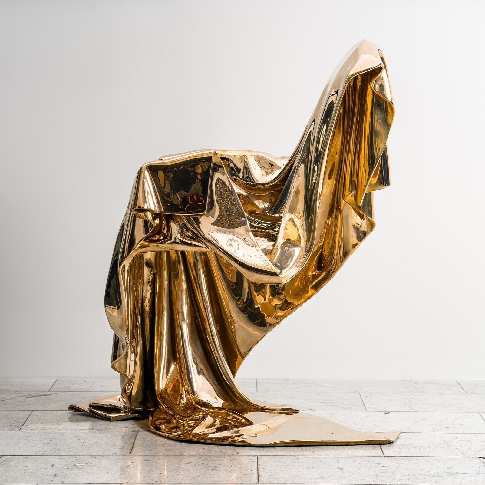 In this remarkable armchair, a masterwork of artistic ingenuity and technical virtuosity, we bear witness to an exquisite fusion of form, materiality, and conceptual depth. Crafted entirely from cast bronze, its mirror polish finish evokes an unrivaled luminosity that beckons viewers to immerse themselves in its transcendent allure.