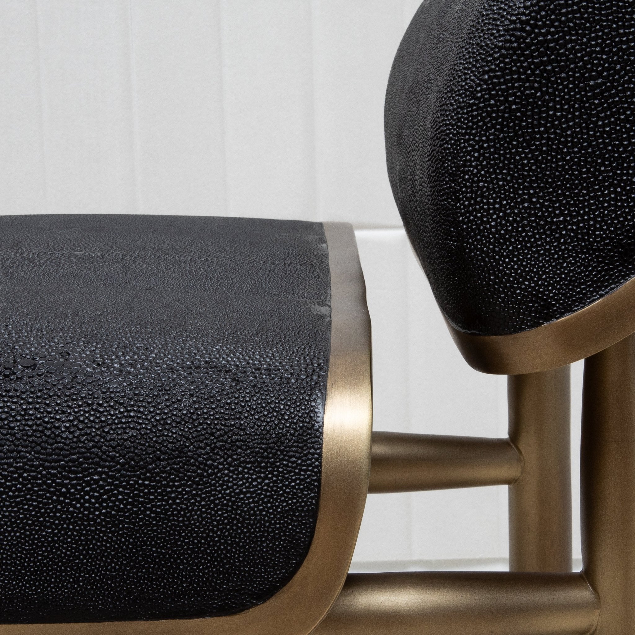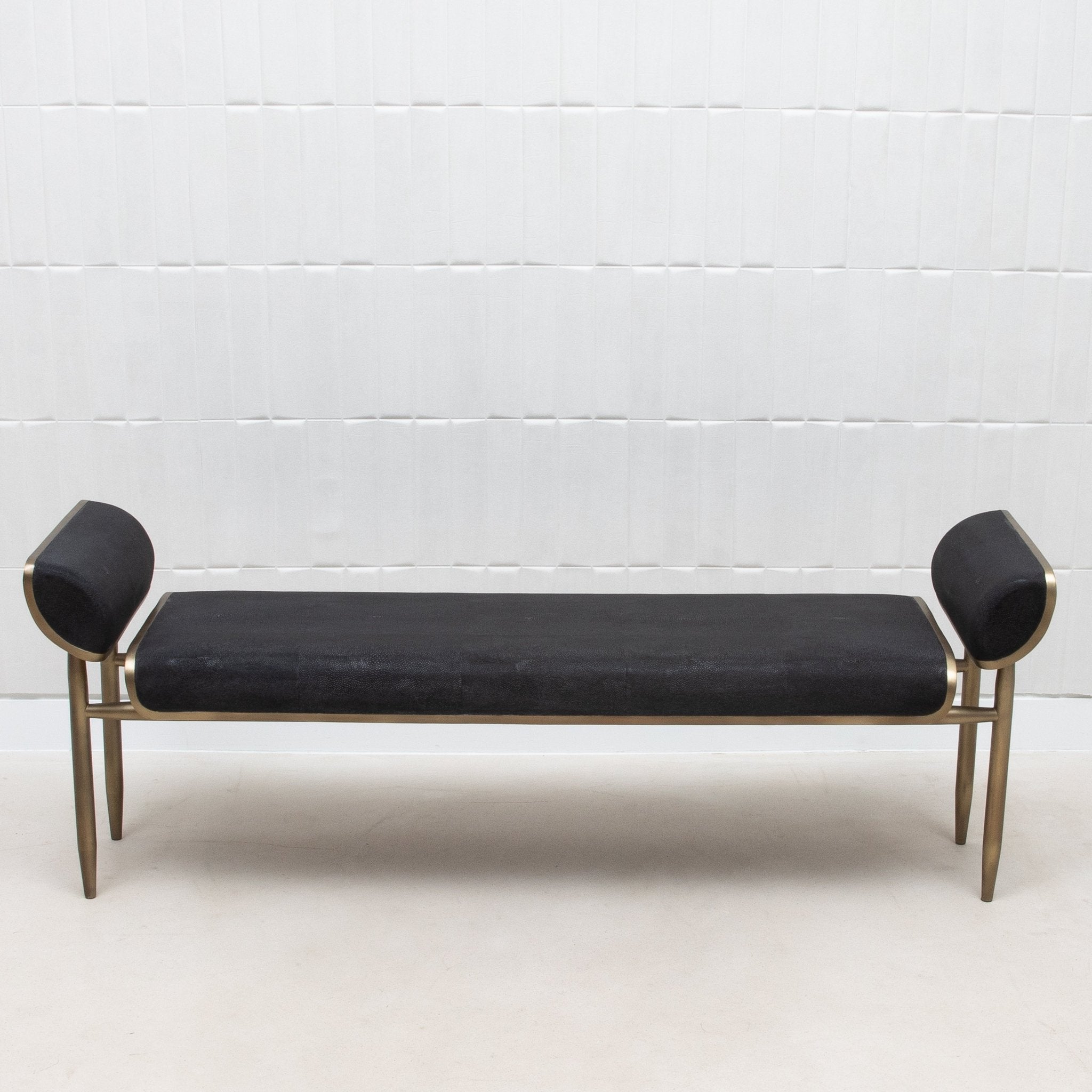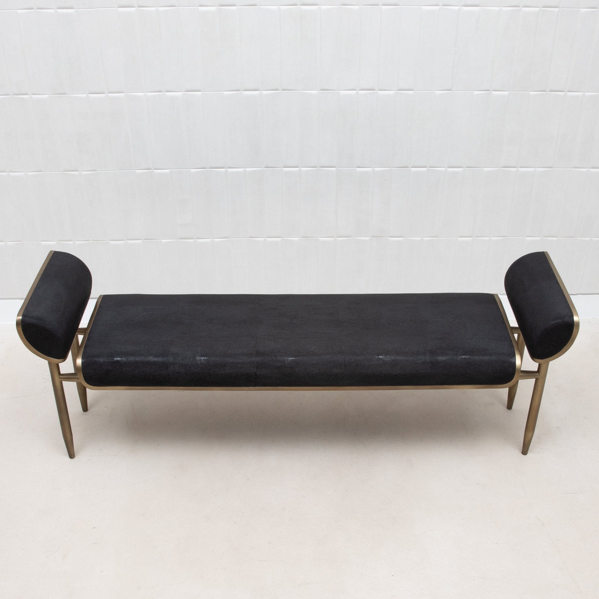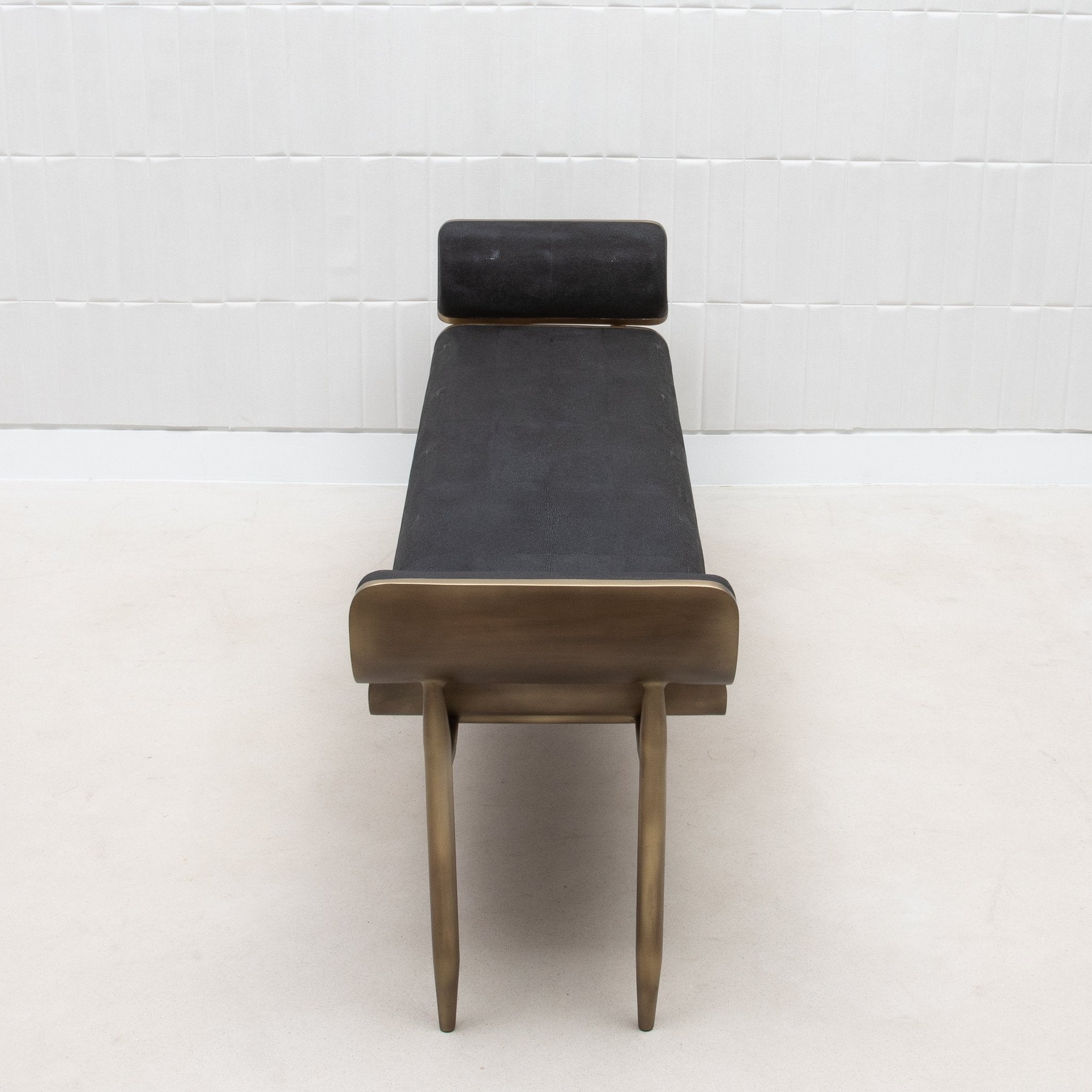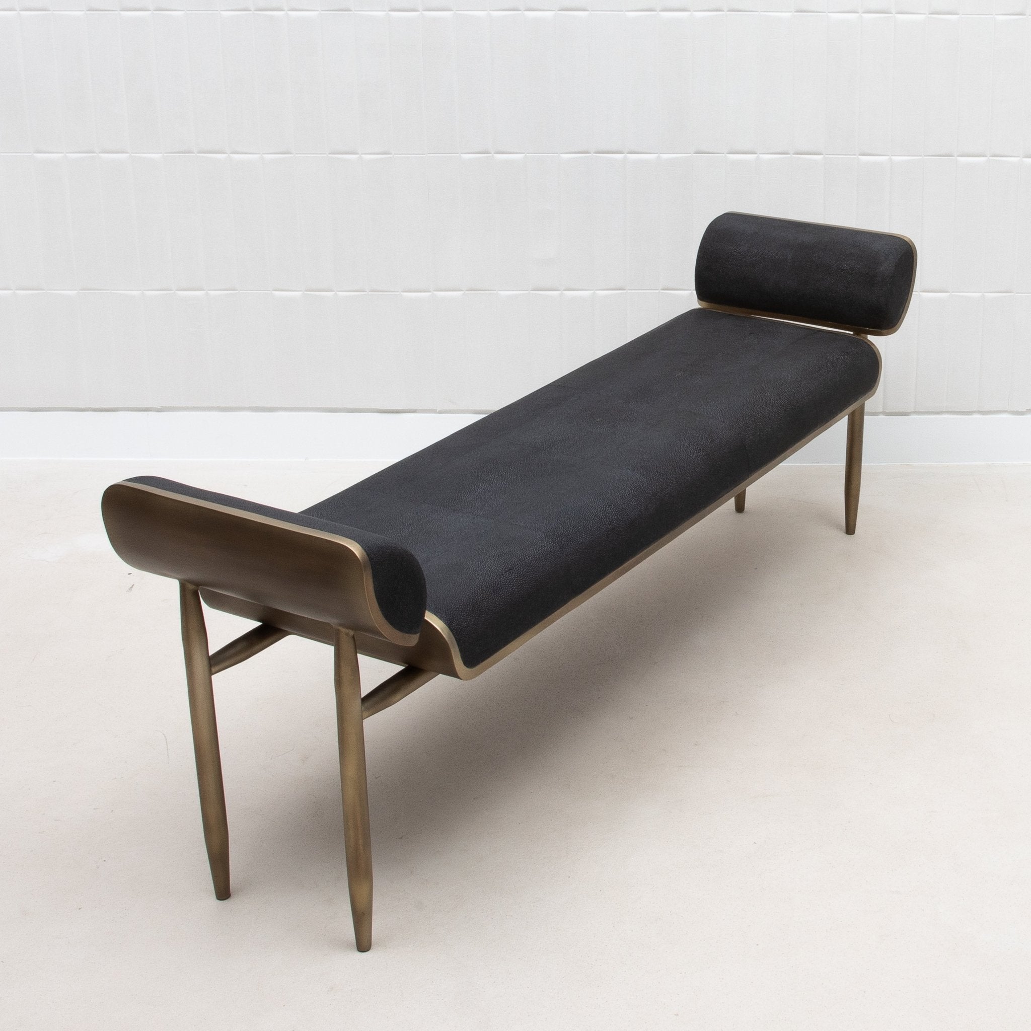 Bench in Black Shagreen with Bronze Patina Brass by Kifu Paris