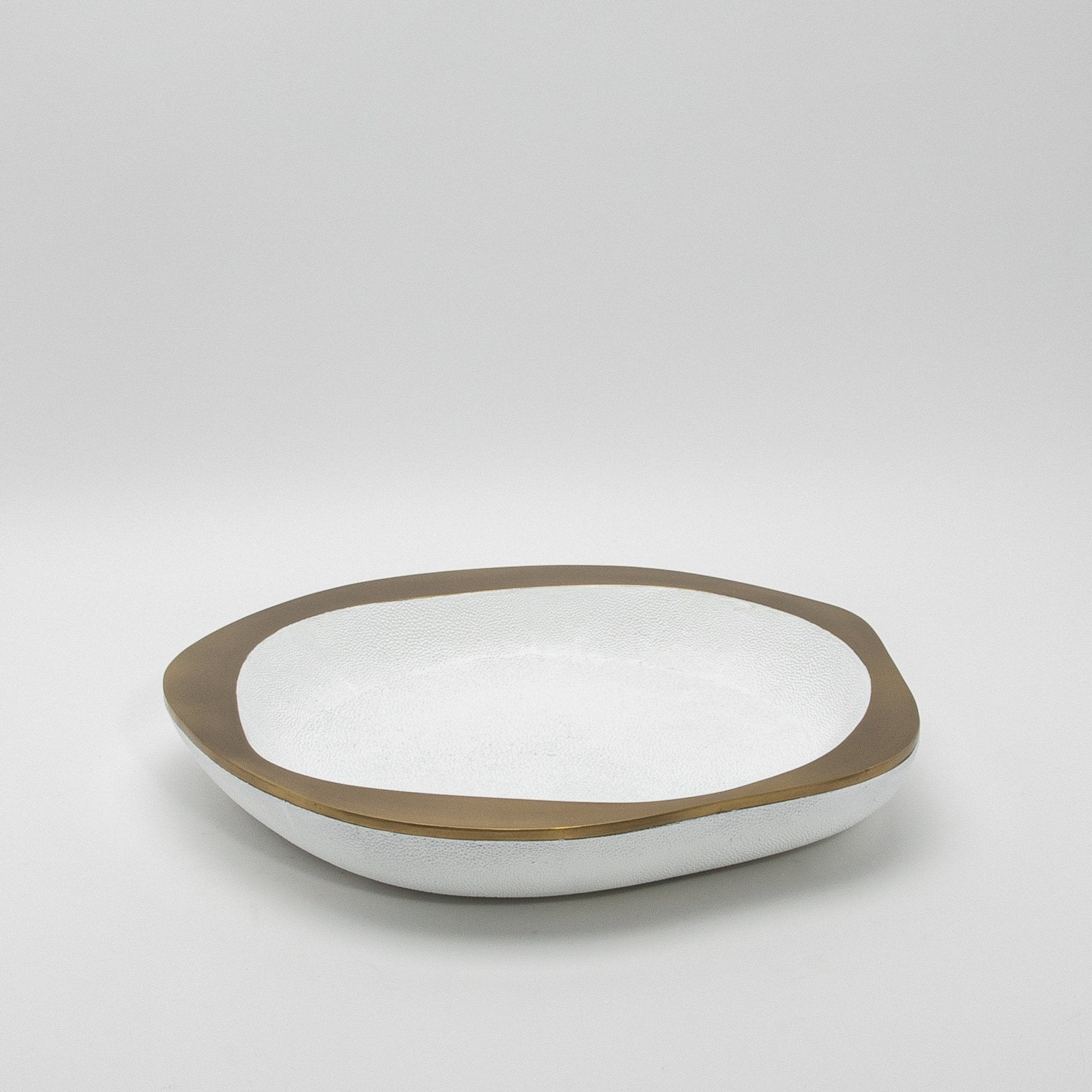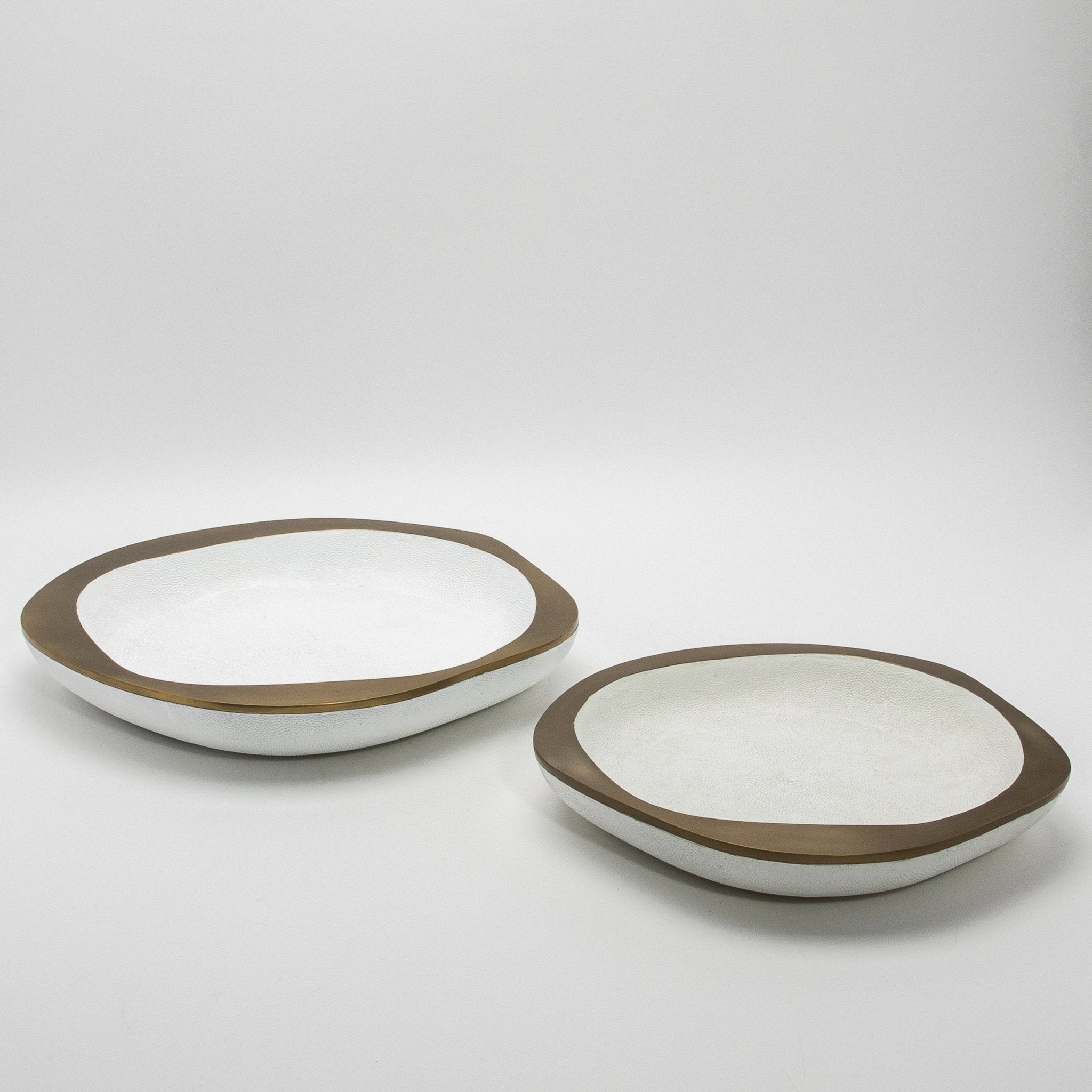 Bowl in White Shagreen with Bronze Patina Brass Details R&Y Augousti