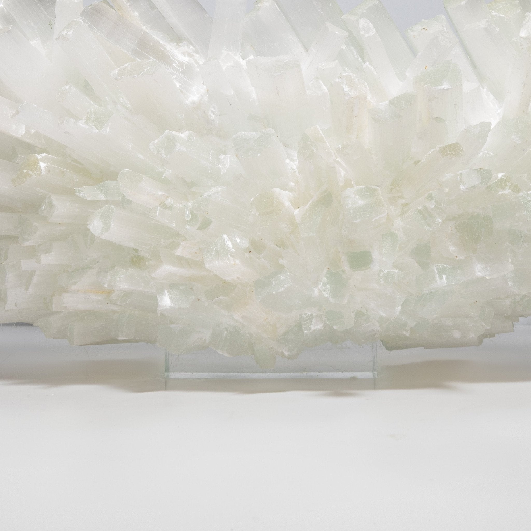 Selenite, characterized by its milky white translucency and fine striations, exudes a sense of purity and tranquility. Its smooth surface reflects light gently, creating a serene ambiance that enhances any environment.
