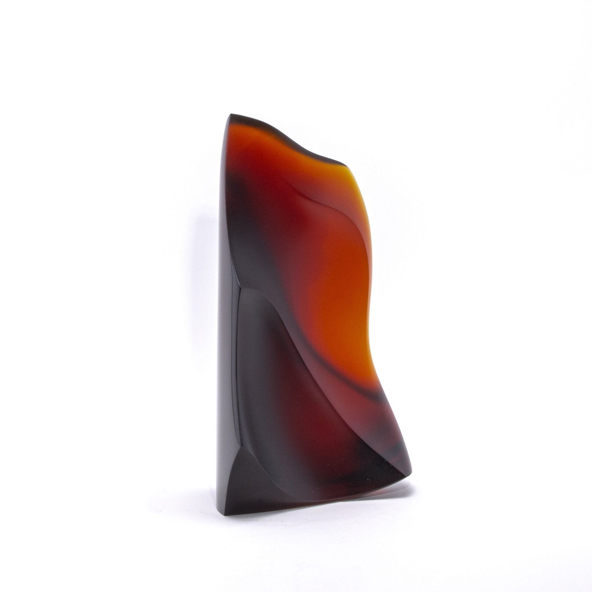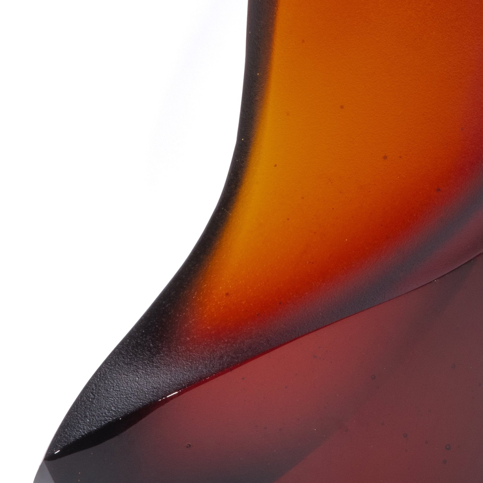 Sculpted from cast glass and polished by hand, Peter Bremers’ “C&D ’09-17 Wind’s Lament” exudes the haunting elegance of a canyon kissed by twilight. Deep gradients of ember red and obsidian black collide across fluid contours, reminiscent of wind-swept sandstone formations carved by time and silence. The sculpture’s shape—at once commanding and sensual—channels natural motion frozen mid-whisper, as if capturing the moment a gust dances through a desert ravine. With both matte and glossy finishes, it invites a tactile curiosity, shifting in depth and temperature with the light. Part of Bremers’ Canyon and Deserts Series, this one-of-a-kind piece is more than sculpture—it is an ode to Earth’s raw poetic force. Every curve and shadow tells a story of stillness in motion, offering a contemplative centerpiece that commands reverence while maintaining an ethereal lightness of spirit. Ideal for collectors drawn to elemental beauty and sculptural drama.