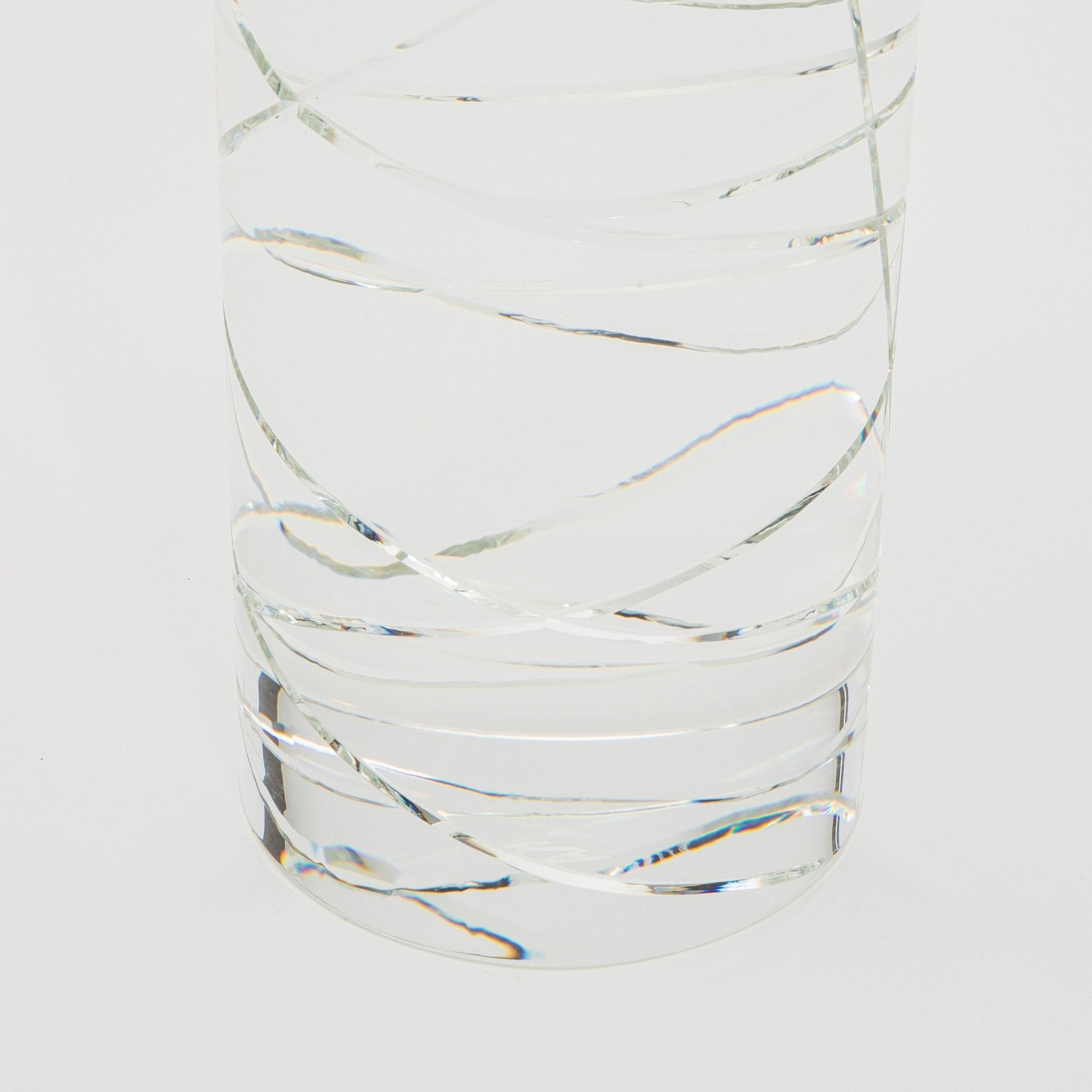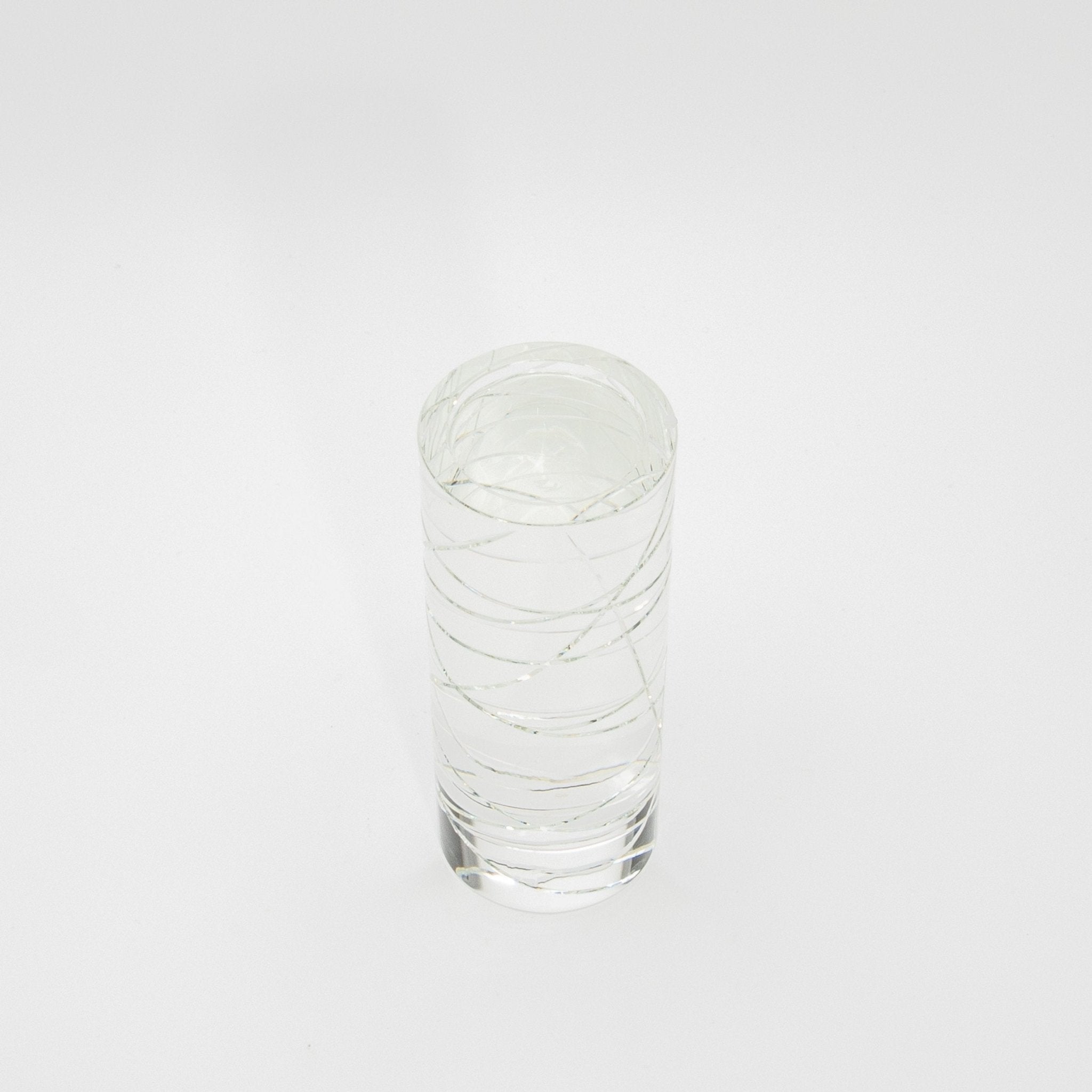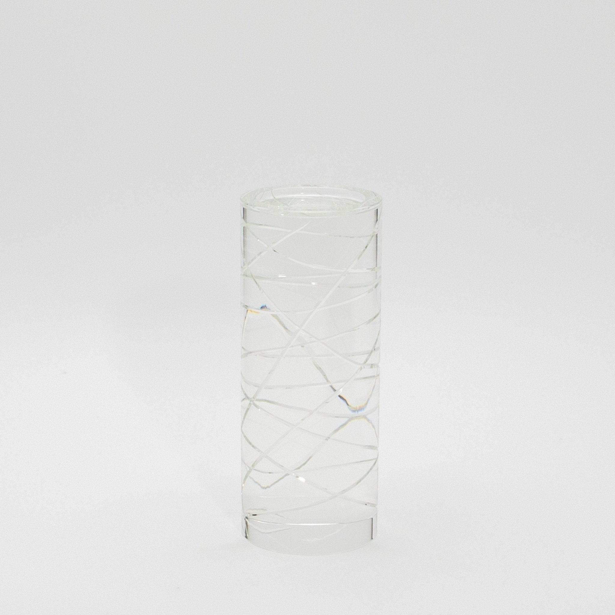 The Chaos Pillar by KA Glass is a stunning embodiment of craftsmanship and artistry, made from meticulously hand-crafted crystal glass. This exquisite pillar candle holder captivates with its bold, sculptural form, where fluid lines and geometric angles interplay to create a sense of movement and light. The transparency and clarity of the crystal glass allow it to catch and refract light, transforming the ambiance of any space it inhabits.