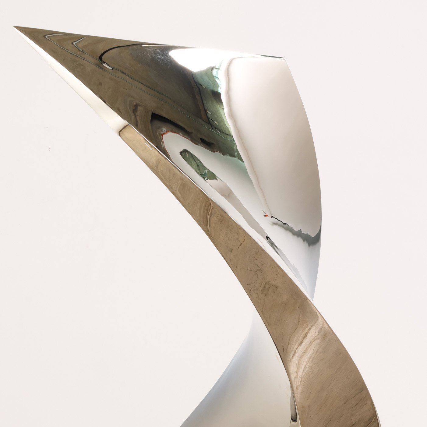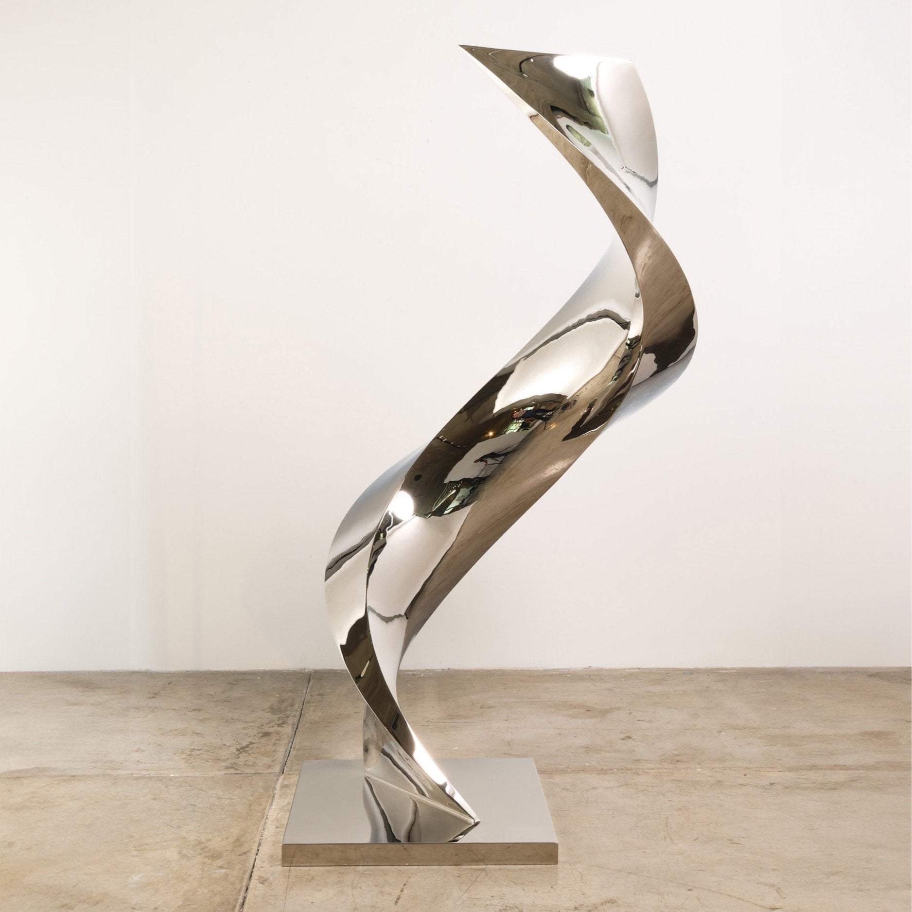 Crafted from mirror-polished stainless steel, the piece showcases Katz Studio's mastery of materials and precision. The highly reflective surface creates a constantly shifting interplay of light and shadow, bringing the static form to life with fluid movement and energy.