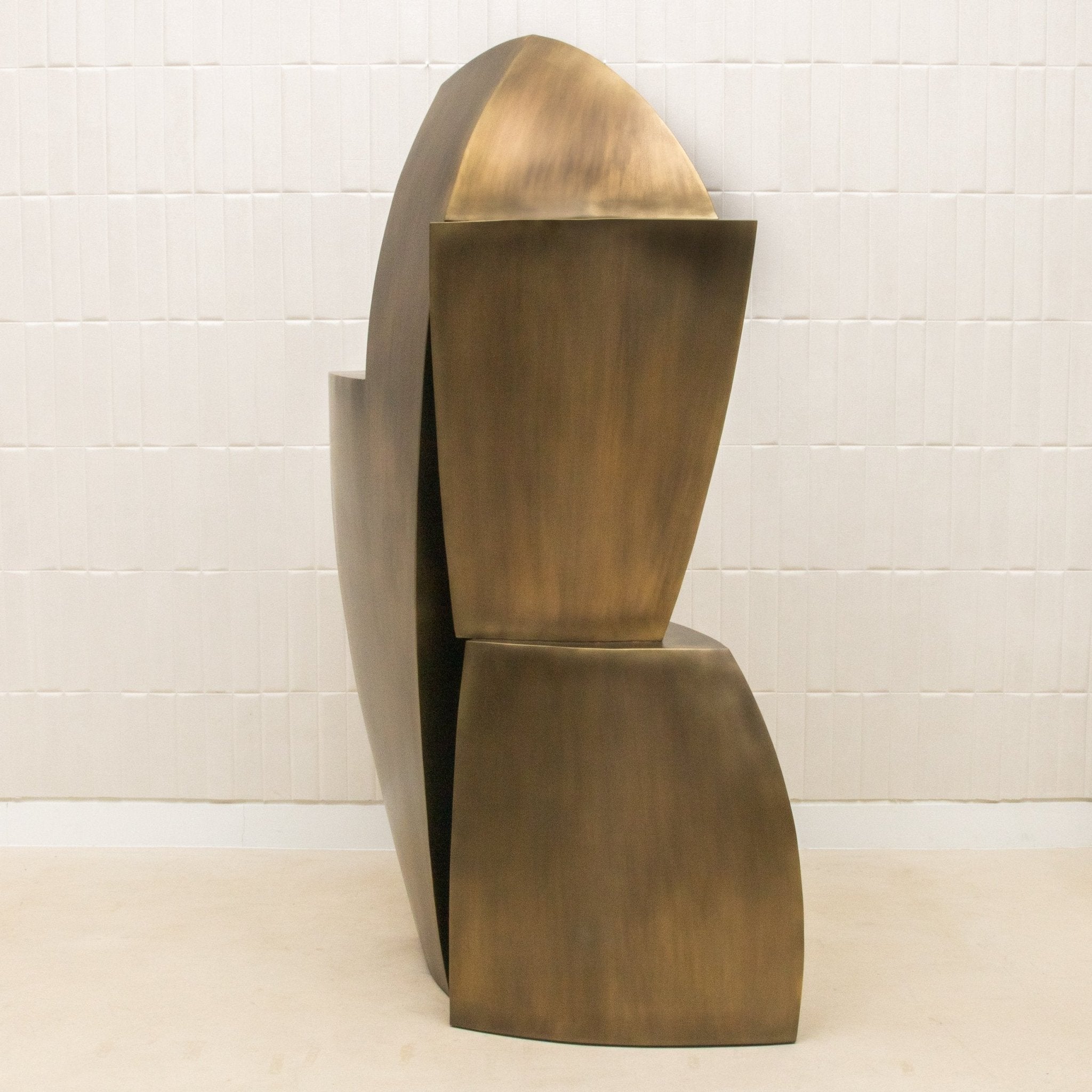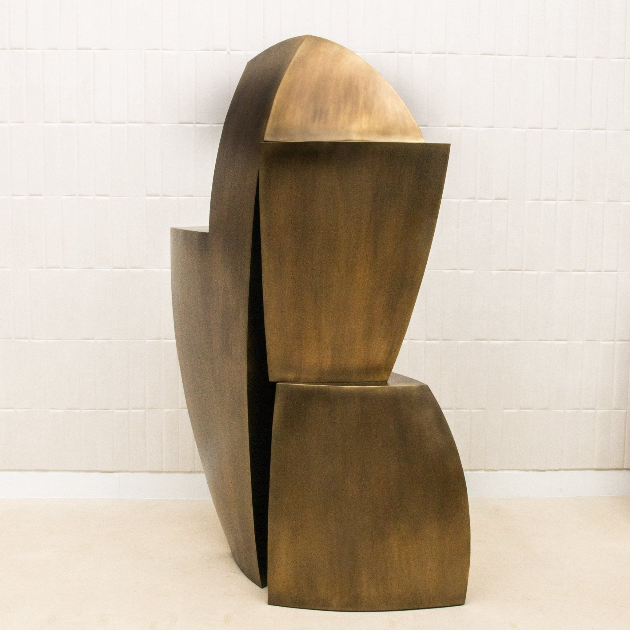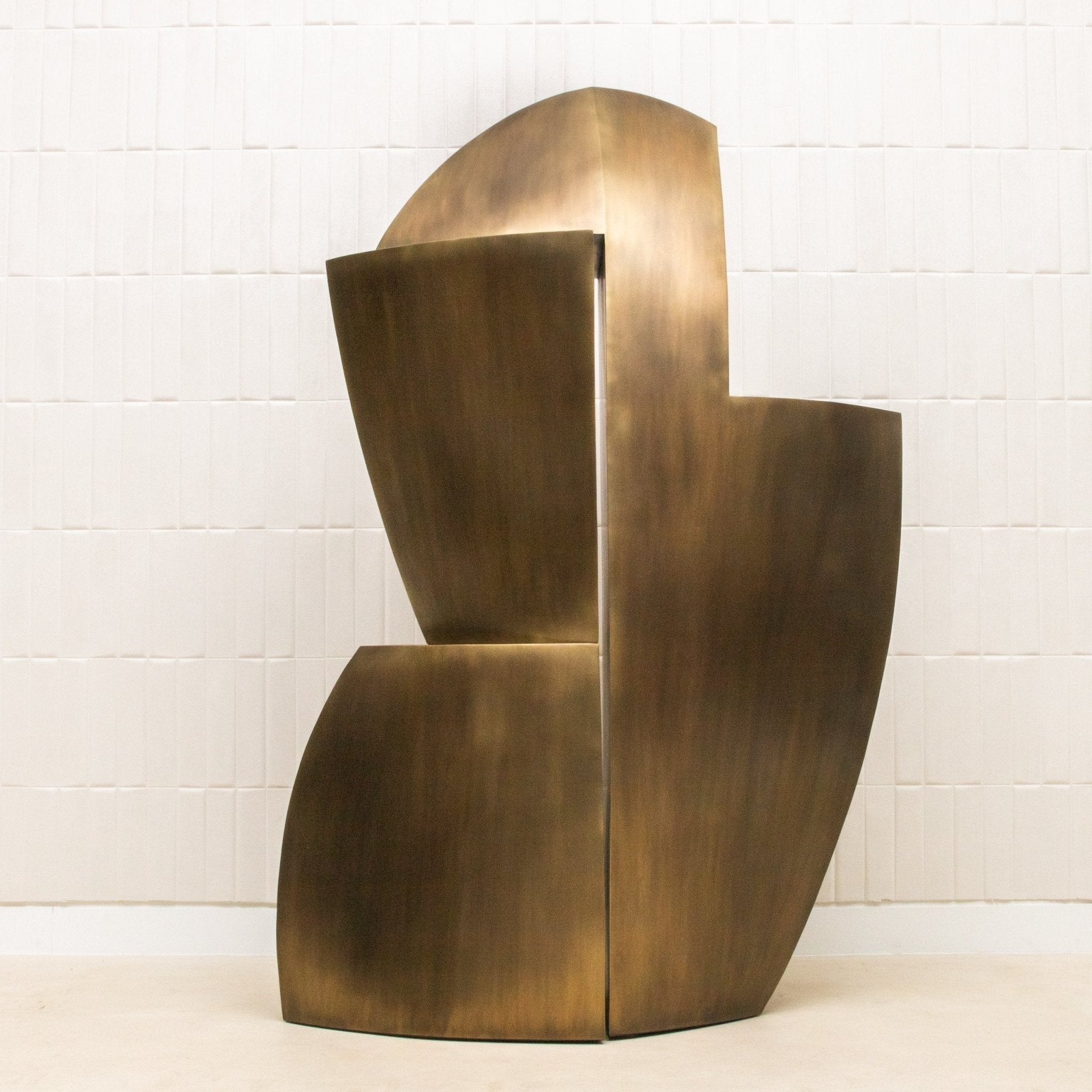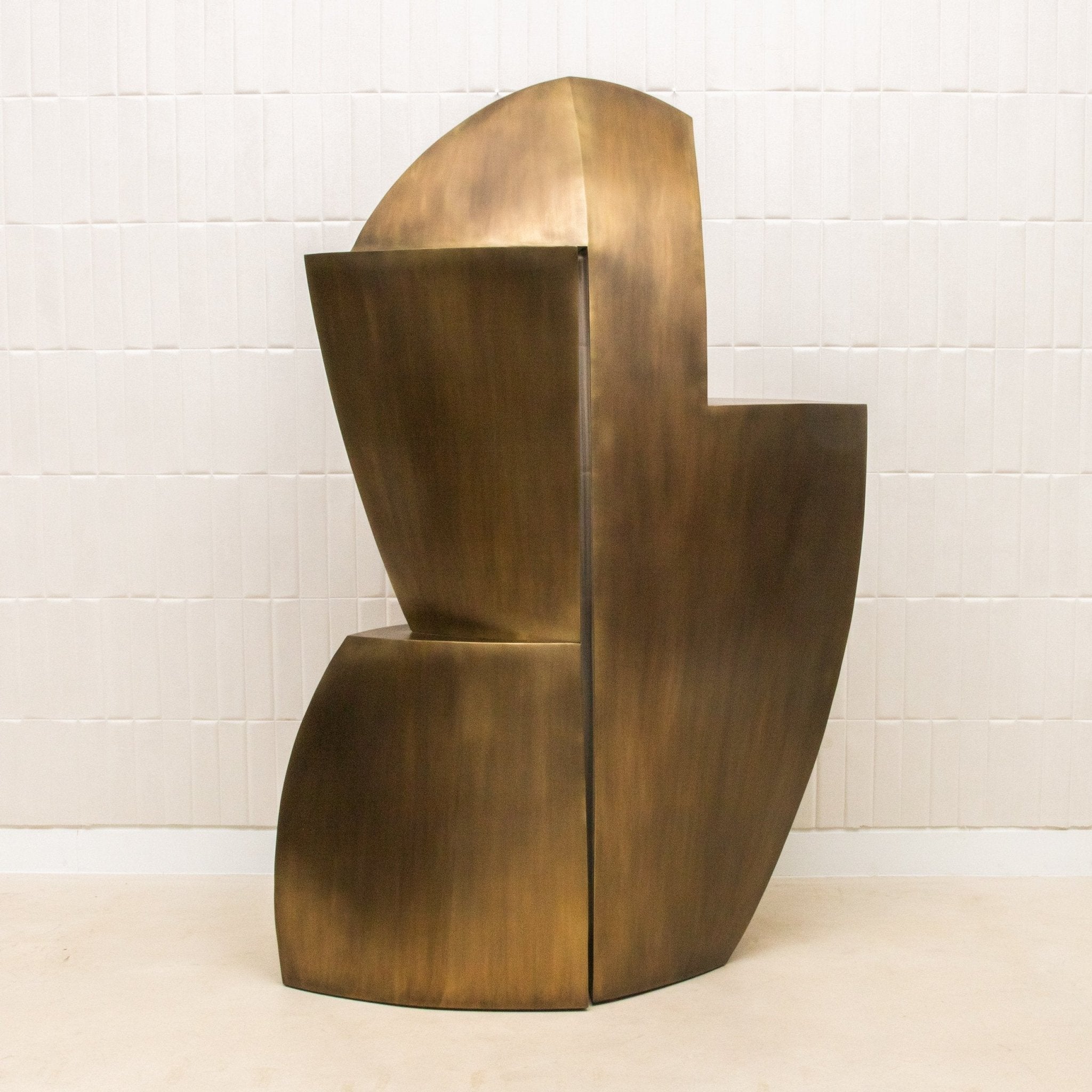A masterclass in sculptural design and exclusivity, The Deconstructed Tower by Patrick Coard Paris is meticulously handcrafted from fiberglass and inlaid with bronze patina brass that radiates depth and tonal complexity. The materiality is substantial, with a commanding weight that anchors the piece both physically and visually. Its form rises in a powerful asymmetrical rhythm—each geometric shift and angular plane precisely composed to evoke a sense of movement frozen in time. The bold contrast between the smooth brass detailing and the textured patina creates an arresting surface that shimmers subtly under ambient light, making every viewing a discovery. This is not merely a sculptural object, but an exclusive piece of collectible design—crafted in limited numbers and infused with the artist’s signature refinement. The Deconstructed Tower is a statement of elevated taste, a monumental presence designed for interiors where art and design converge in their most luxurious form.