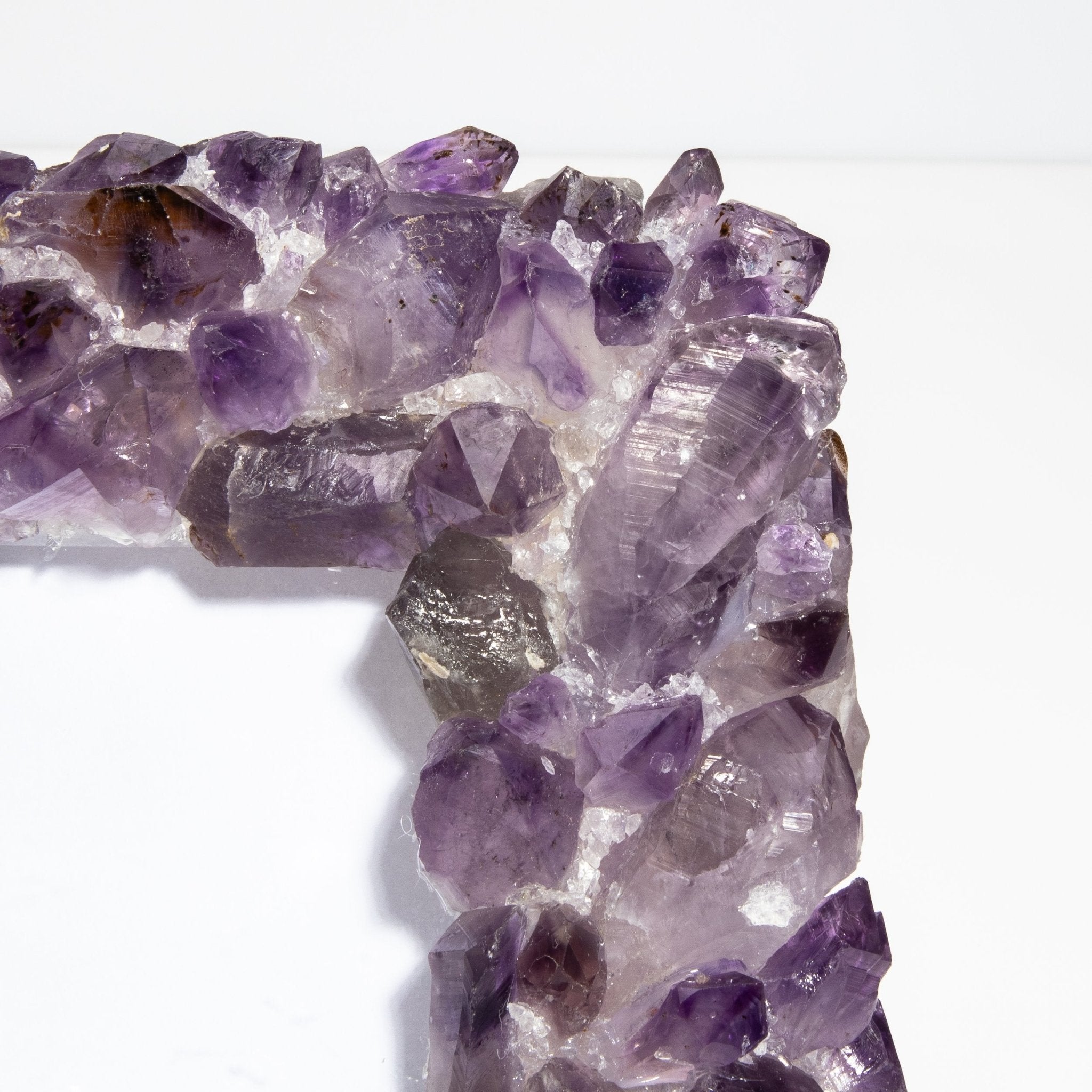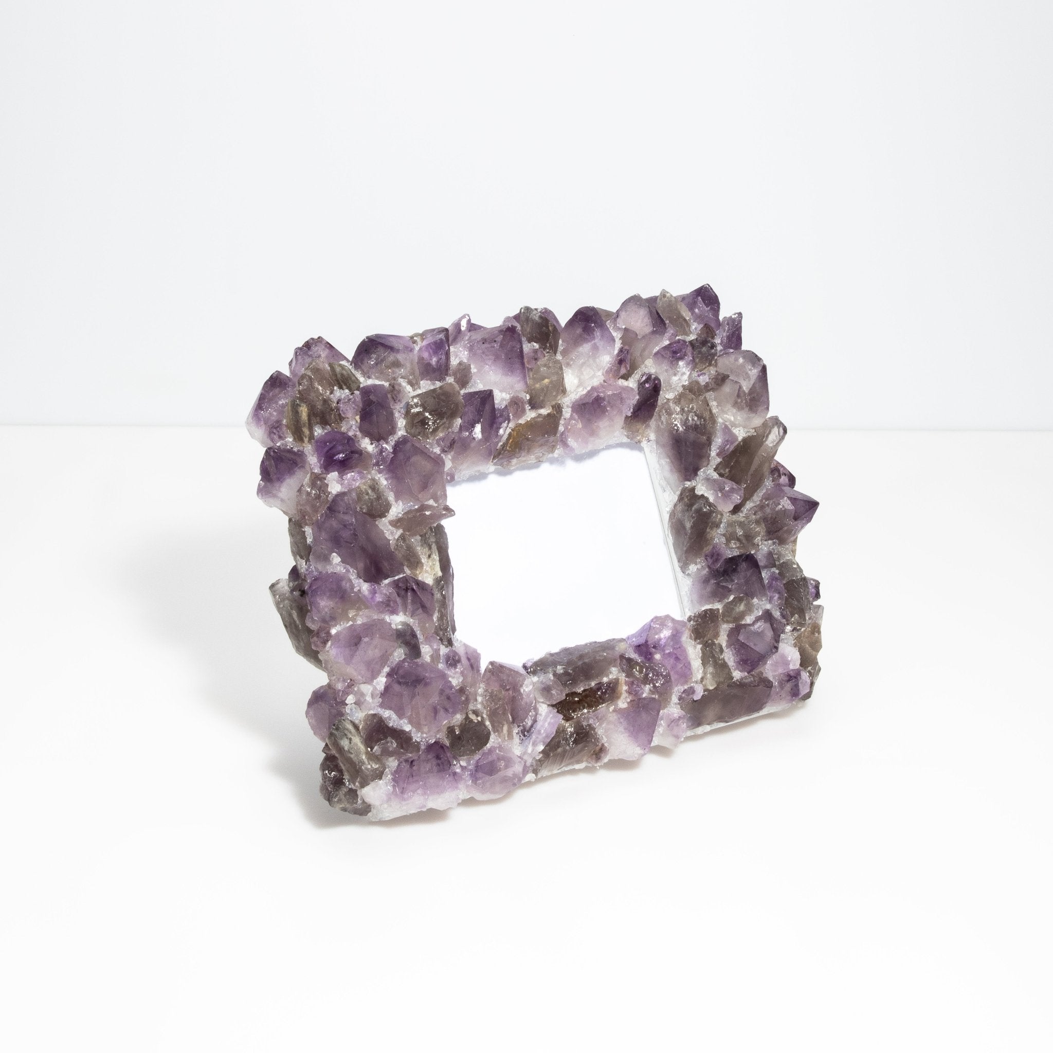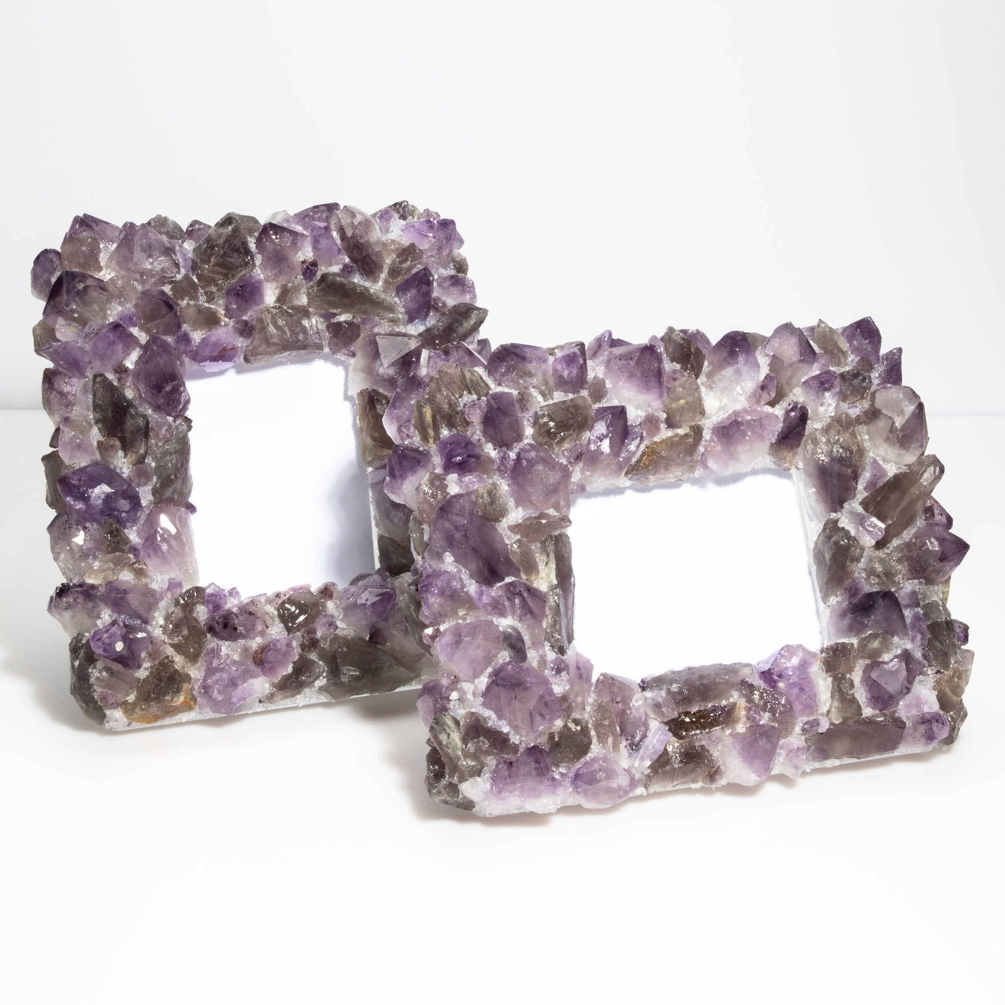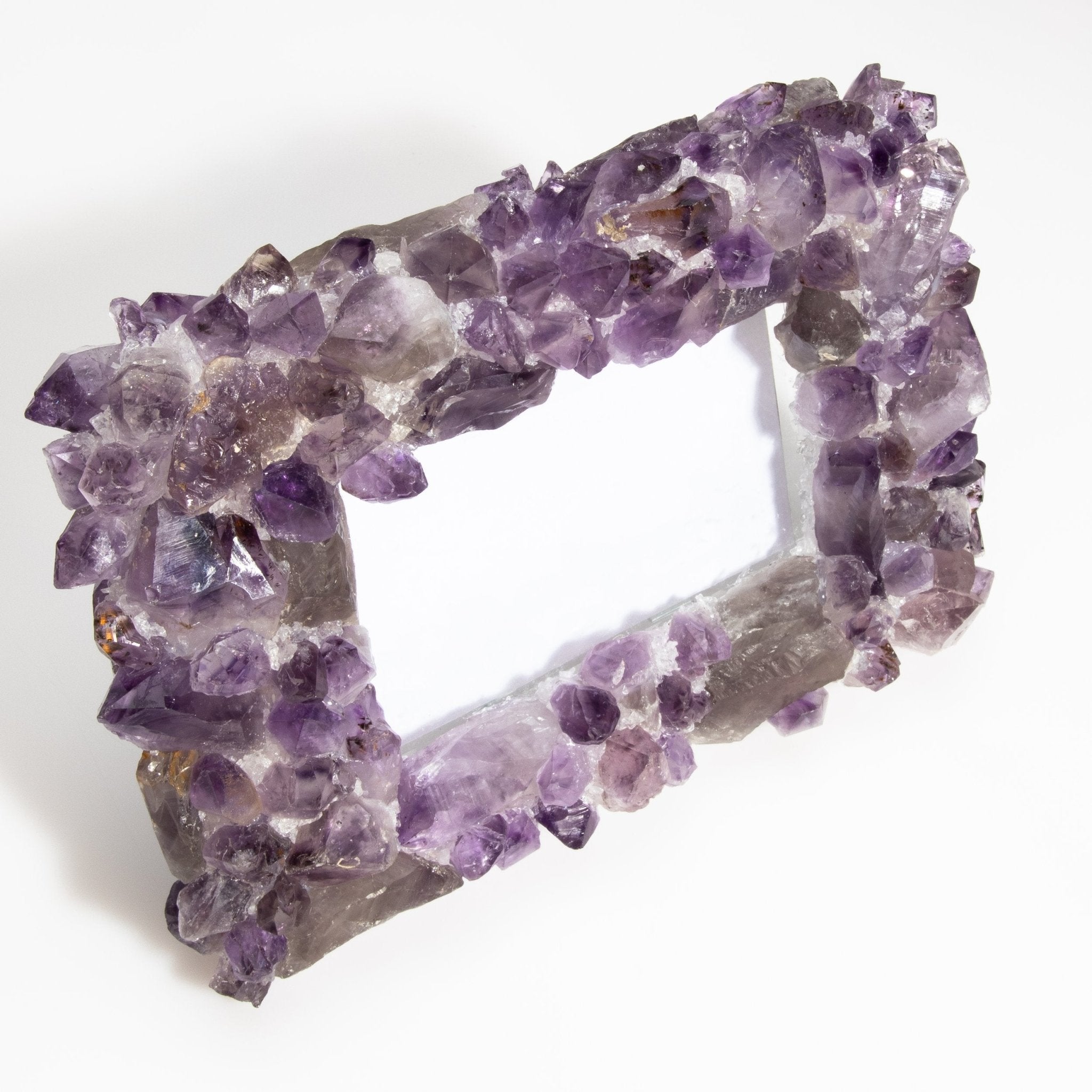 This Kathryn McCoy frame, adorned with amethyst, is a perfect blend of elegance and natural beauty. The frame showcases the intricate structure and deep, rich tones of amethyst, making it a standout piece for any high-end interior. Handcrafted by skilled artisans, the frame's unique design ensures that no two pieces are exactly alike, providing a truly one-of-a-kind addition to your decor. Ideal for displaying cherished memories, this frame not only serves a functional purpose but also adds a touch of luxury and sophistication to any space.