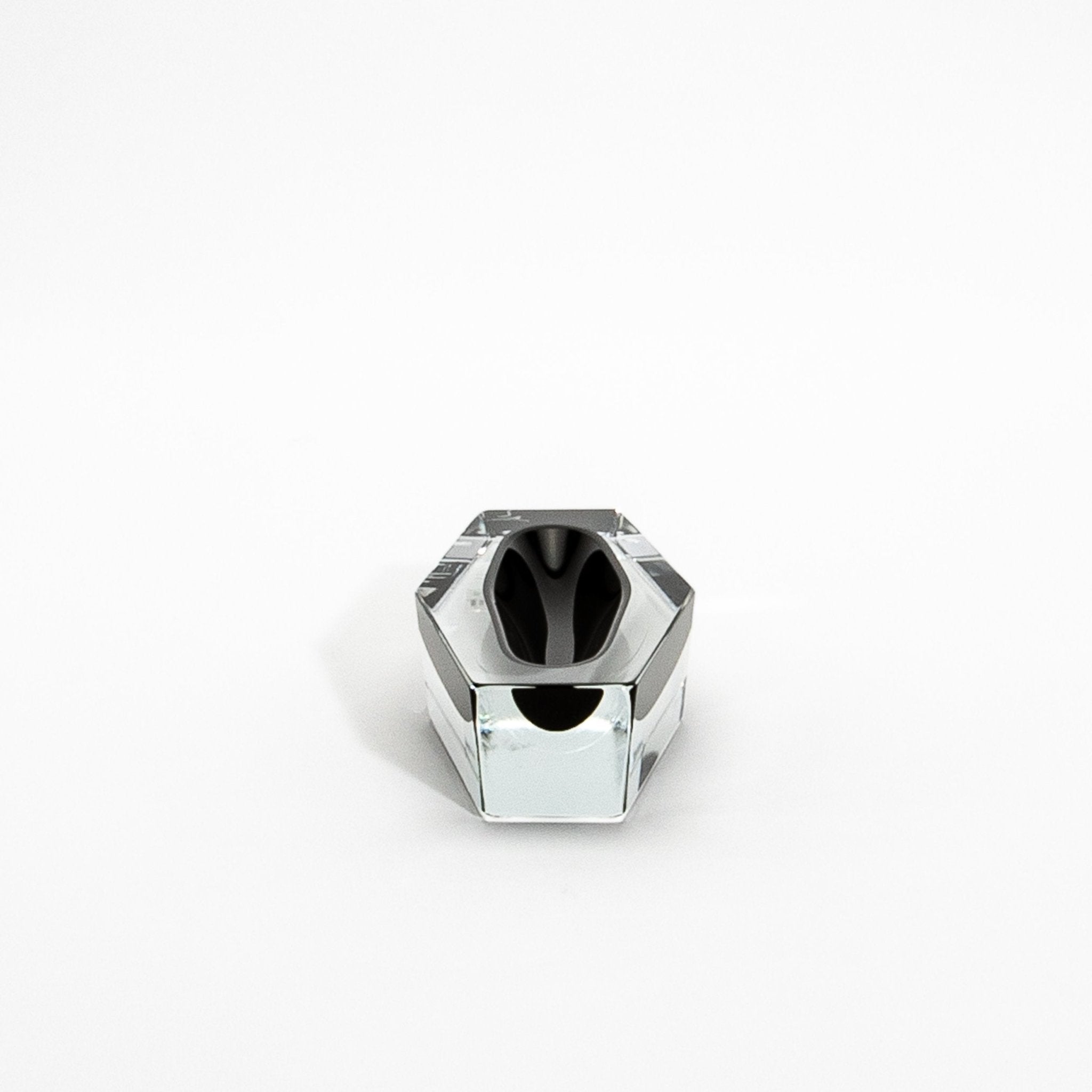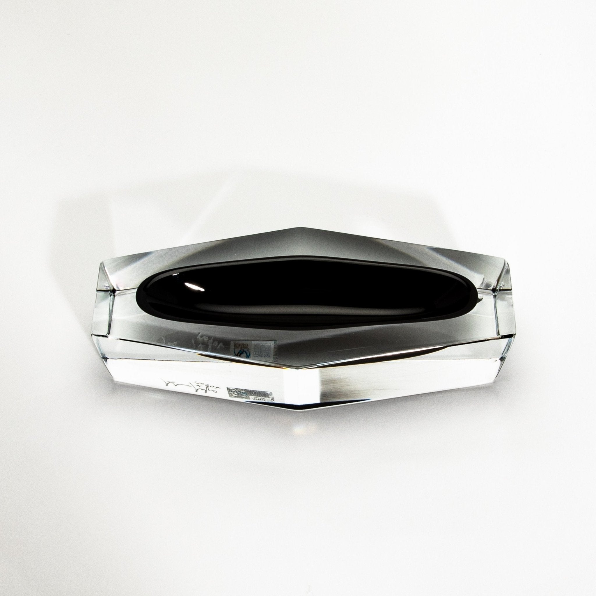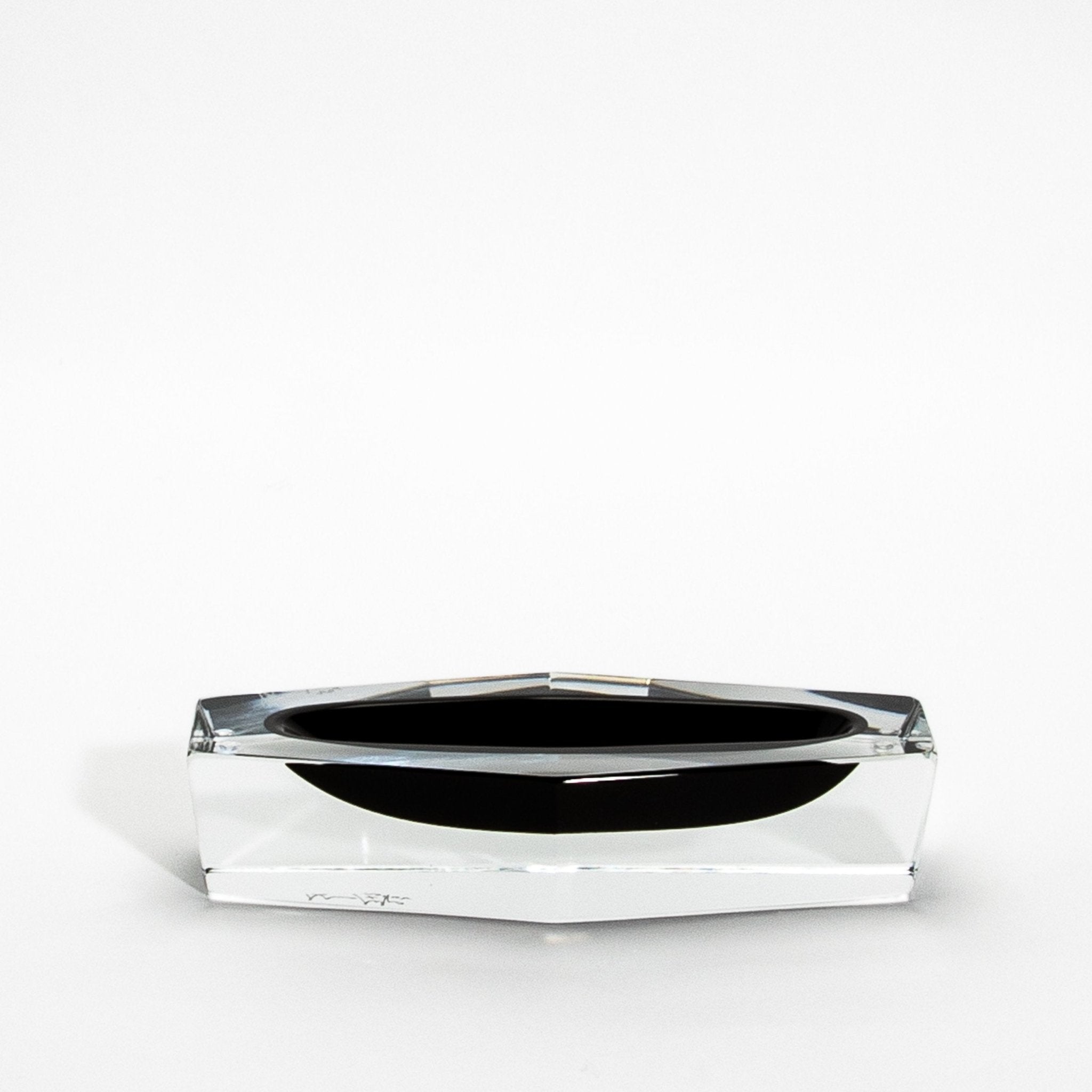 This hand-blown Murano ashtray in Onyx Black exemplifies the sophistication and artistry of Murano craftsmanship. Its geometric form and precise contours create a striking balance between modern elegance and timeless design. The deep black core, encased within a crystalline glass structure, gives the piece a mesmerizing depth and luminous clarity, making it a standout accent for any luxury space. Expertly handcrafted using time-honored techniques, this ashtray is not just functional but a sculptural masterpiece. Whether adorning a desk, coffee table, or sideboard, it elevates the ambiance with its refined simplicity and impeccable craftsmanship. A true collector's piece, this one-of-a-kind creation speaks to those with a discerning taste for understated luxury.