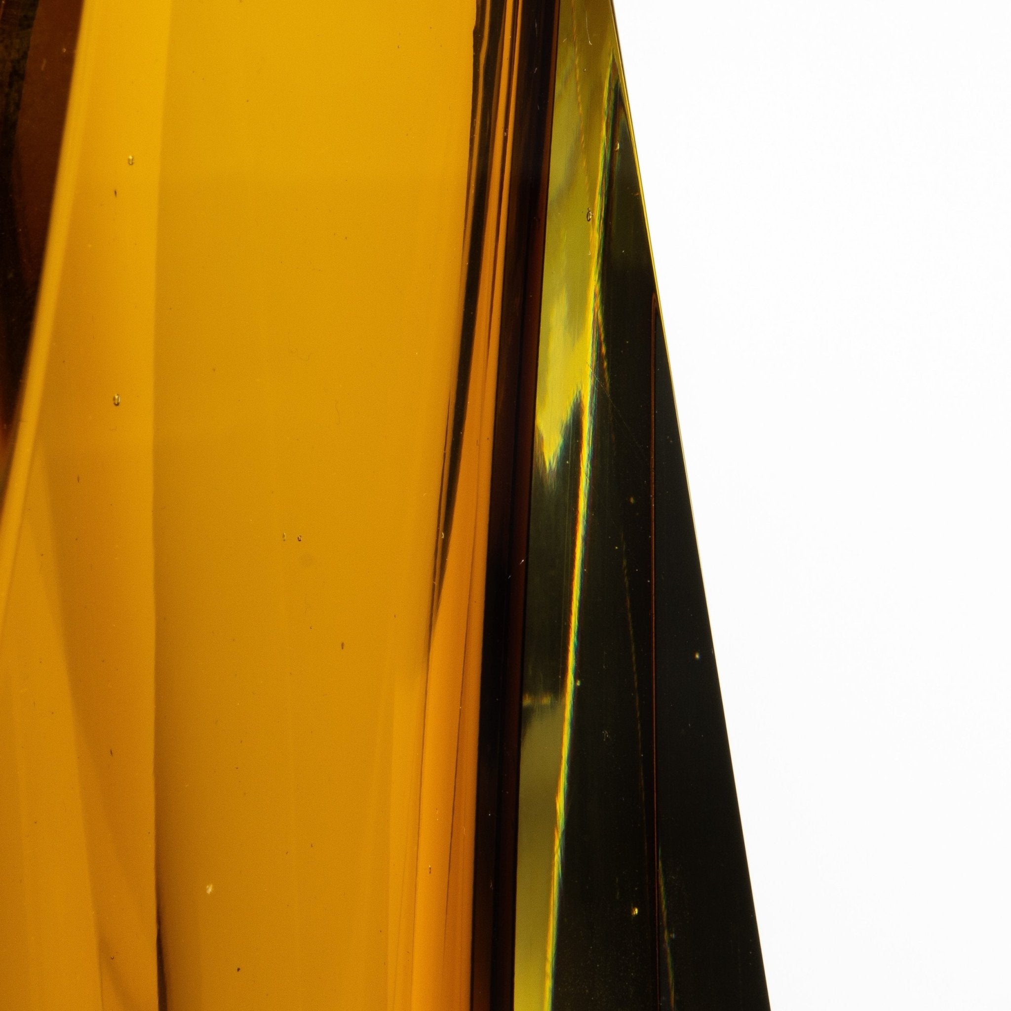 This striking rectangular vase showcases a captivating combination of amber hues and crystal-clear glass, evoking a sense of timeless elegance and sophistication. The seamless blend of these two elements creates an enchanting visual effect that draws the eye, making it a perfect centerpiece for any luxurious setting. Each facet of the vase is meticulously crafted, reflecting the dedication to quality and artistry synonymous with Murano glassmaking traditions.