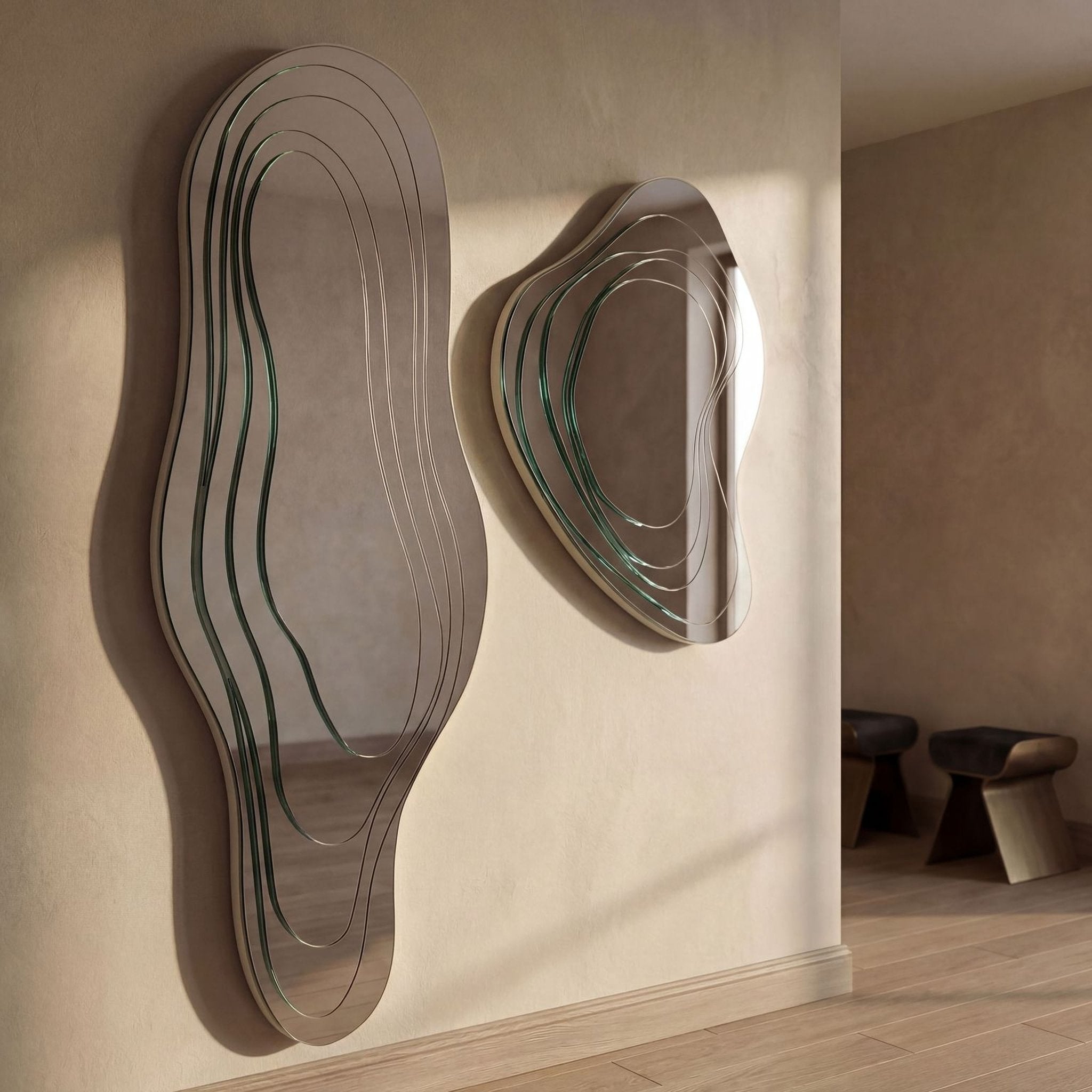 The Livelli Mirror by Barberini & Gunnell is a striking masterpiece of design, transforming functional decor into an artful exploration of dimension and perception. Inspired by architectural landscape models, this mirror plays with levels and layers, creating a three-dimensional illusion that distorts reality. The precision of the reflective surfaces invites contemplation as it shifts the viewer’s perspective, echoing the essence of contemporary architectural forms. The sinuous curves and layered reflections sculpt the surrounding light into mesmerizing contours, making it not just a mirror but a conversation piece. Crafted from security-glass mirror, each piece is a limited edition of 30, signed and numbered by the artists, ensuring exclusivity and artistry in every detail.