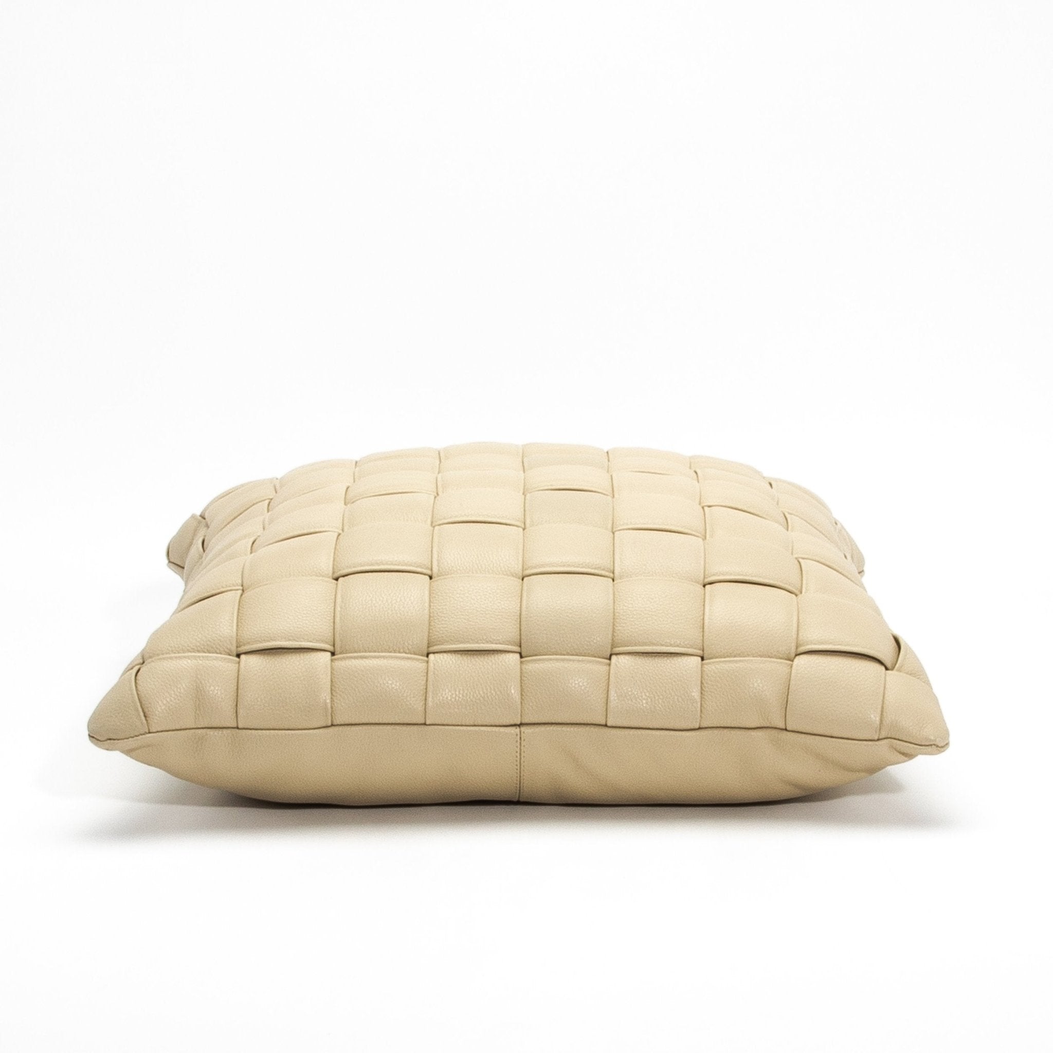 A sophisticated statement in modern luxury, this Modern Cream Woven Leather Decorative Pillow exudes timeless elegance and impeccable craftsmanship. The soft, creamy hue highlights the intricate woven leather technique, creating a visually rich and tactile texture that speaks of refined taste. Meticulously handcrafted, the pillow showcases the supple, high-quality leather's natural grain, blending durability with aesthetic appeal. Perfect for adding a touch of understated sophistication to any living space, its neutral tone harmonizes effortlessly with a variety of interior palettes. Designed for both style and comfort, this pillow embodies the essence of luxurious living.