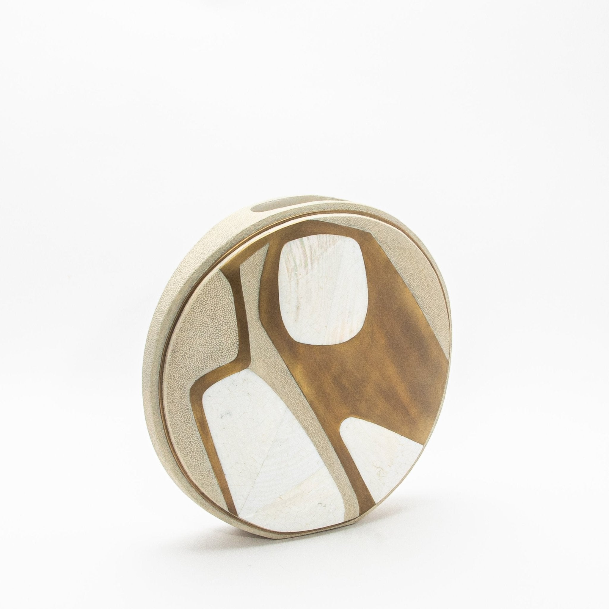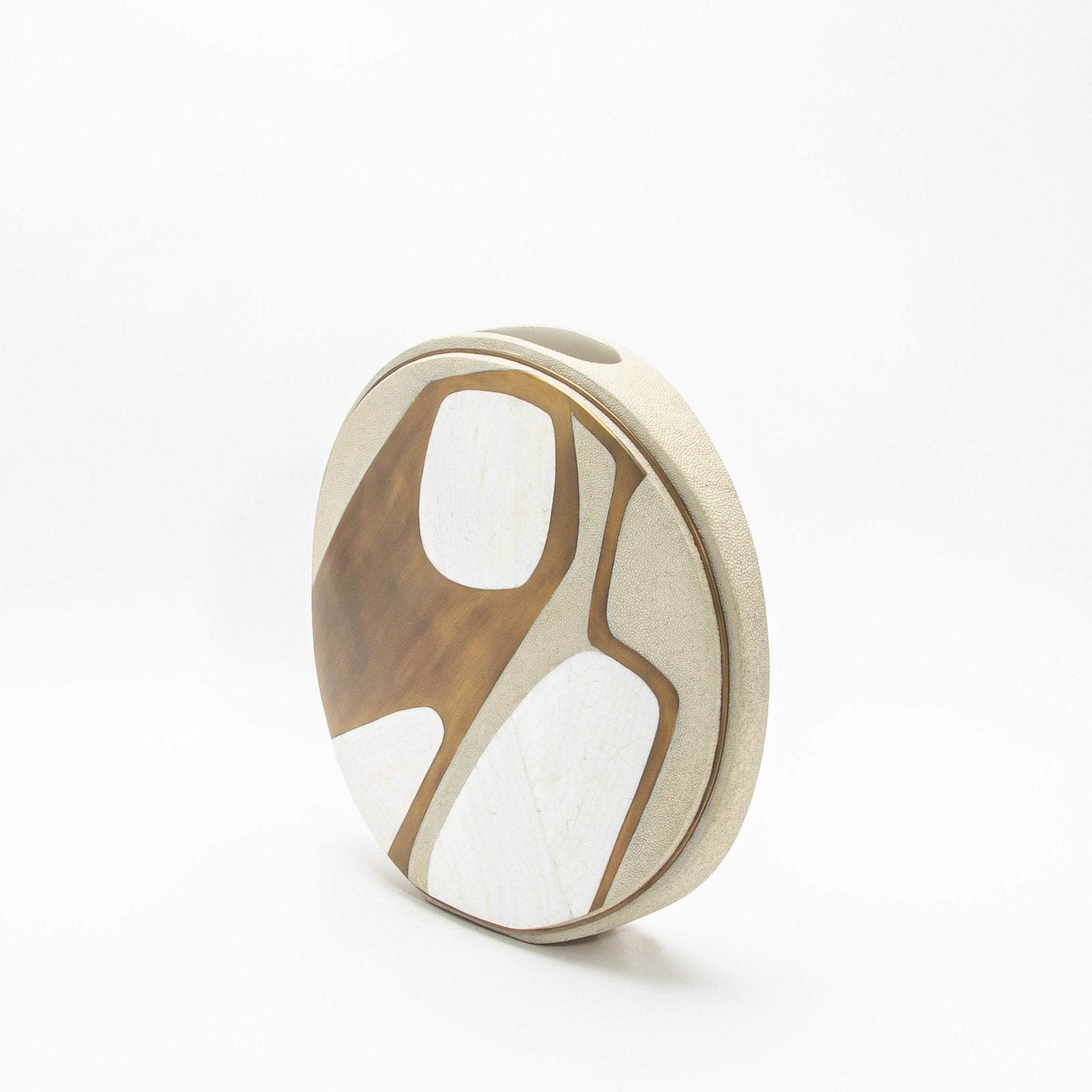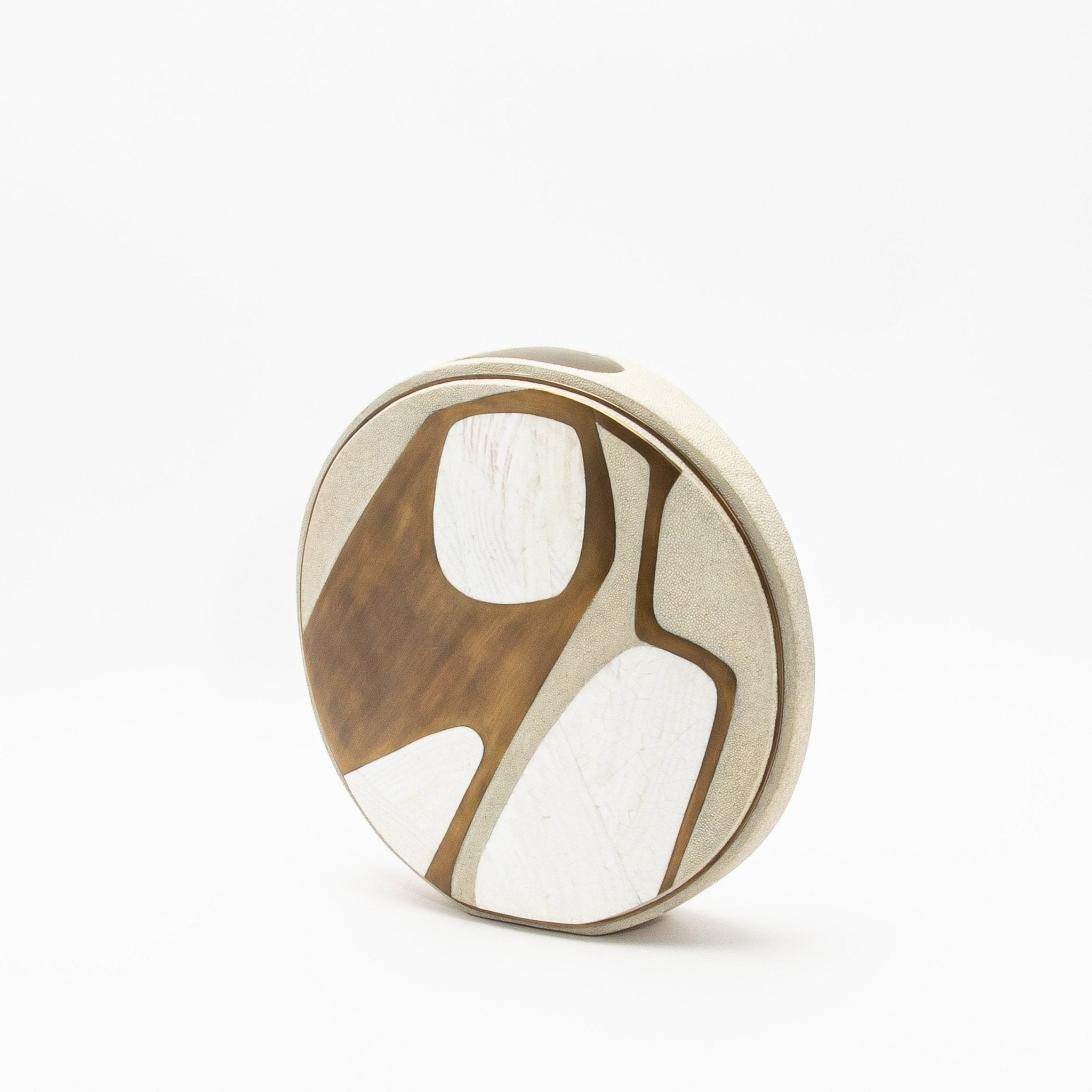 Vase in Cream Shagreen, Mother of Pearl, and Brass by R&Y Augousti