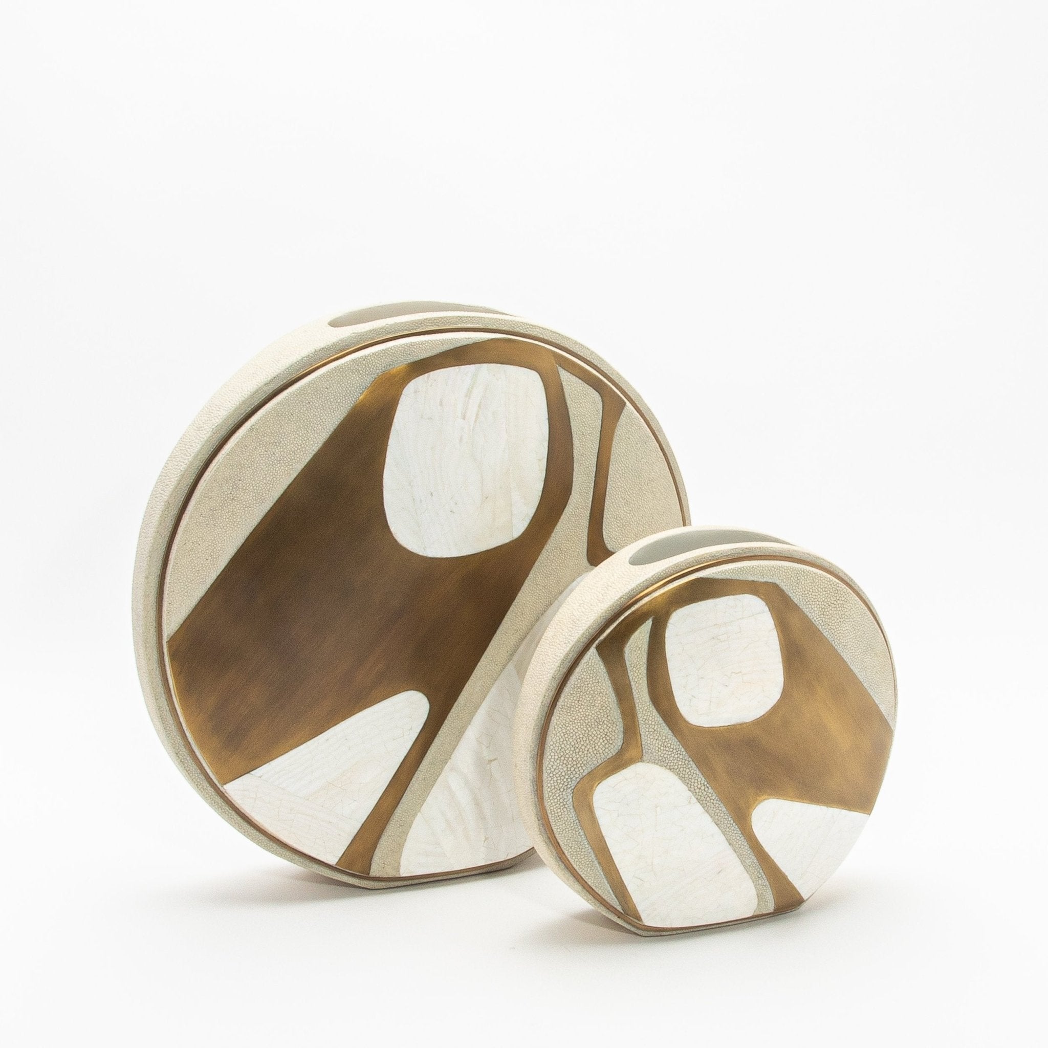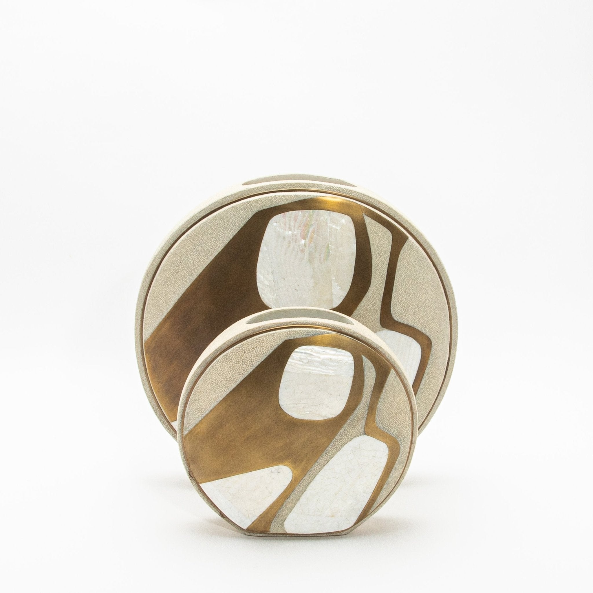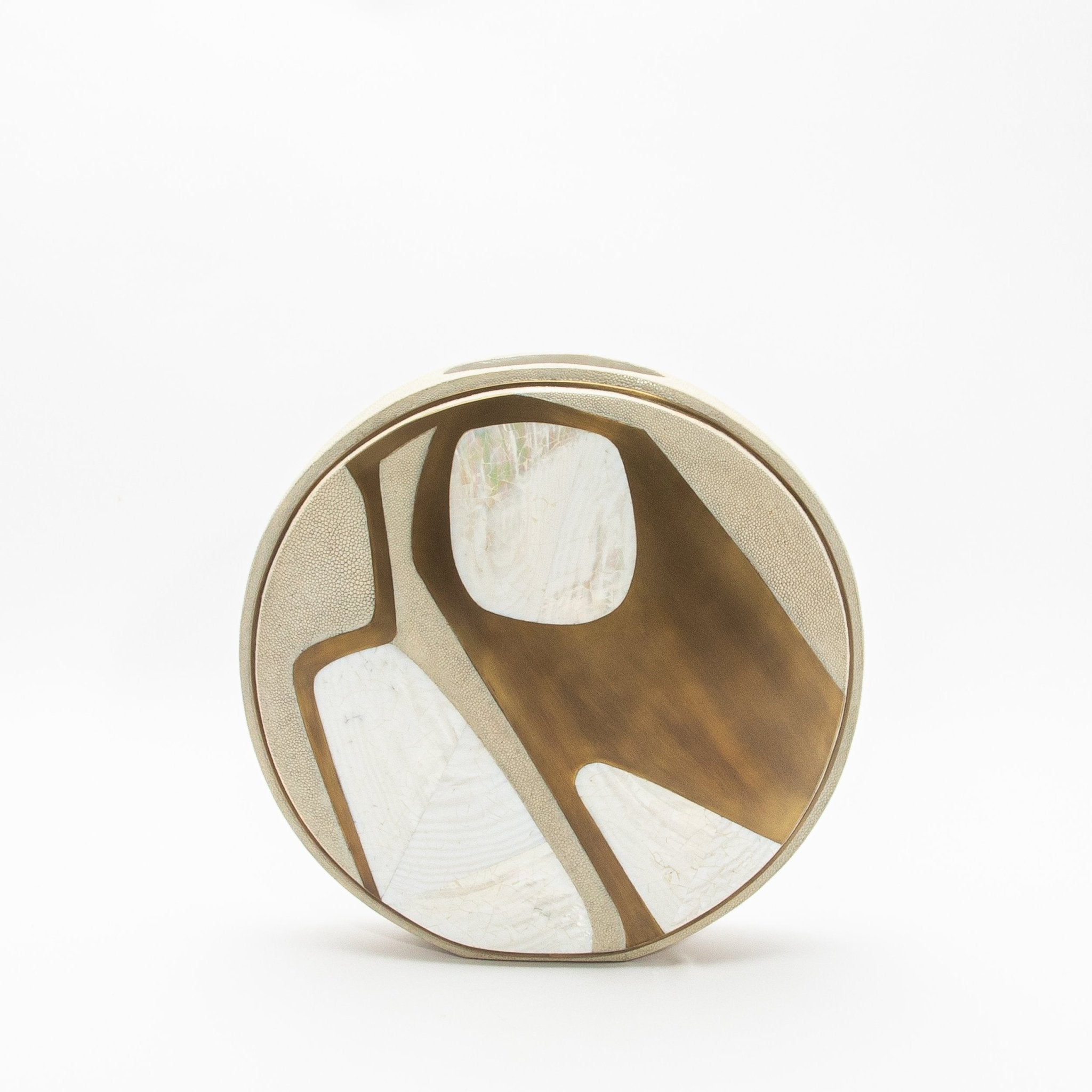 Vase in Cream Shagreen, Mother of Pearl, and Brass by R&Y Augousti