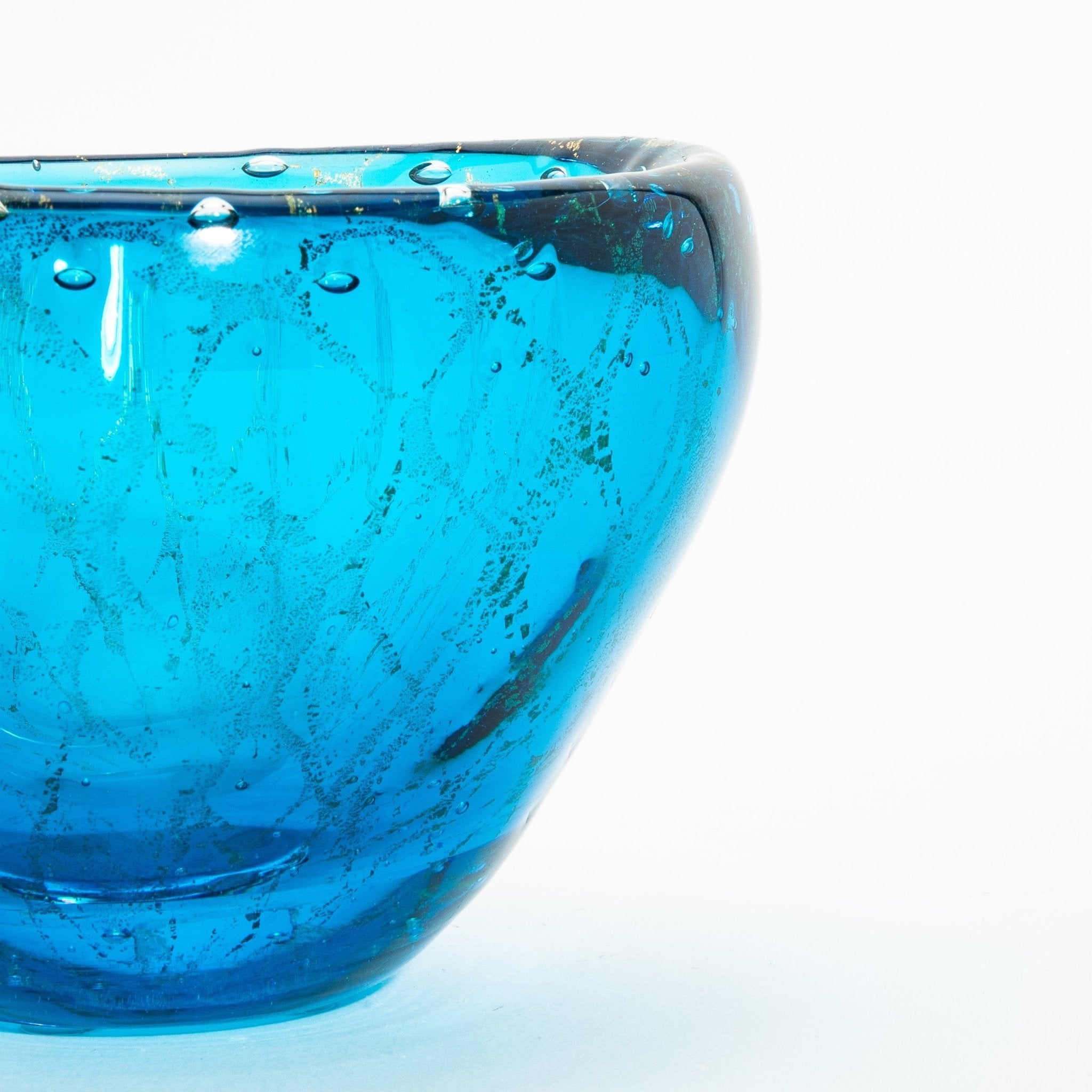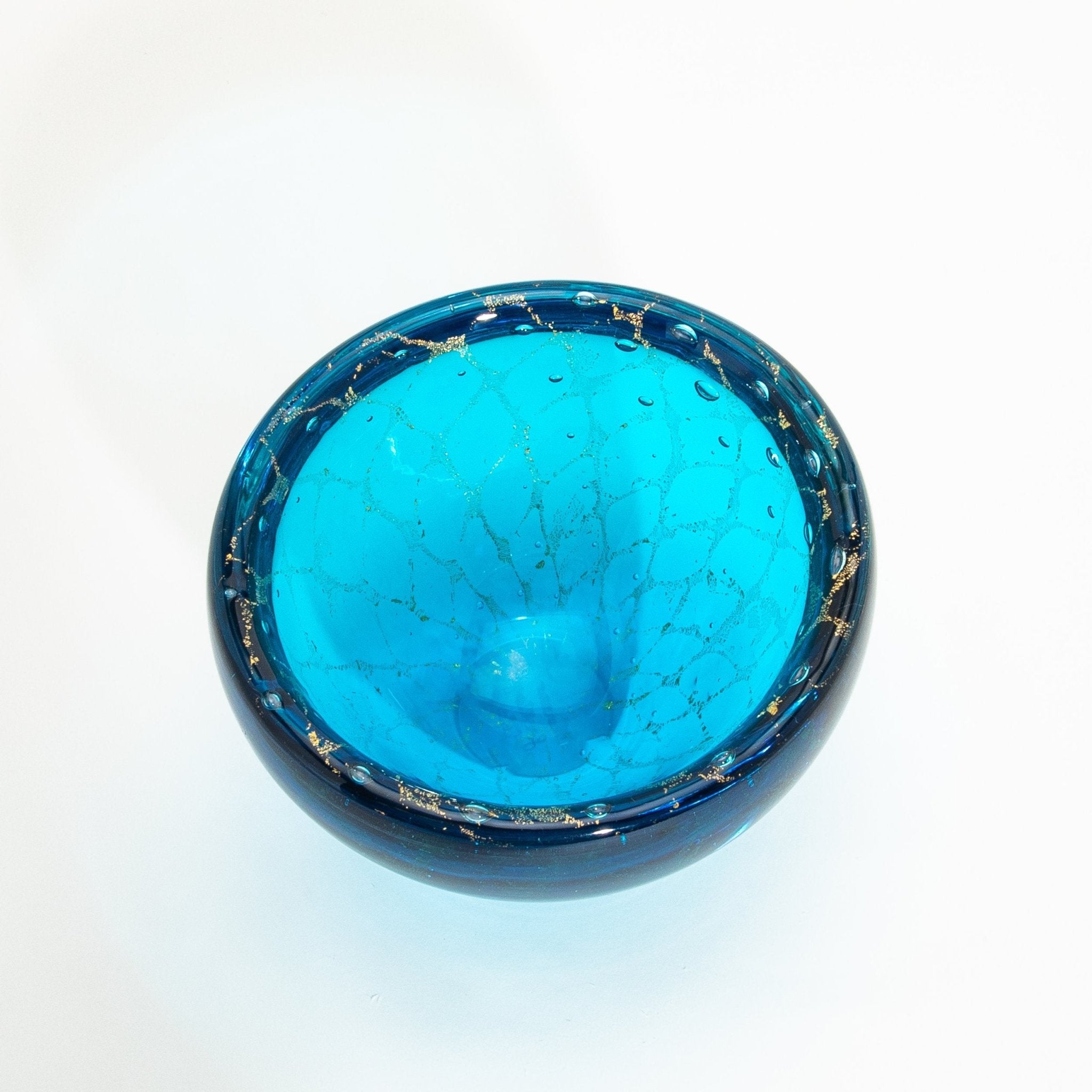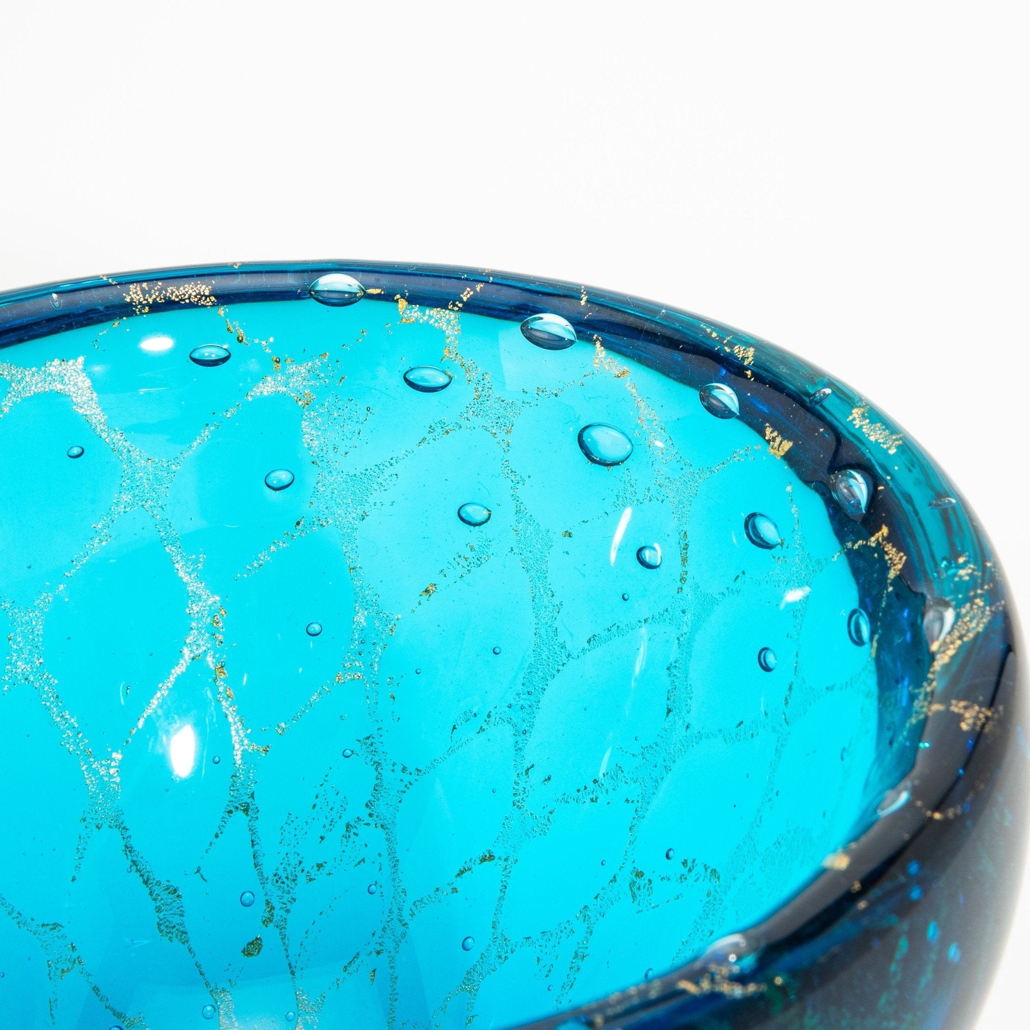 Murano Bowl in Aqua Blue with 24-Karat Gold Flecks