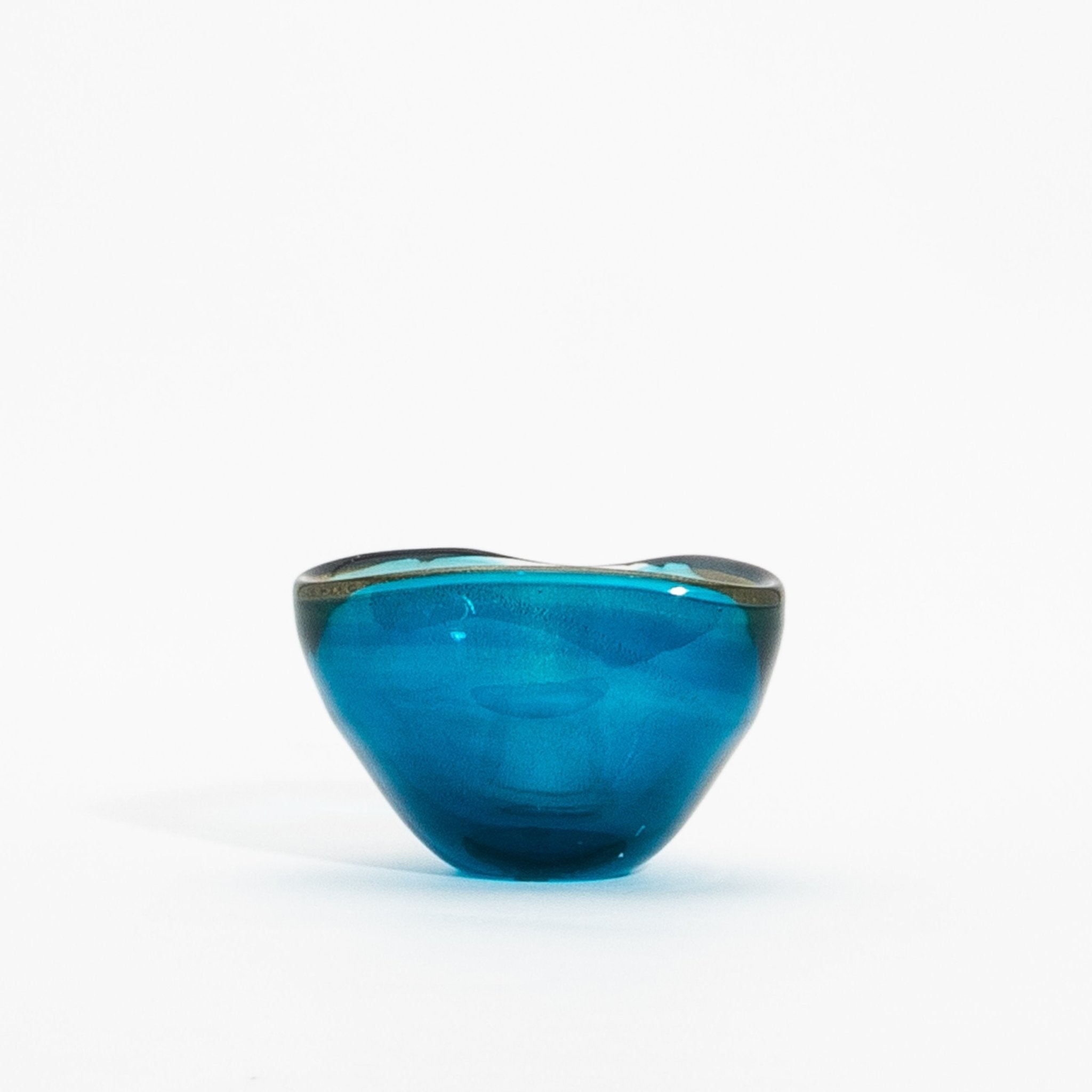 This exquisite hand-blown Murano bowl in vibrant aqua blue exudes elegance and craftsmanship. Created using time-honored Venetian techniques, this piece is enhanced with shimmering 24-karat gold flecks that create an intricate, organic pattern within the glass, resembling delicate veins of gold leaf. The crystalline aqua blue radiates a sense of depth and luminosity, beautifully capturing and reflecting light to enhance its allure. The gently curved form and smooth surface make it not only a functional piece but also a work of art that commands attention. Perfect as a standalone centerpiece or for displaying smaller treasures, this one-of-a-kind Murano bowl seamlessly combines artistic heritage with contemporary luxury, elevating any space with its undeniable sophistication.