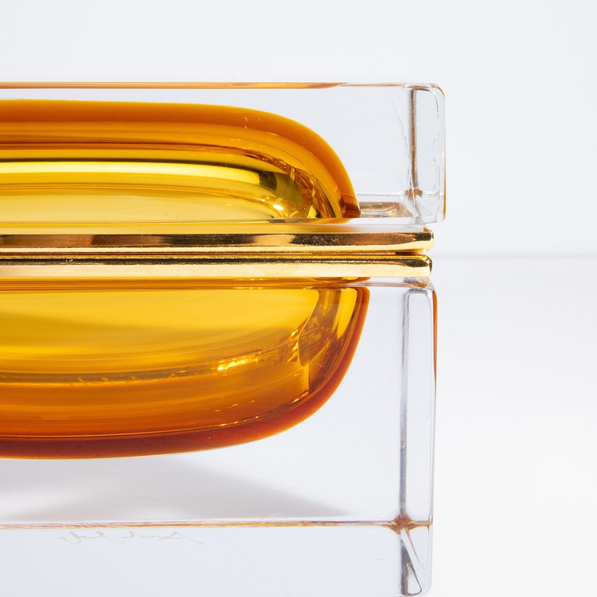 Murano Box with Brass Fittings in Amber