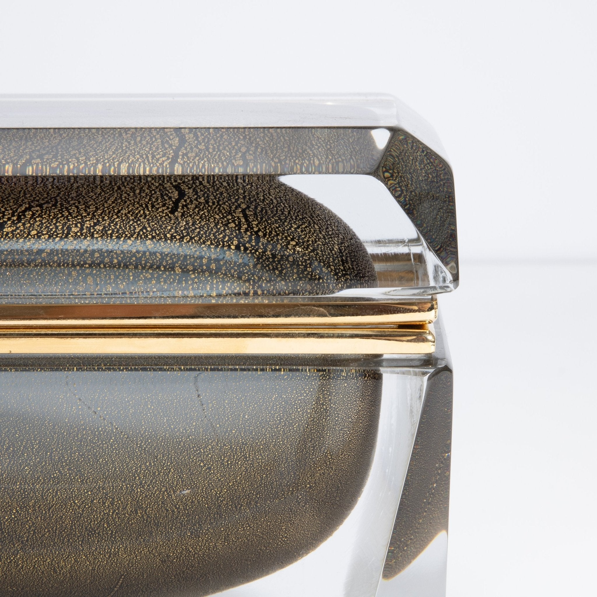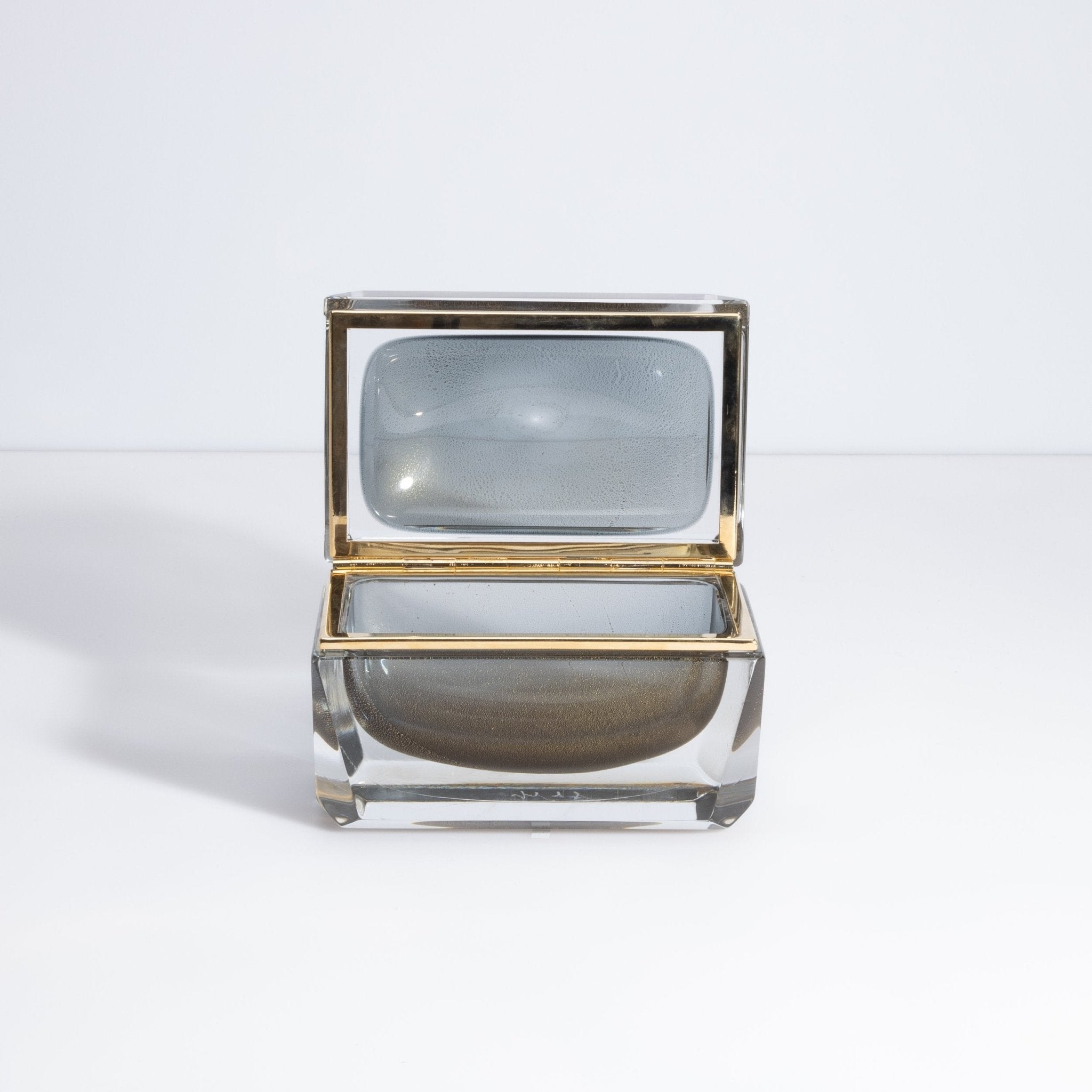 Murano Box with Brass Fittings in Grey with 24-Karat Gold Flecks