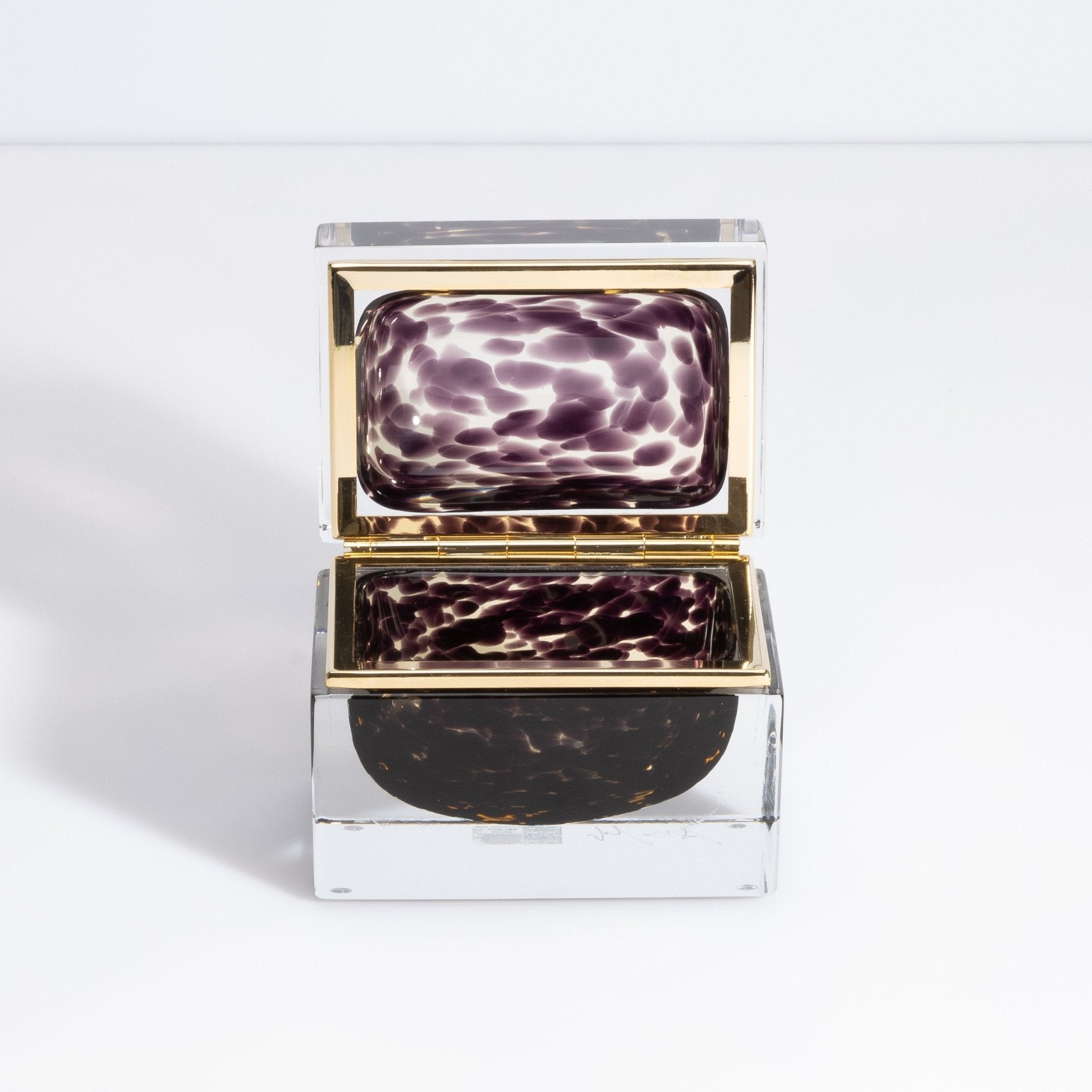 This avant-garde adornment is a unique and eye-catching piece that combines the rich tradition of Murano glassmaking with a contemporary and fashionable design. Handcrafted on the historic Venetian island of Murano, this box features a stunning leopard print pattern that adds a touch of exotic flair to any space.
