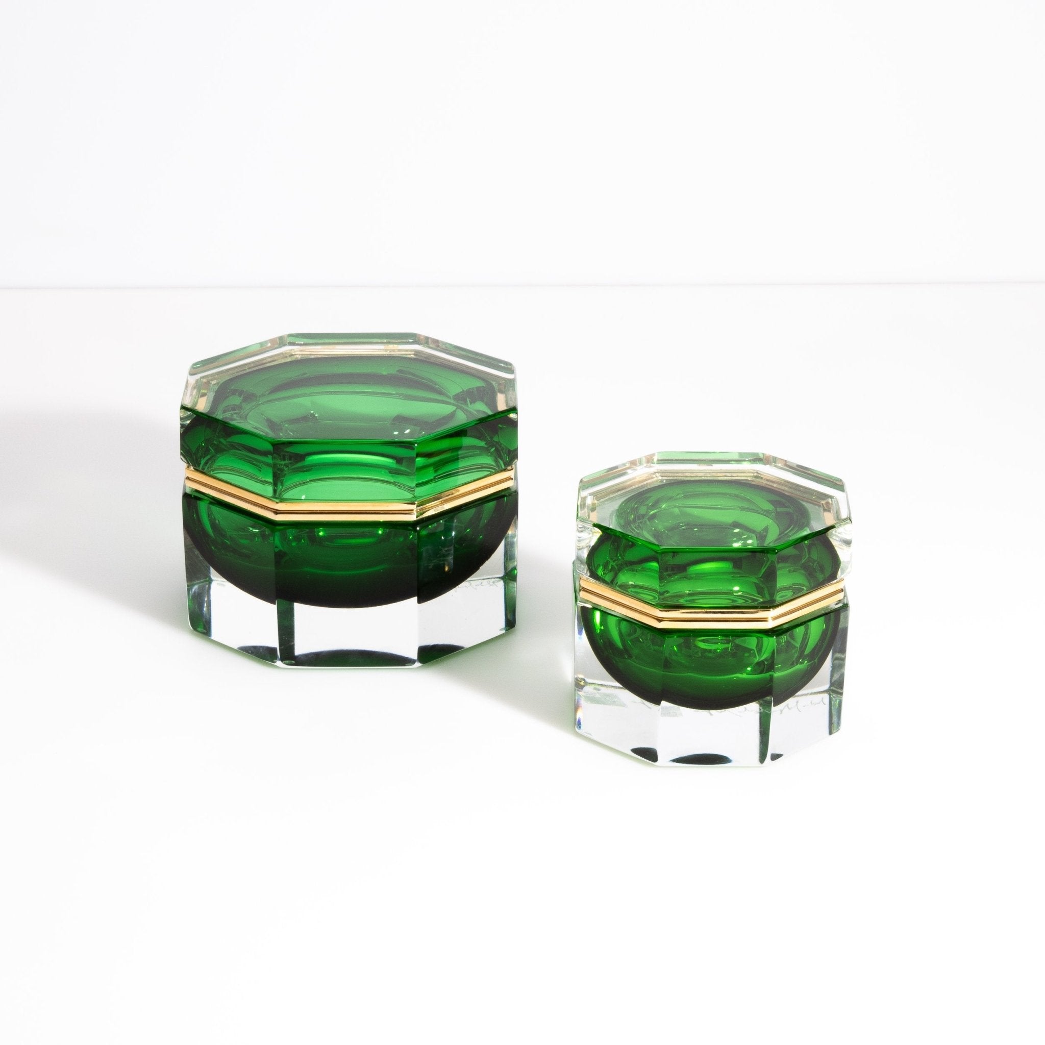 Murano Box Octagonal with Brass Fittings in Emerald Green
