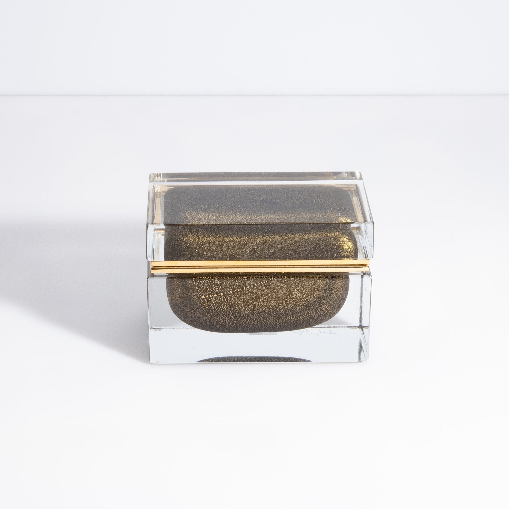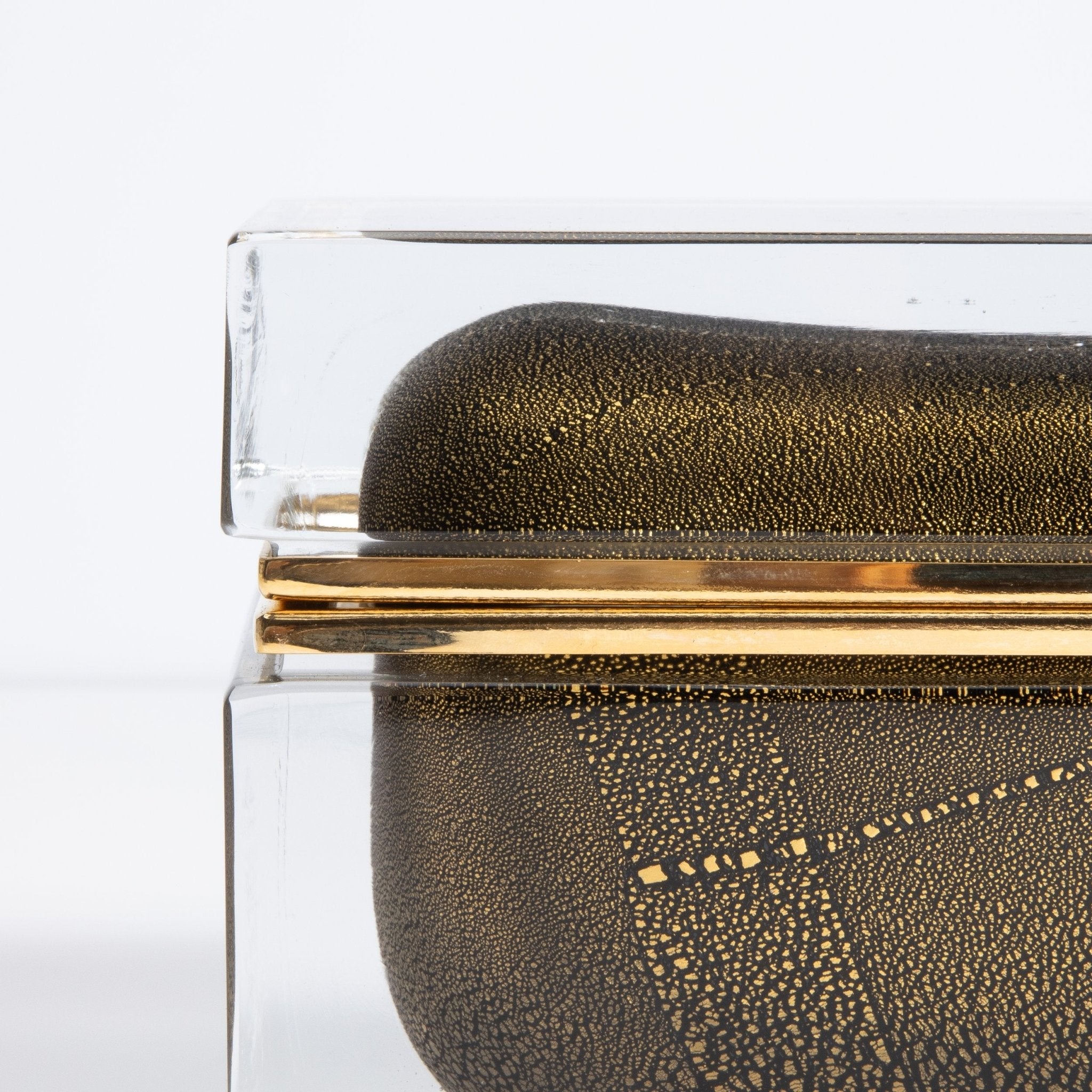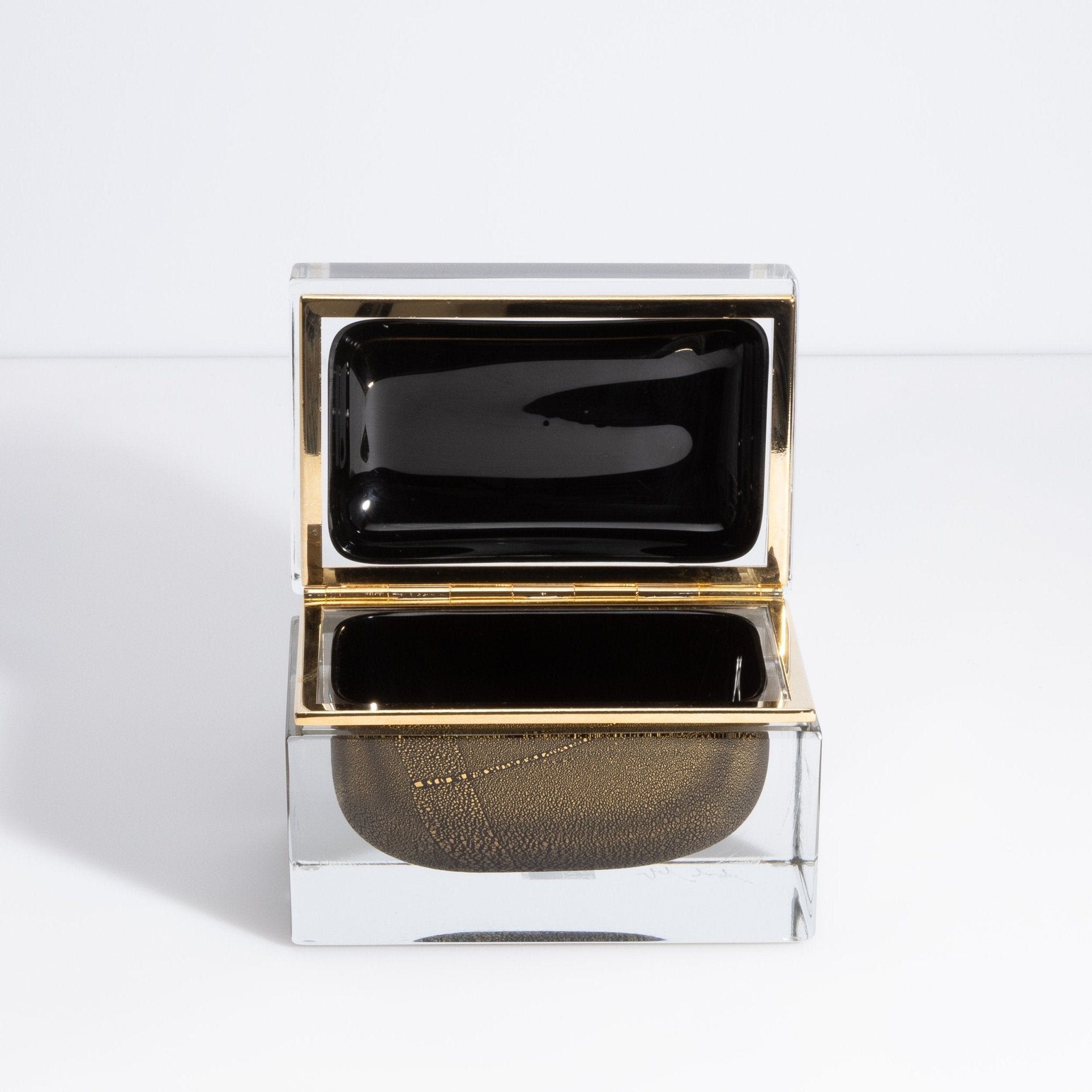 Murano Box with Brass Fittings in Onyx Black 24-Karat Gold Flecks