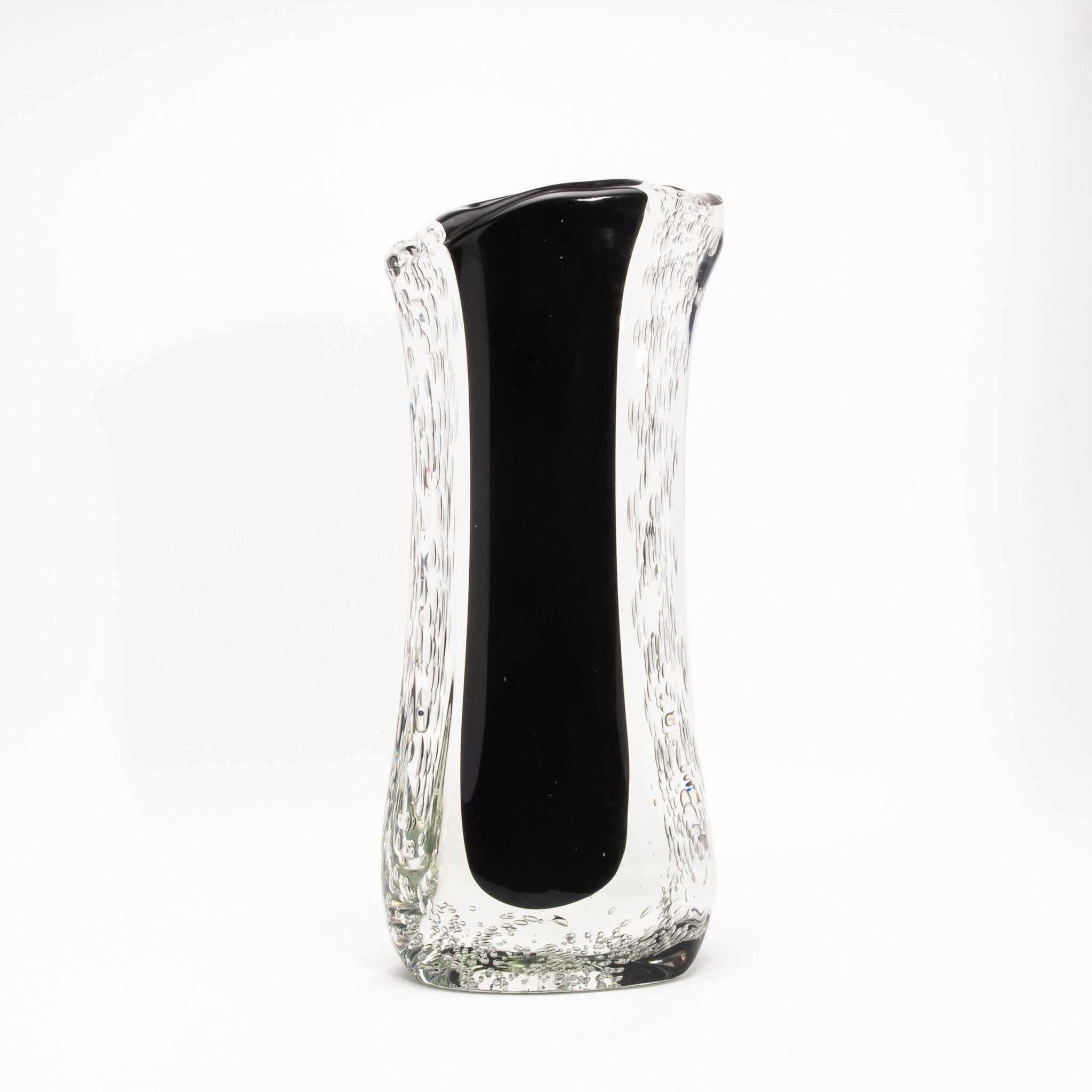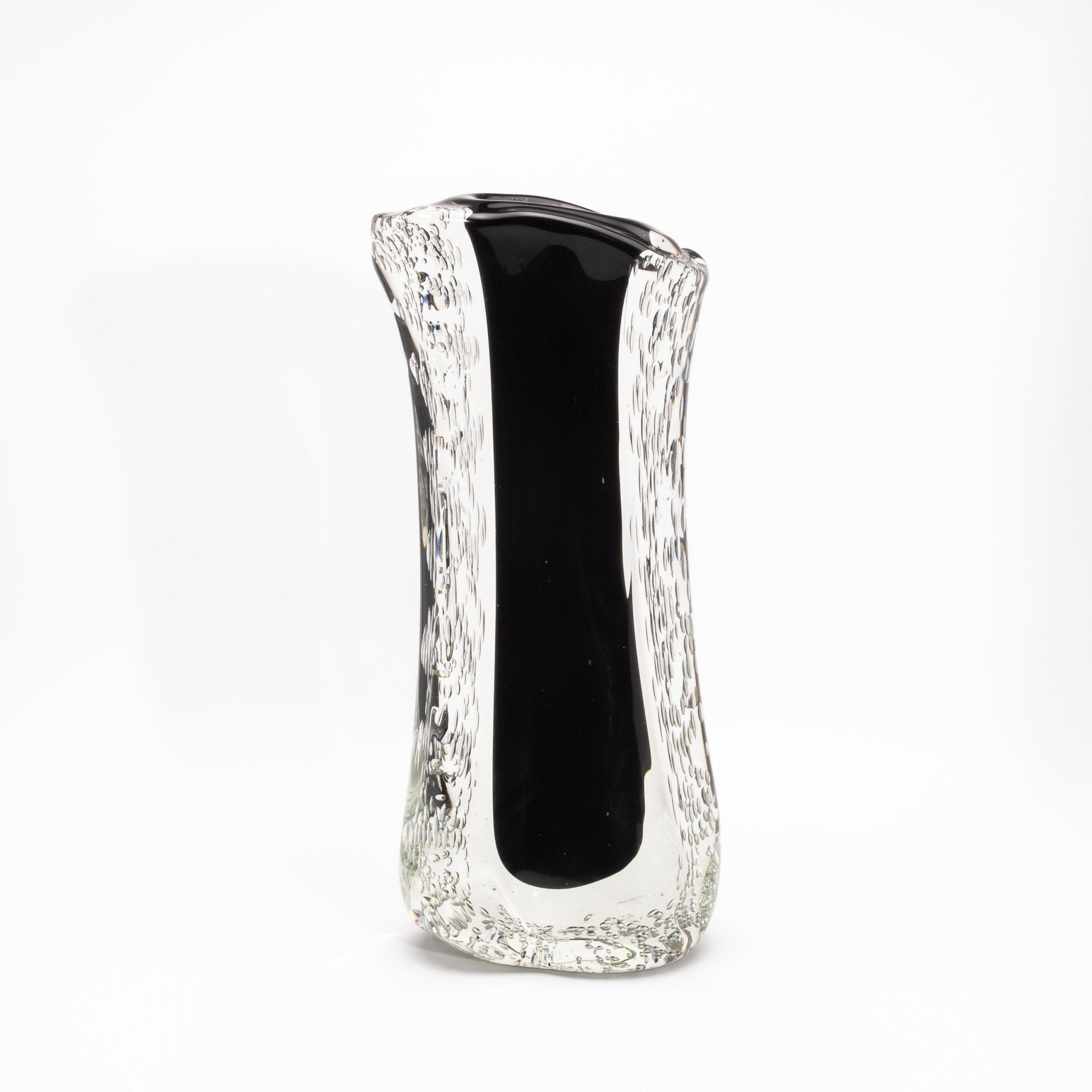 Murano Modern Fluid Vase in Onyx Black with Bubbles