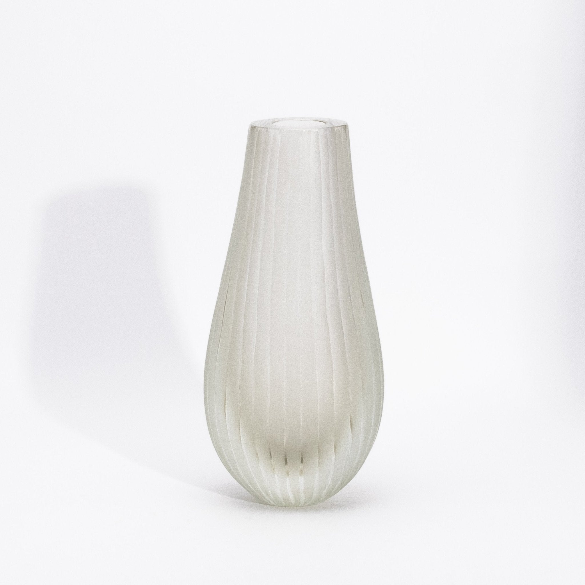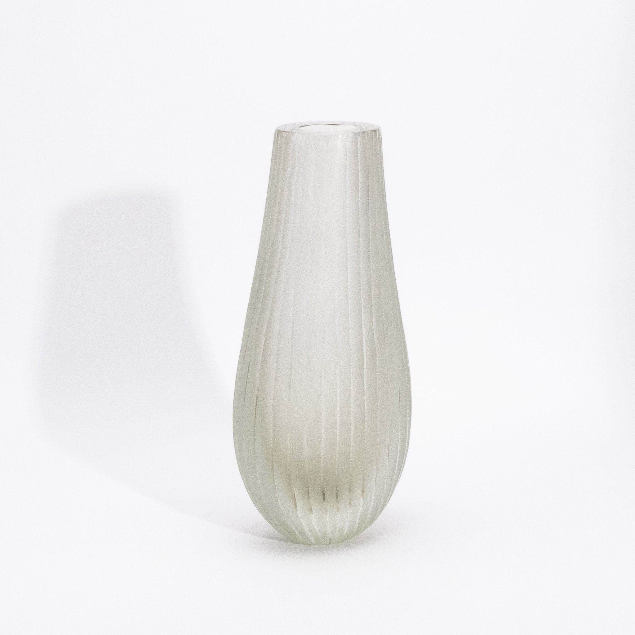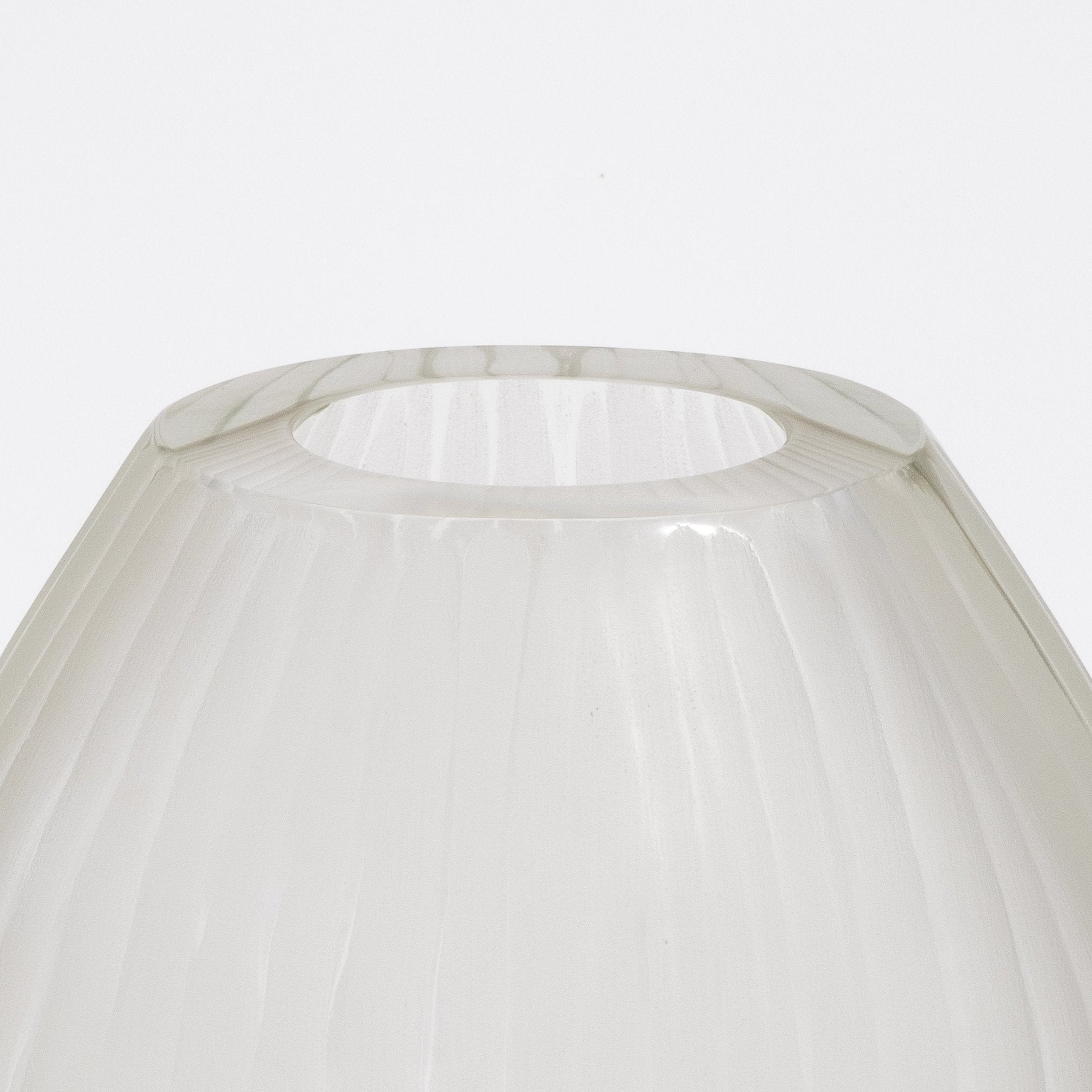 Crafted in the heart of Murano by master artisans, the Supreme Vase in Citrine embodies the serene elegance of fine Italian glassmaking. Its delicate golden tone, soft and luminous like morning mist, is encased in a frosted surface that lends an ethereal quality to its sculptural form. Gentle vertical ridges glide along its rounded silhouette, creating a graceful interplay of light and shadow that enhances its tactile beauty. The vase's understated transparency and warm hue exude a sense of refined minimalism, perfect for interiors where luxury is whispered, not shouted. Each curve, each hand-finished edge speaks to a deep tradition of craftsmanship and the pursuit of perfection in form. Whether placed as a single accent or part of a curated trio, it invites calm, contemplation, and quiet admiration. The Supreme Vase in Citrine is more than a vessel—it is a luminous expression of artistry, presence, and timeless sophistication.