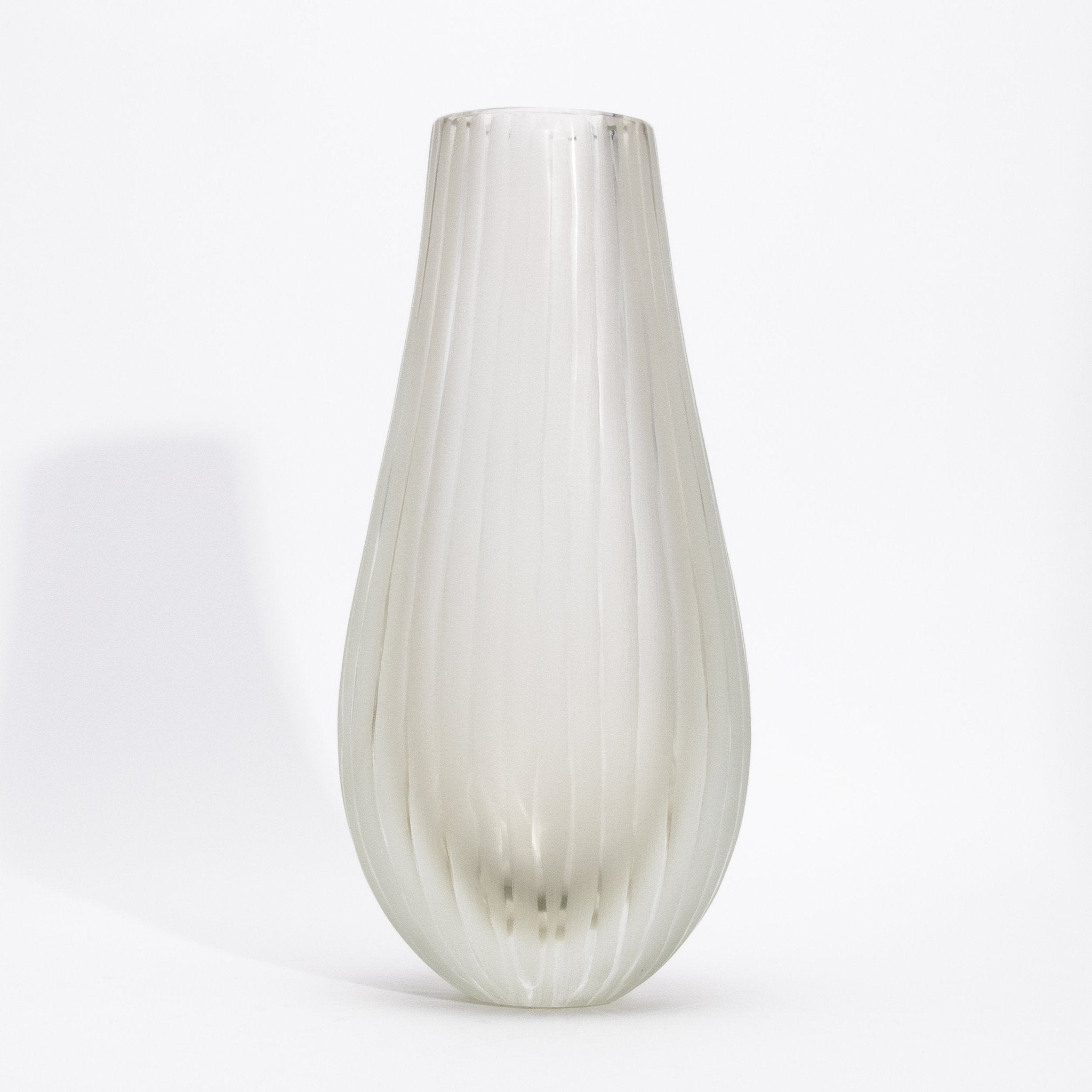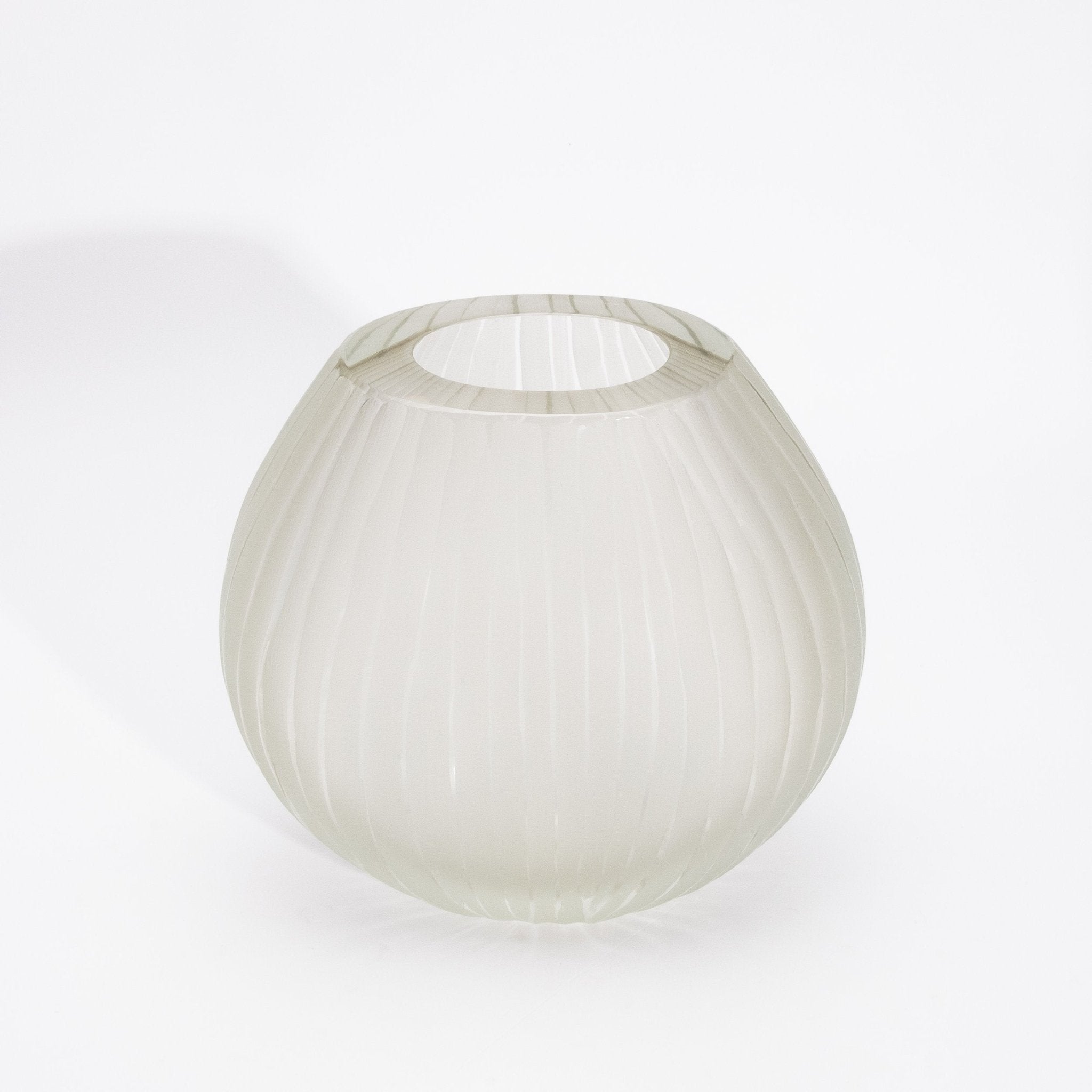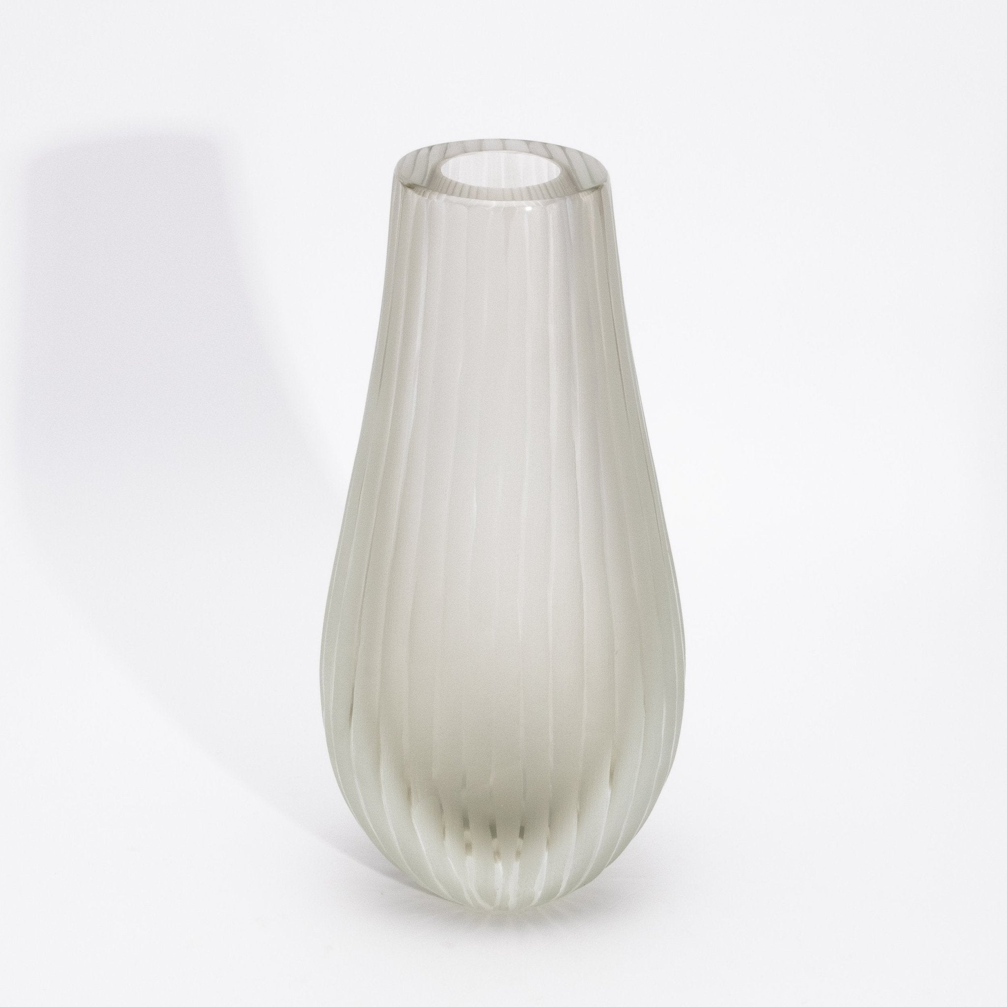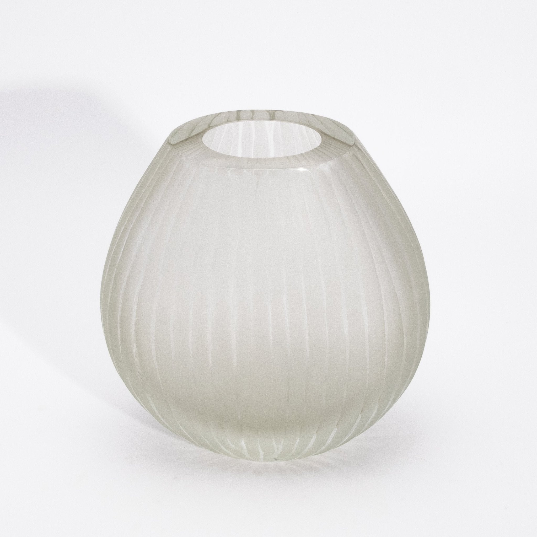 Crafted in the heart of Murano by master artisans, the Supreme Vase in Citrine embodies the serene elegance of fine Italian glassmaking. Its delicate golden tone, soft and luminous like morning mist, is encased in a frosted surface that lends an ethereal quality to its sculptural form. Gentle vertical ridges glide along its rounded silhouette, creating a graceful interplay of light and shadow that enhances its tactile beauty. The vase's understated transparency and warm hue exude a sense of refined minimalism, perfect for interiors where luxury is whispered, not shouted. Each curve, each hand-finished edge speaks to a deep tradition of craftsmanship and the pursuit of perfection in form. Whether placed as a single accent or part of a curated trio, it invites calm, contemplation, and quiet admiration. The Supreme Vase in Citrine is more than a vessel—it is a luminous expression of artistry, presence, and timeless sophistication.