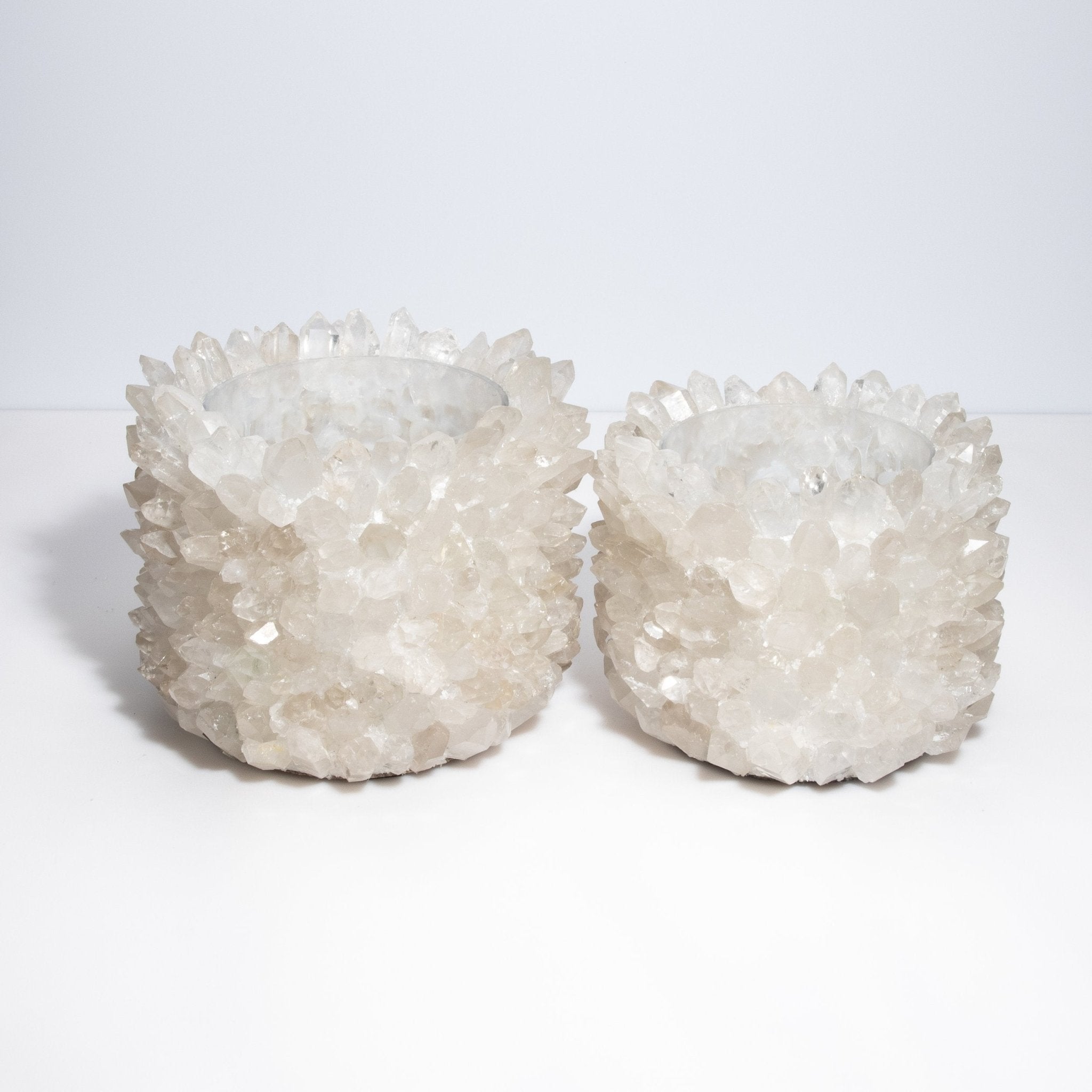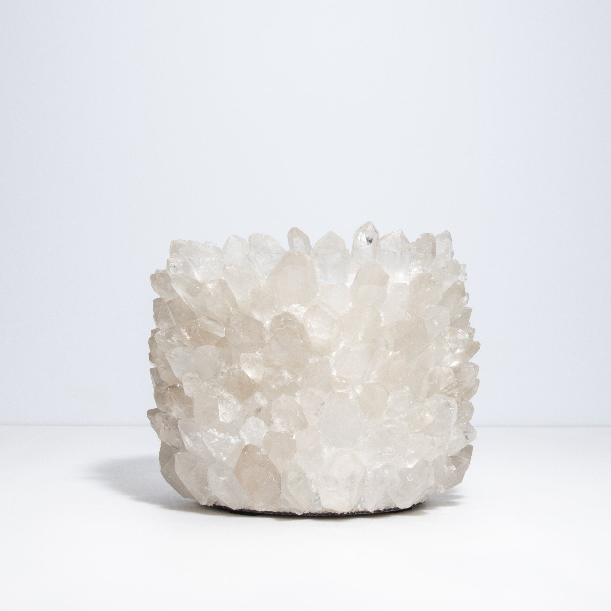 Indulge in the captivating allure of Kathryn McCoy's Rock Crystal Collection, a masterpiece that seamlessly blends nature's raw beauty with exquisite craftsmanship. Available in various sizes and customizable with a selection of different rock crystals, this decorative planter bowl embodies the essence of sophistication and uniqueness.
