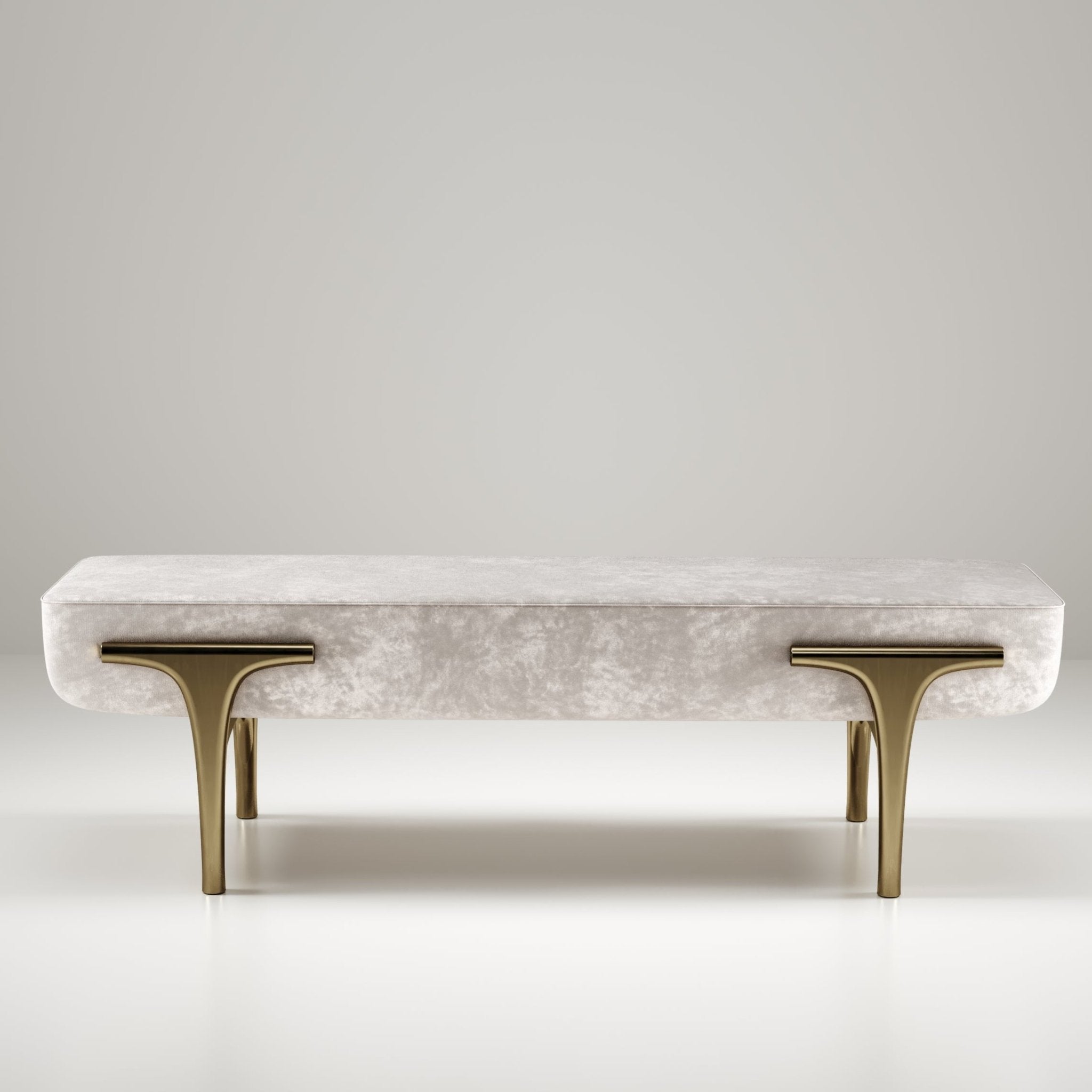 Discover the Ramo Bench by R&Y Augousti - a stunning fusion of luxury and design innovation. Sink into sumptuous velvet upholstery that crowns a striking bronze-patina base, where sculptural legs create visual drama and movement. The interplay of soft, rounded contours against sharp architectural lines delivers sophisticated balance, while signature bronze wrapping at each end adds both structural elegance and a warm, luminous gleam. Every detail speaks to exceptional craftsmanship and refined aesthetics.