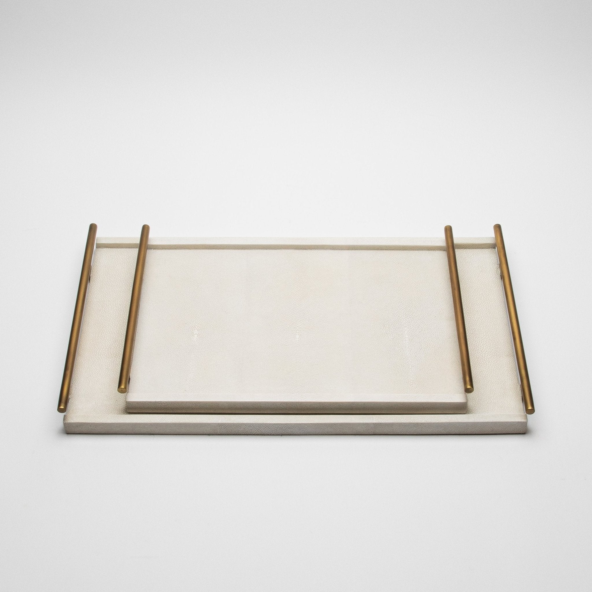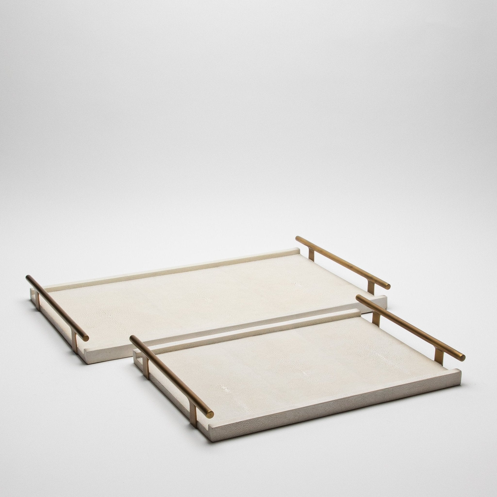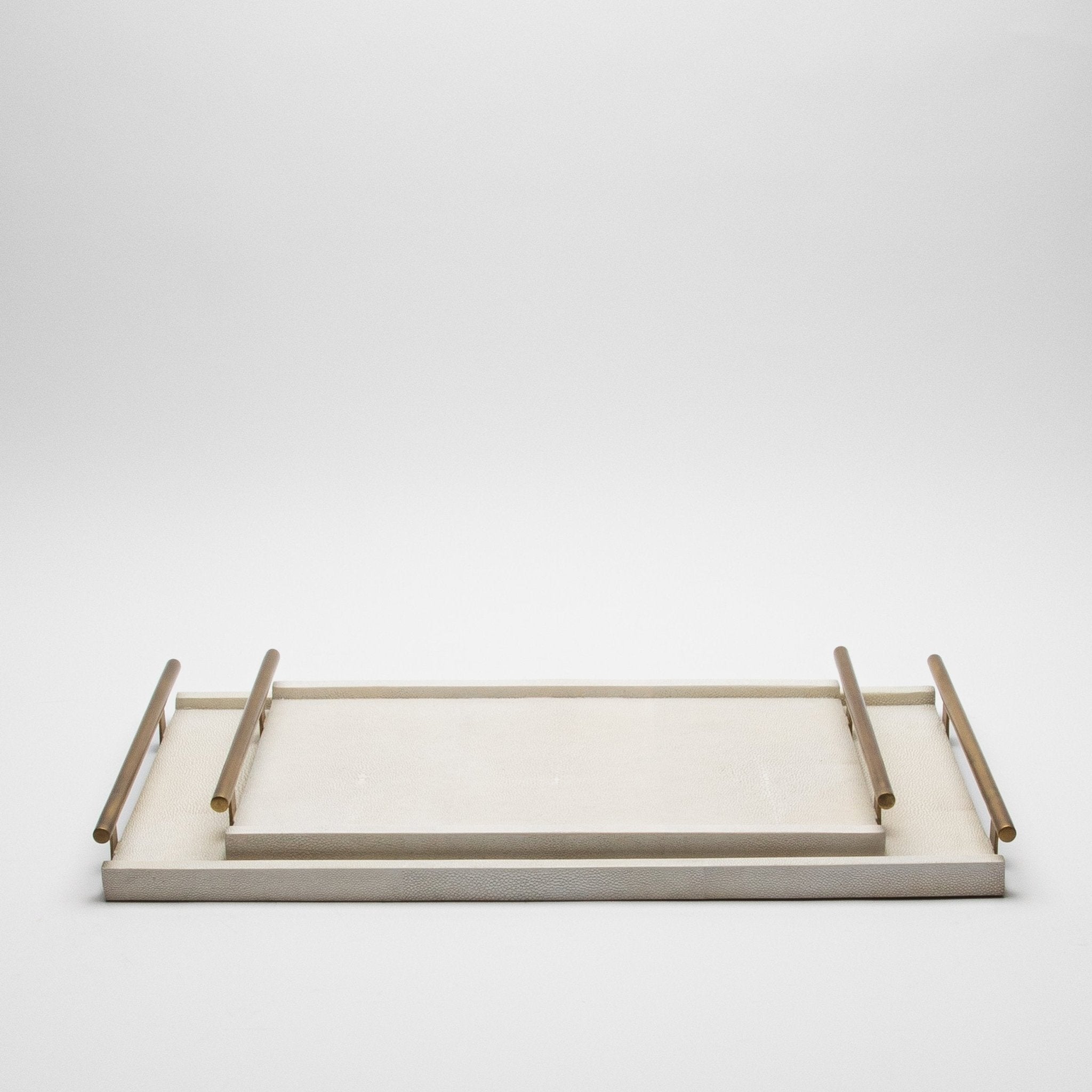 Rectangular Tray in Natural Cream Shagreen with Bronze Patina Brass by R&Y Augousti