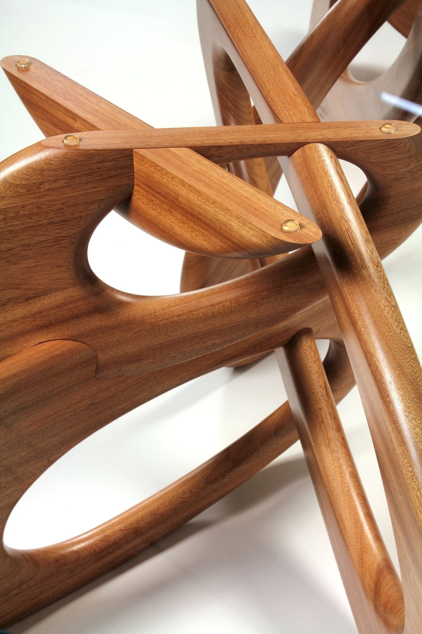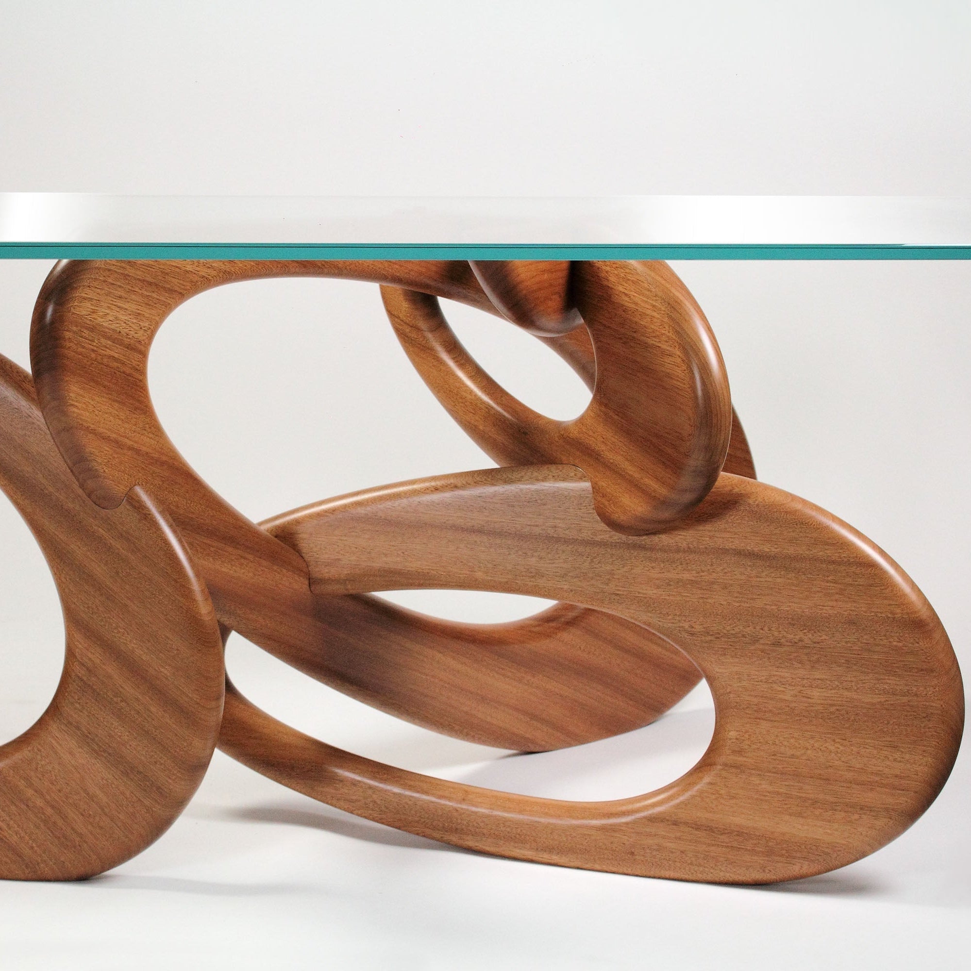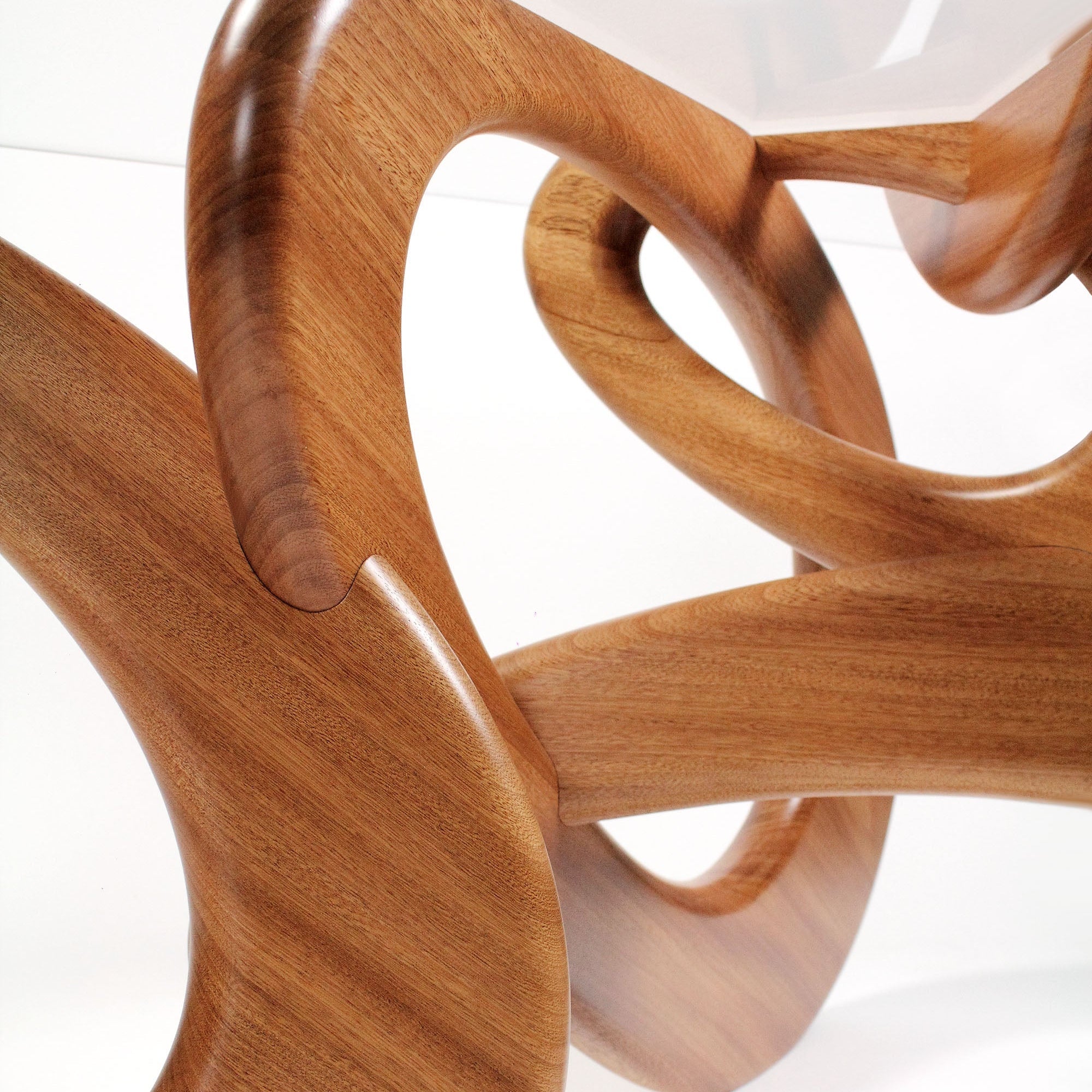 A bold expression of sculptural design, the Chained Up Reloaded dining table by Barberini & Gunnell makes a commanding statement in any interior. The base is carved from a rare, single-slab Iroko wood and shaped into an interlocking chain form—an homage to the massive iron chains used to moor transatlantic vessels. Every curve and loop is expertly formed to balance both strength and grace.