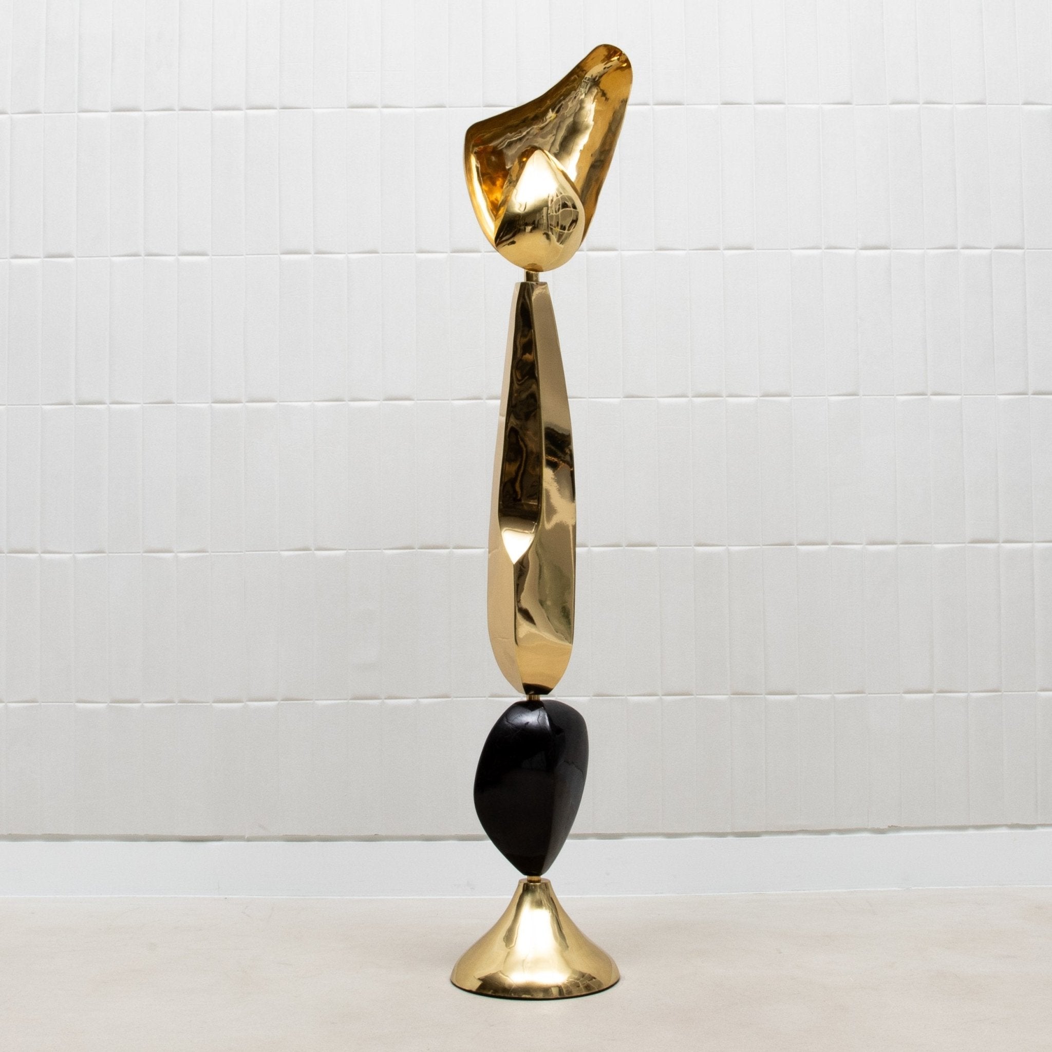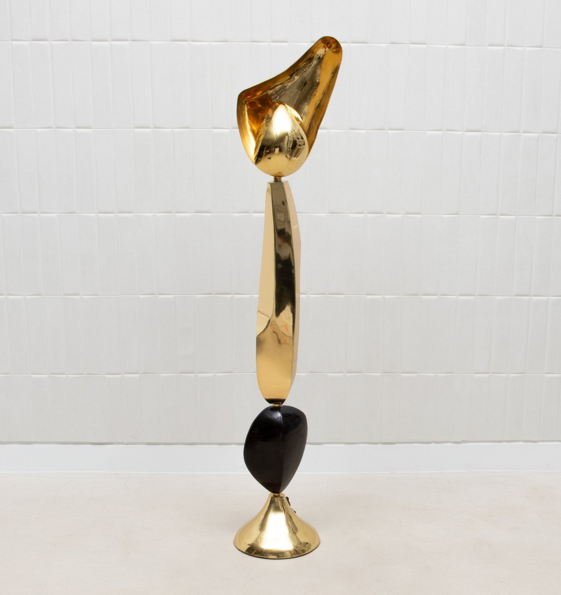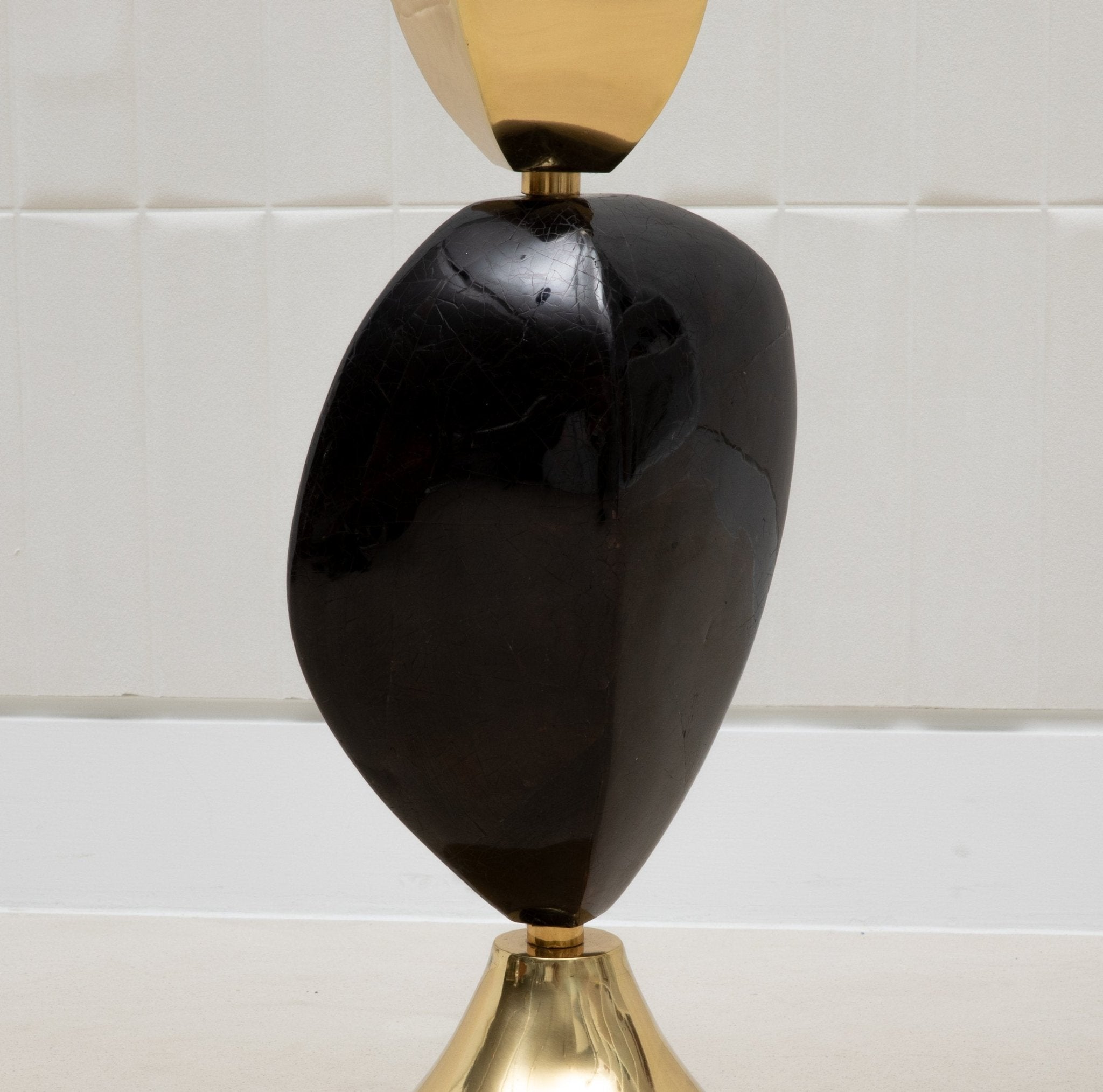 Sculptural Floor Lamp in Polished Brass with Black Shell by KIFU Paris
