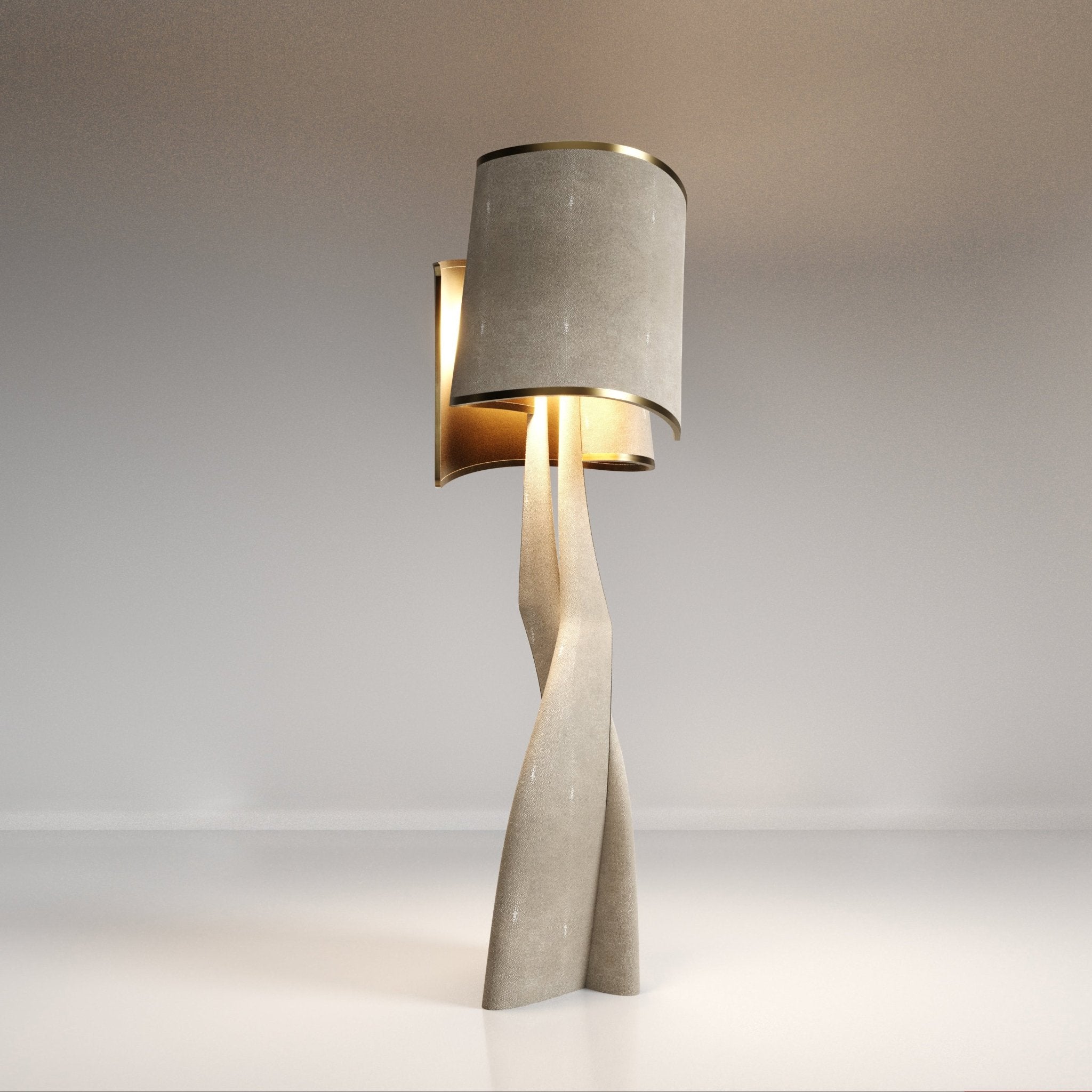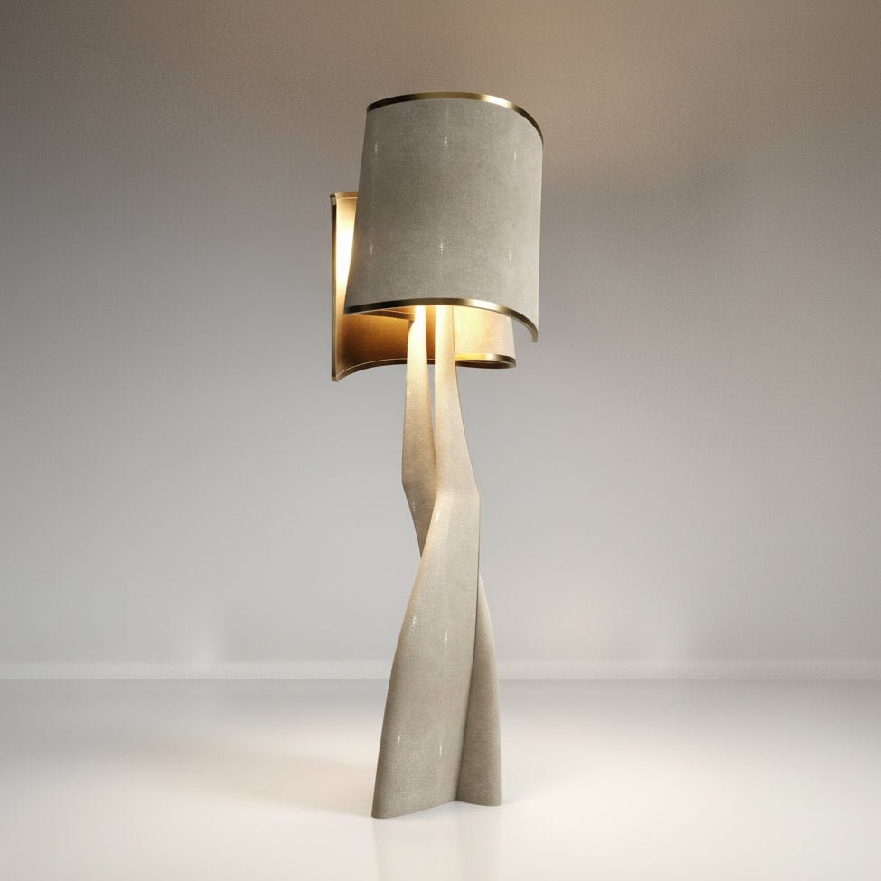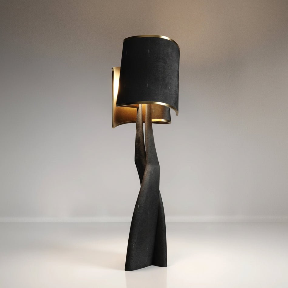 Sculptural Floor Lamp in Shagreen Inlay and Bronze Patina Brass by Kifu Paris