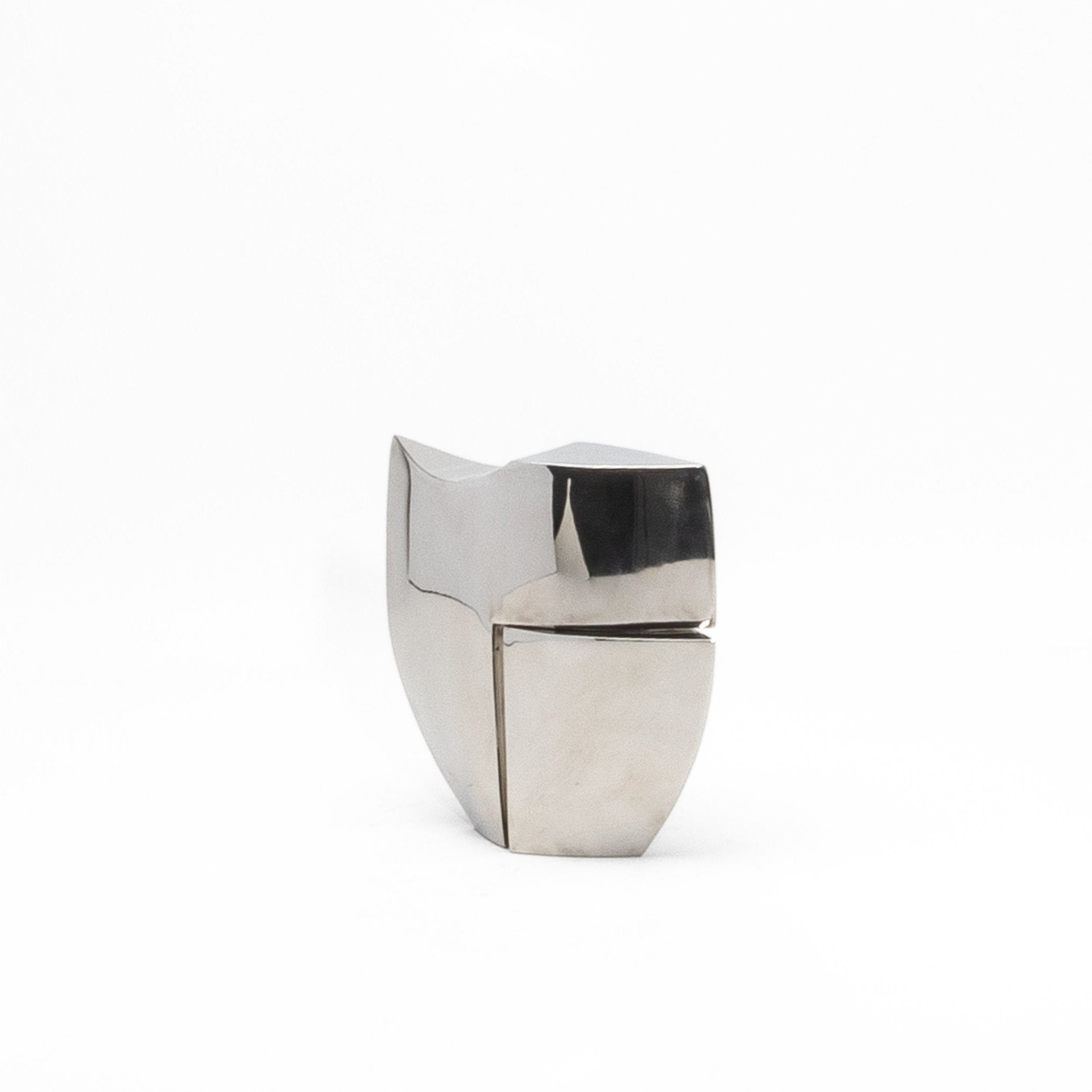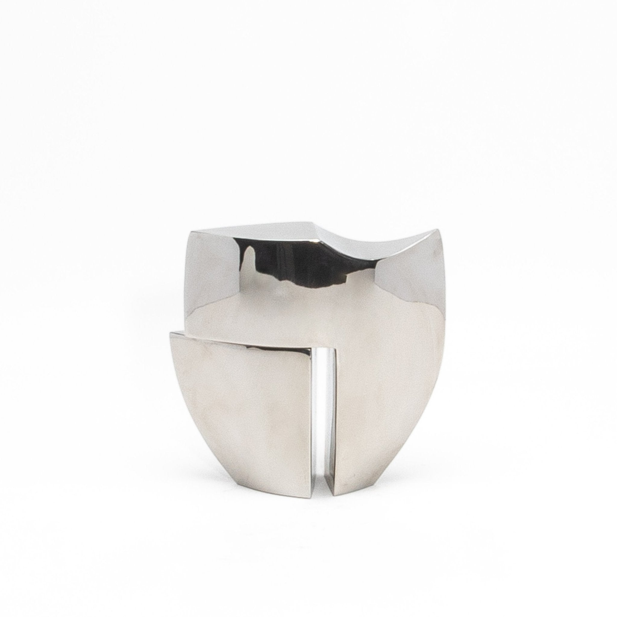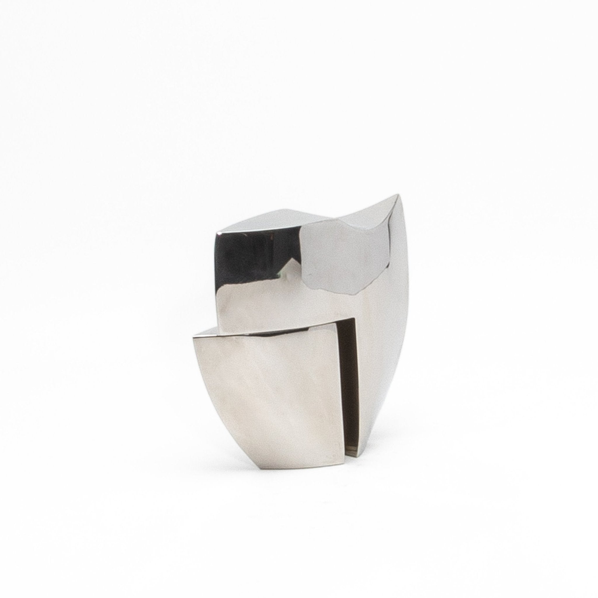 The Deconstructed Half Tower by Patrick Coard Paris is a luxurious abstract sculpture that masterfully combines modern design with the artisanal richness of a polished stainless steel veneer inlaid on a fiberglass core. Handcrafted with meticulous attention to detail, its bold geometric form and deconstructed silhouette create a striking visual interplay of balance and asymmetry. The smooth stainless steel, with its tactile depth and refined shiny finish, enhances the sculpture’s sculptural allure, exuding a sense of timeless sophistication. Each angle reveals a new perspective, inviting the viewer to explore its dynamic contours and architectural elegance. Designed to be a statement piece, this artwork seamlessly blends organic materiality with contemporary design, making it an ideal choice for those seeking to elevate their interiors with an object that embodies exclusivity, artistry, and luxury.