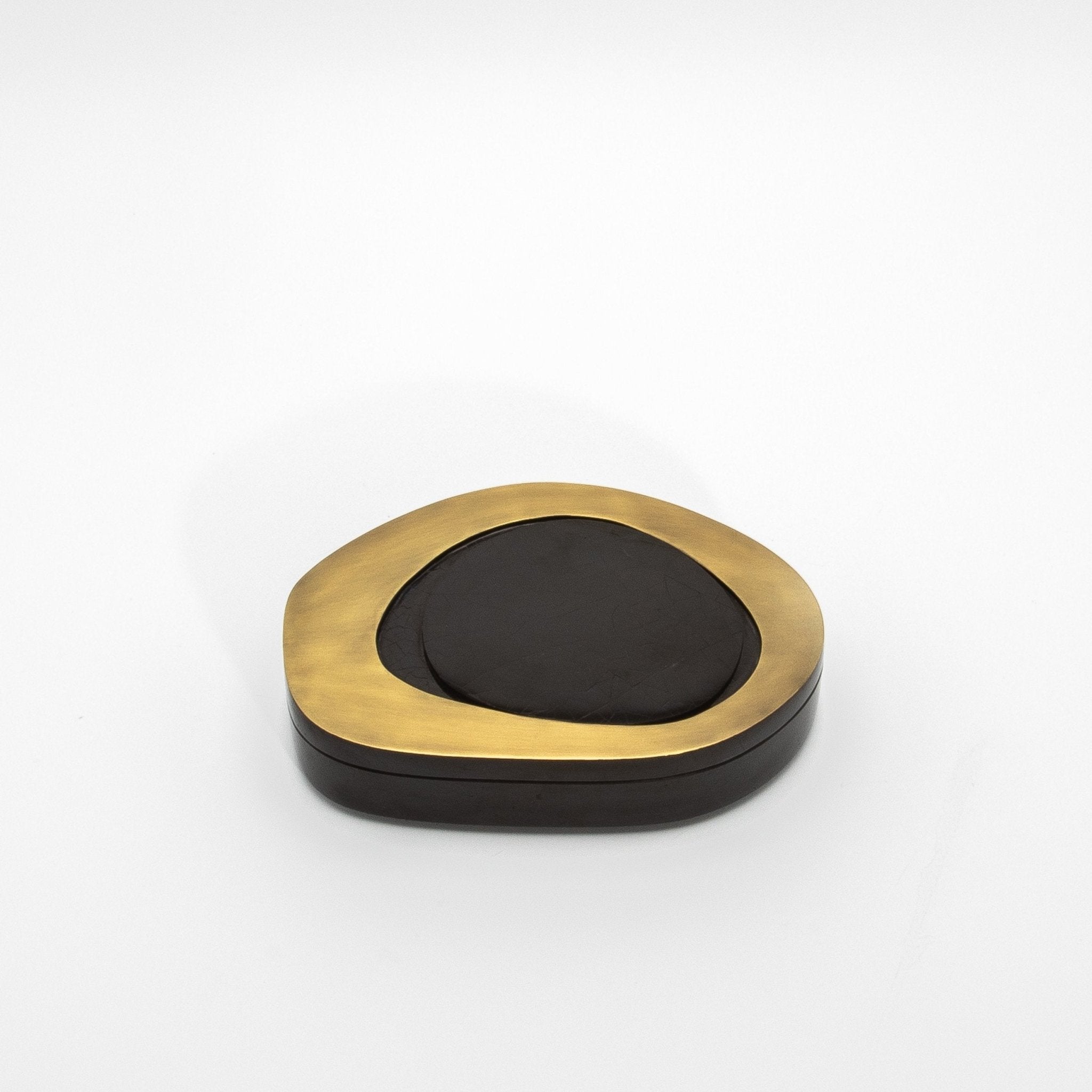 The “Peacock Box” set by R&Y Augousti is a true masterpiece of modern luxury, where organic form meets exceptional craftsmanship. The distinctive, fluid shapes of these boxes create an elegant asymmetry that adds visual intrigue to any space. Wrapped in sumptuous black shell, the rich texture offers a tactile experience that enhances the design's opulence, while the bronze patina brass framing delicately outlines the contours, adding a touch of warmth and refinement. Crafted from wood and meticulously hand-finished, these boxes seamlessly blend form and function, elevating their role from mere storage pieces to objets d'art. Perfect for the discerning collector, the Peacock Box set embodies timeless sophistication and artisanal luxury.