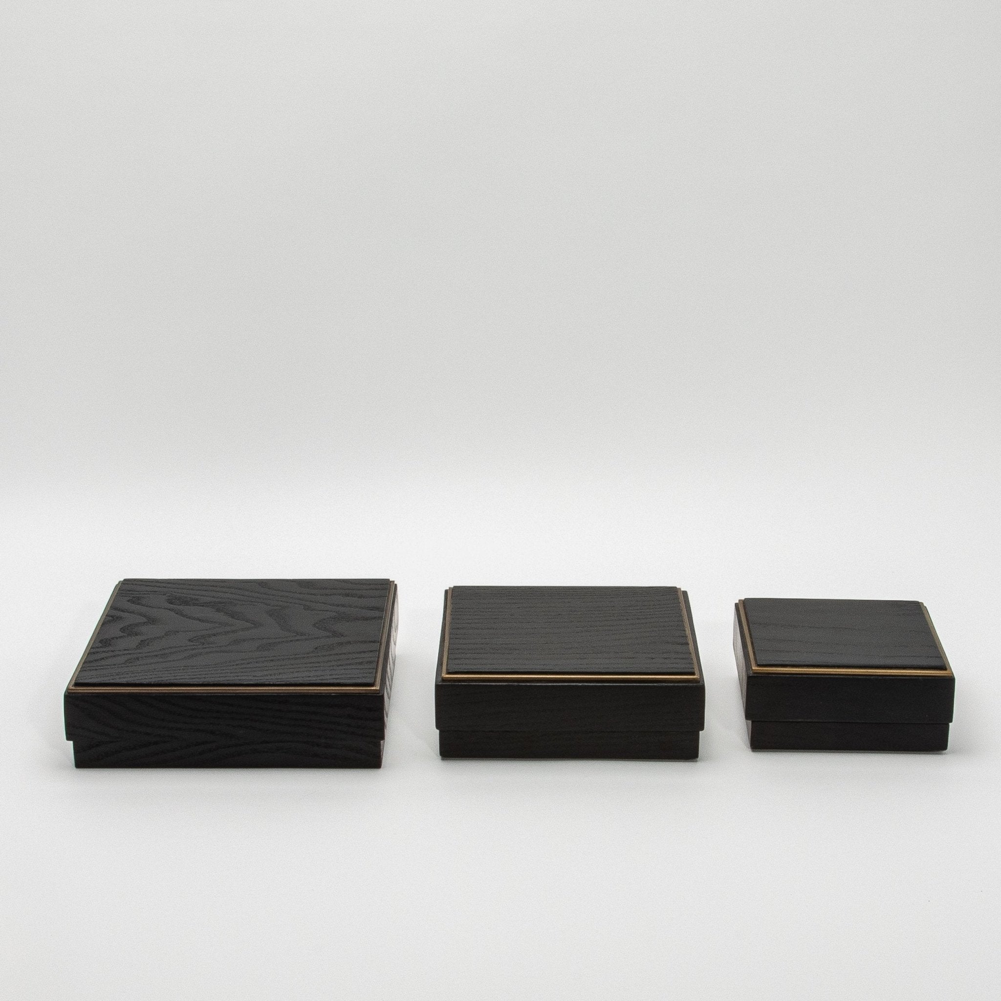 Set of 3 Square Boxes in Black Oak with Brass Frame by R&Y Augousti
