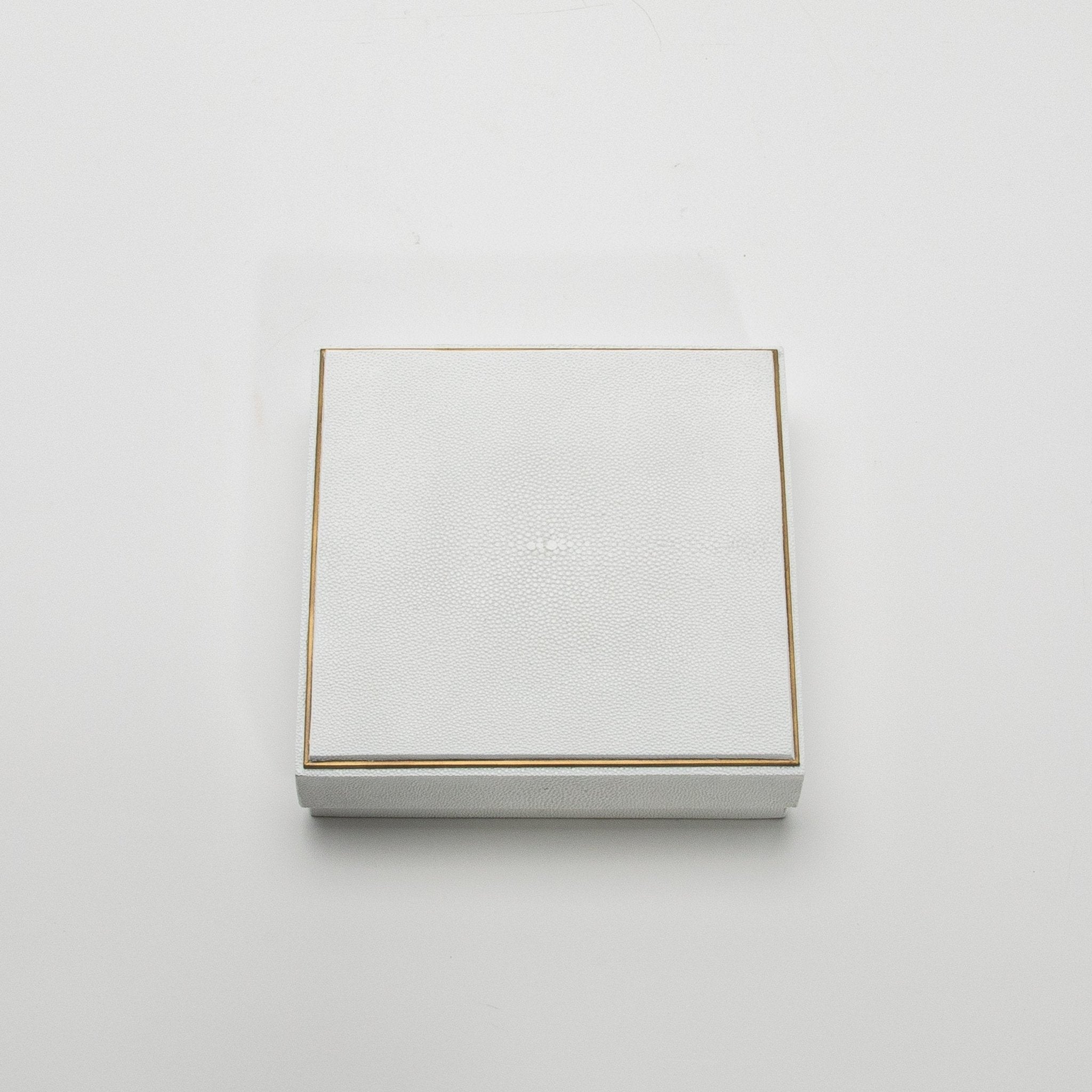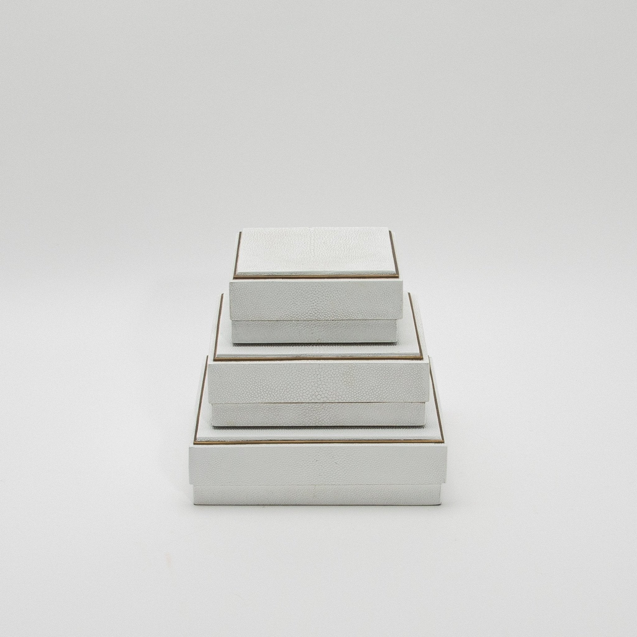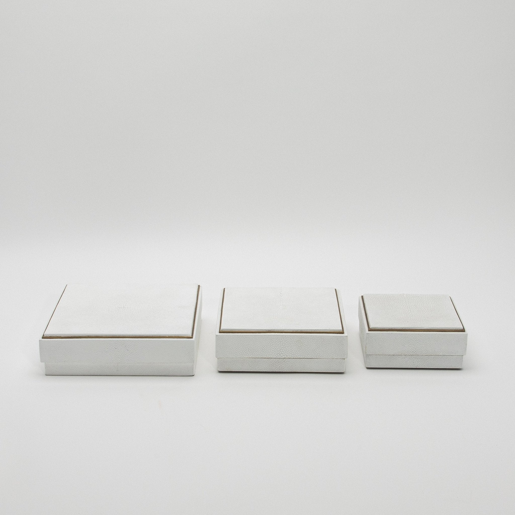 Set of 3 Square Boxes in White Shagreen with Brass Frame by R&Y Augousti