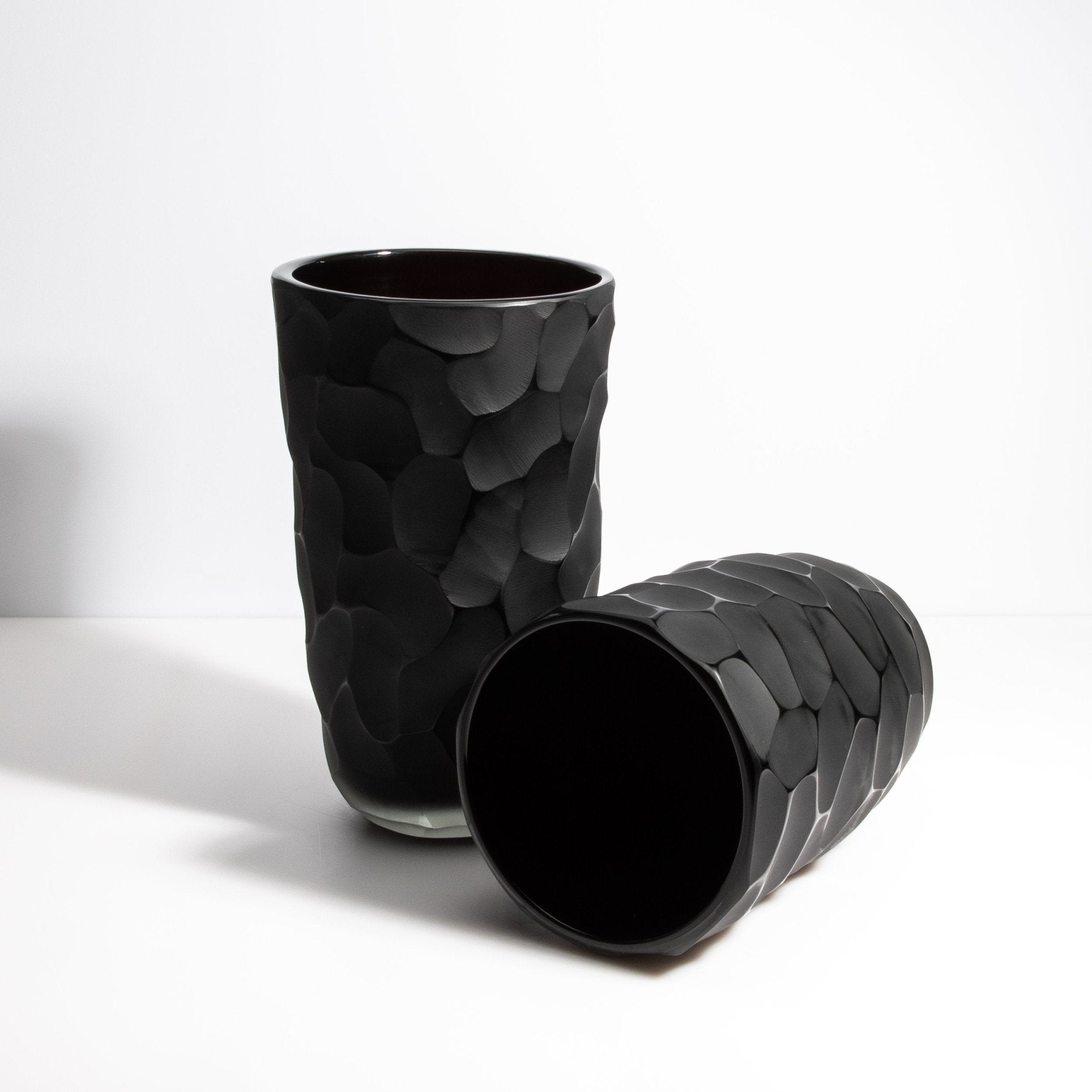 Set of 2 Murano Moon Vases in Onyx Black
