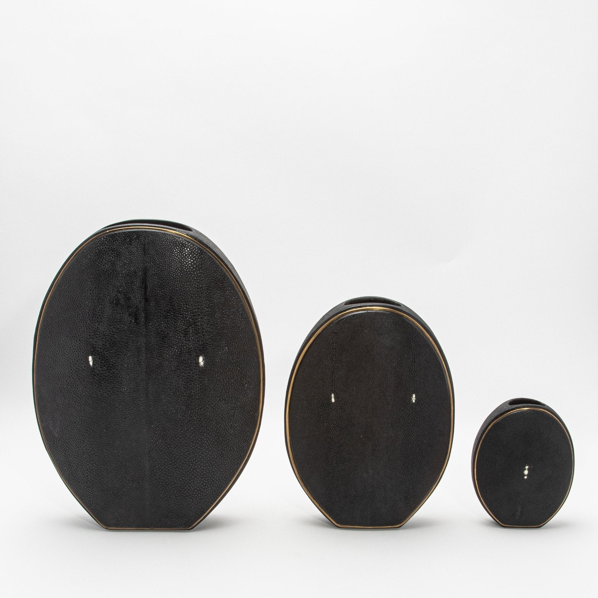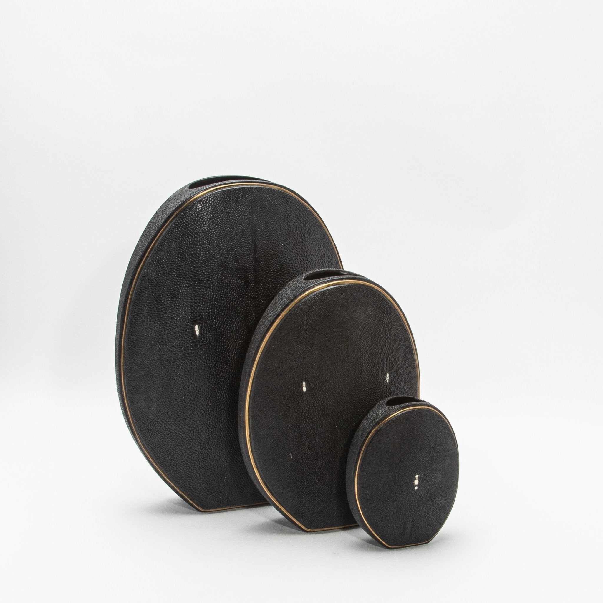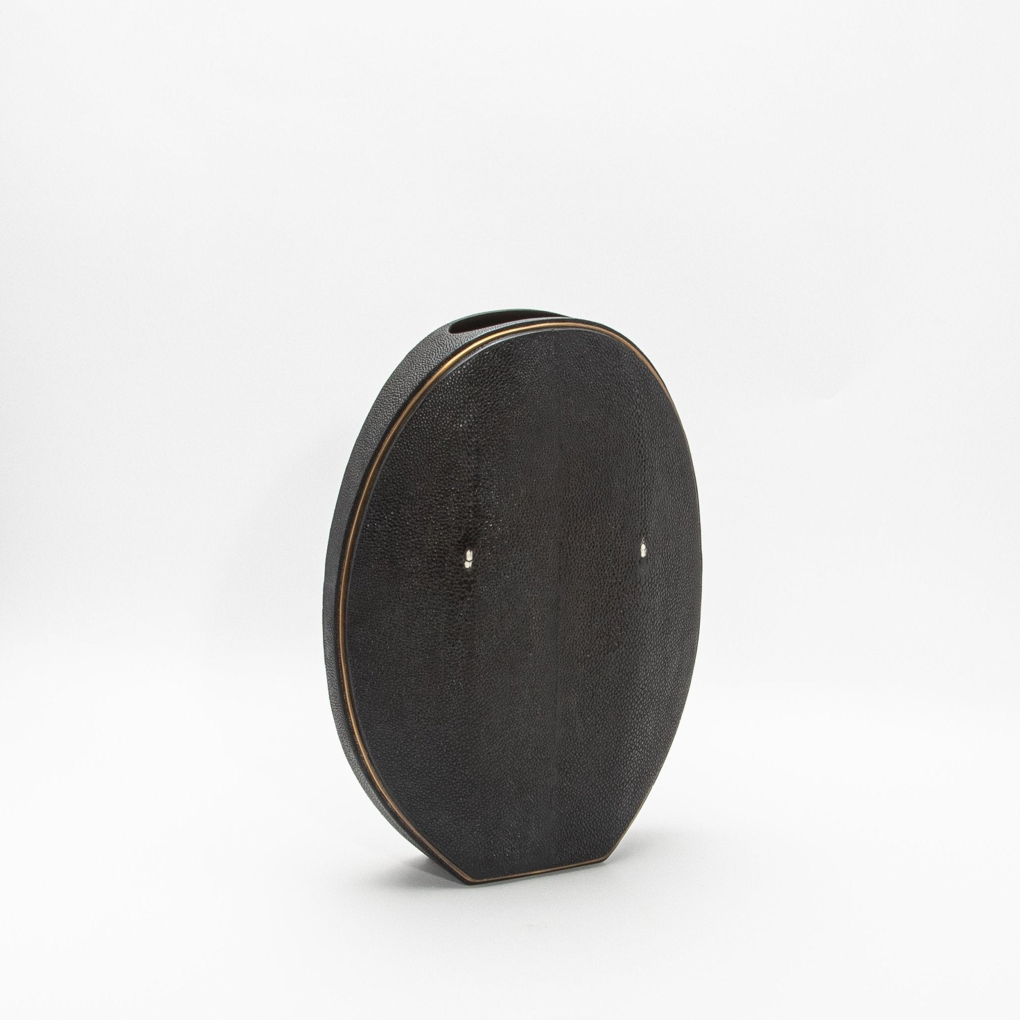 Vase in Black Shagreen with Brass by R&Y Augousti