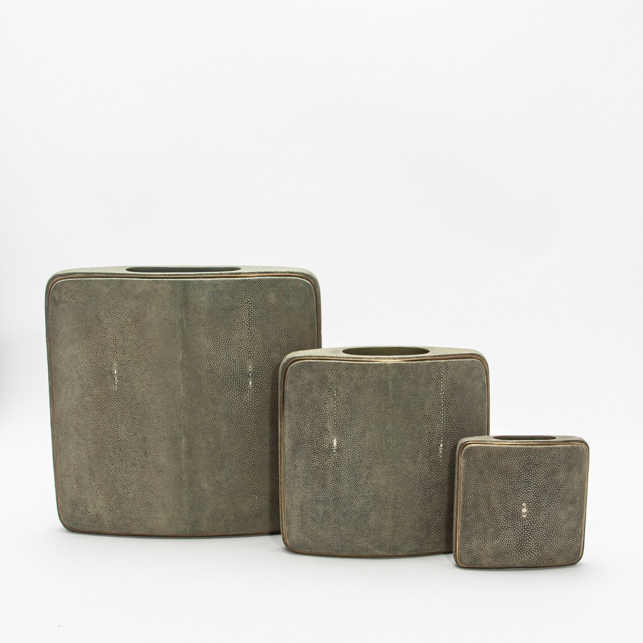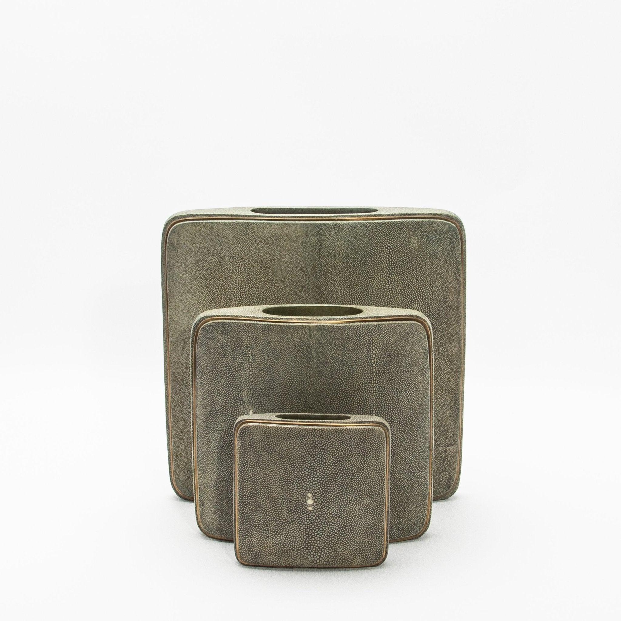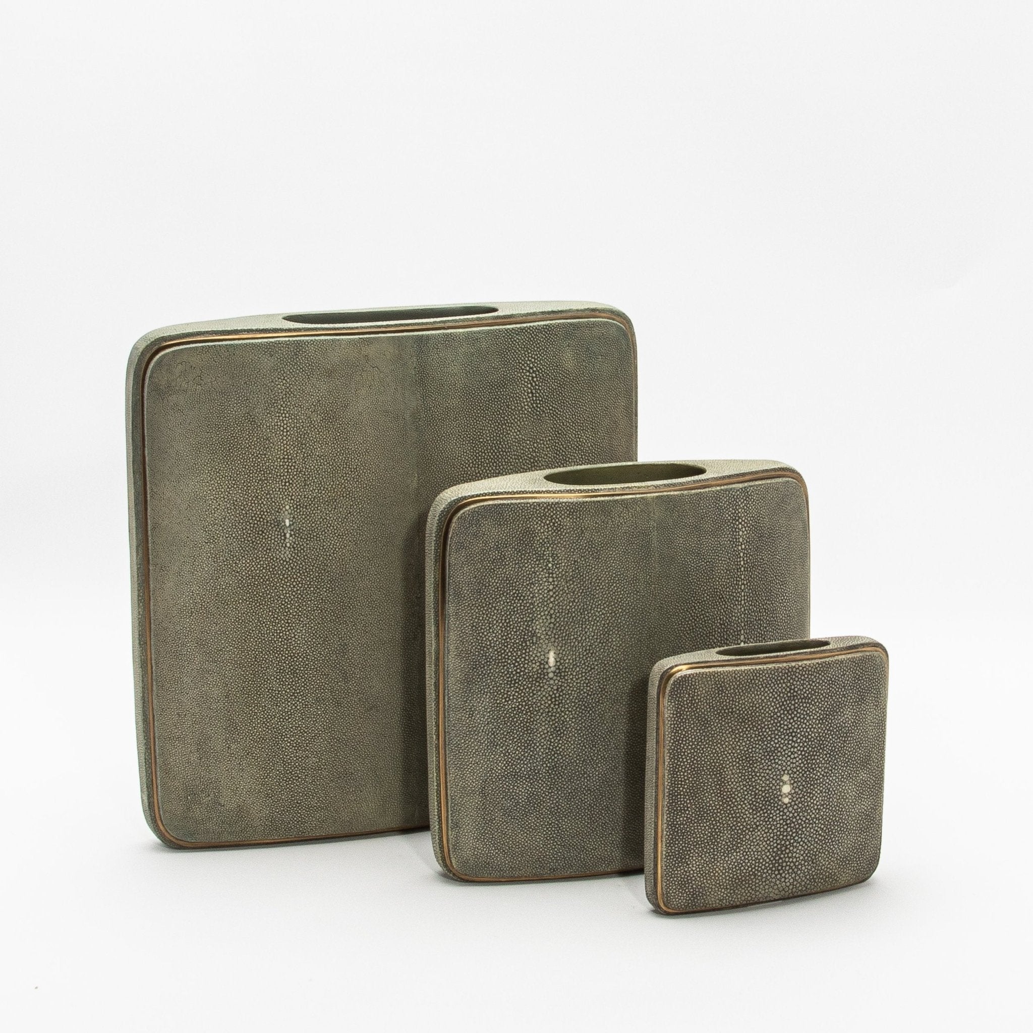 Vase in Grey Shagreen with Brass by R&Y Augousti