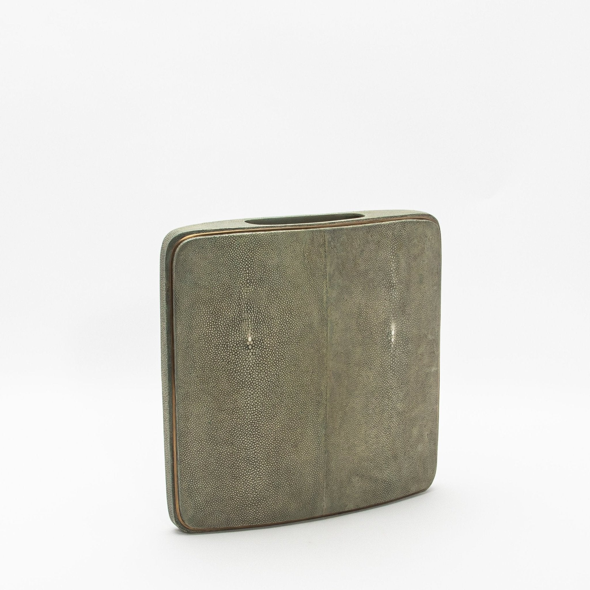The Square Vase by R&Y Augousti is a stunning fusion of modern elegance and meticulous craftsmanship. Handcrafted from luxurious shagreen, this piece is accented with subtle brass details that highlight its sleek contours. The soft, textured surface of the shagreen provides a natural yet refined finish, creating a timeless look that will elevate any space. The rectangular form gives it a contemporary edge, while the artisanal techniques used to create it ensure each vase is one-of-a-kind.