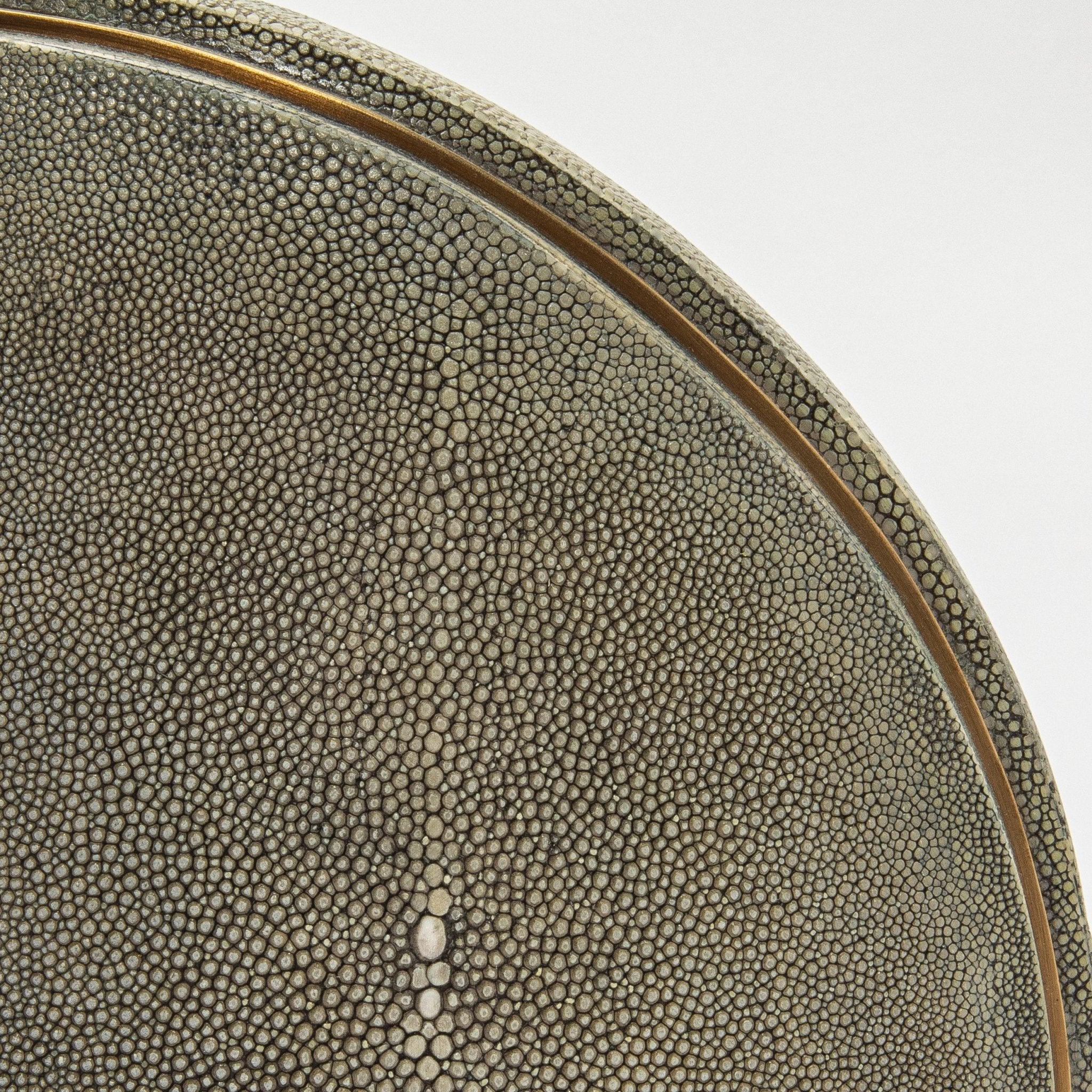 This exquisite vase by R&Y Augousti captures the essence of artisanal craftsmanship with its luxurious shagreen surface, complemented by the elegance of hand-finished brass detailing. The round form offers a sculptural, modern silhouette, while the natural texture of shagreen provides a tactile richness that adds depth and dimension to its design. Subtle yet striking, this piece effortlessly blends organic materiality with refined sophistication, making it a perfect addition to a curated interior.
