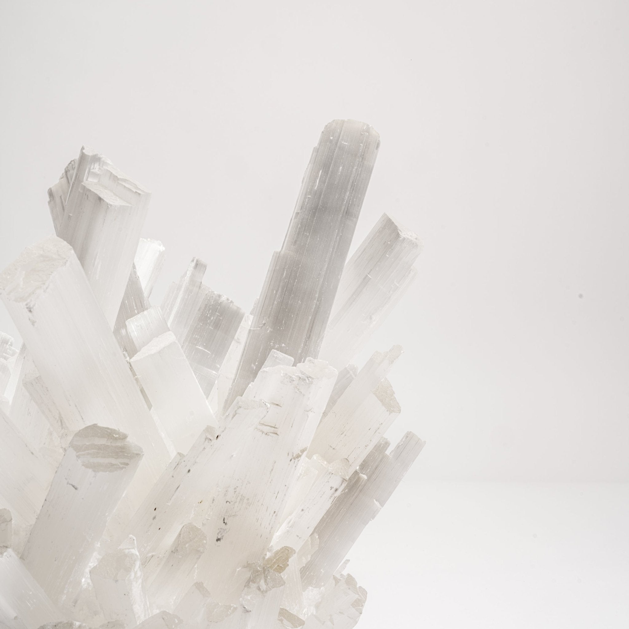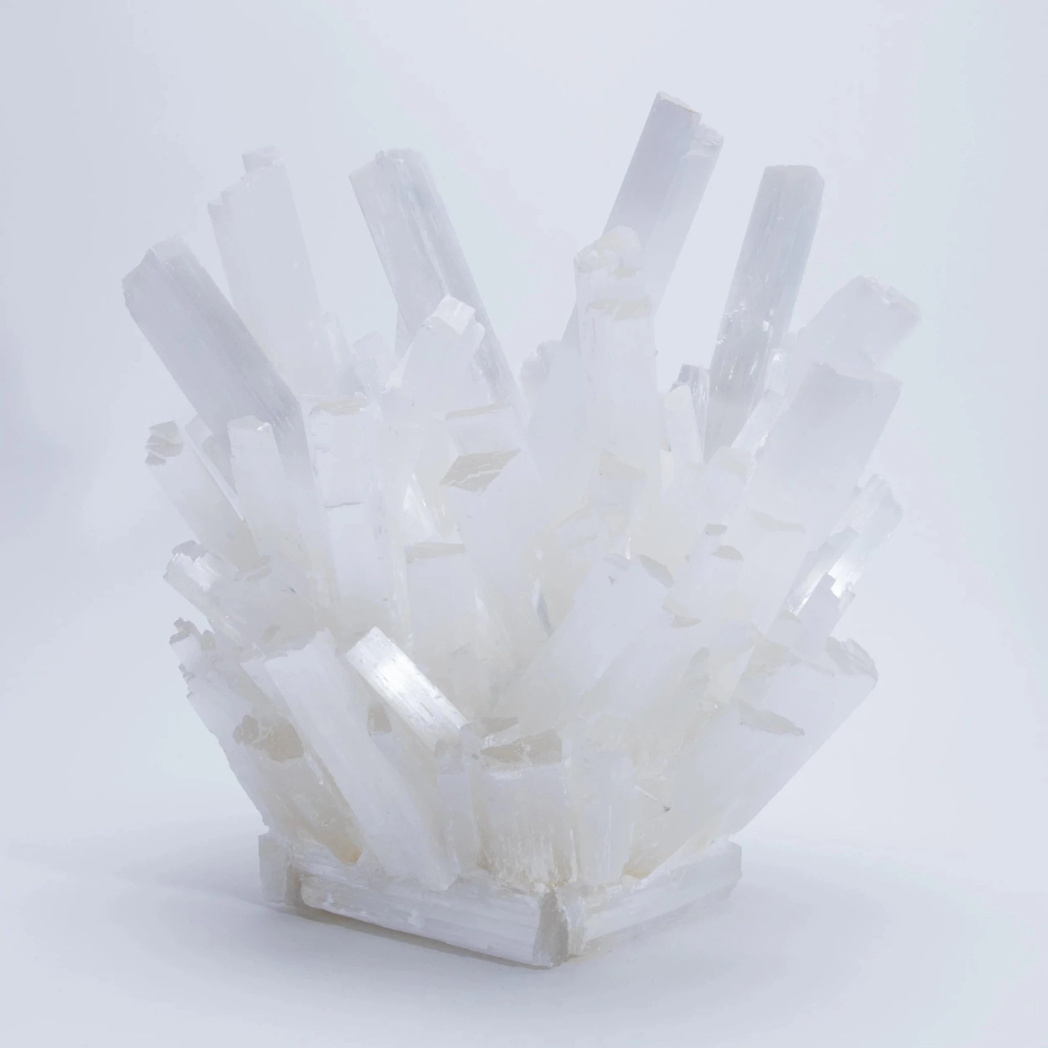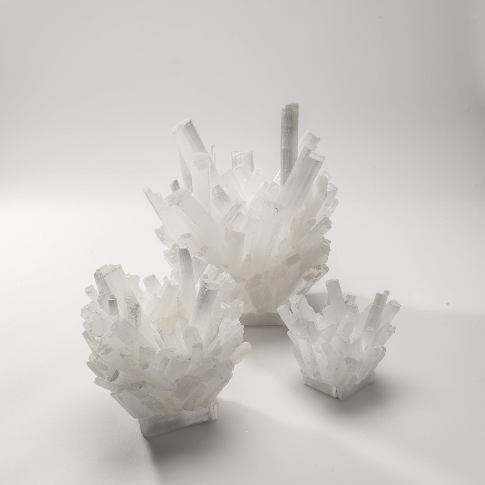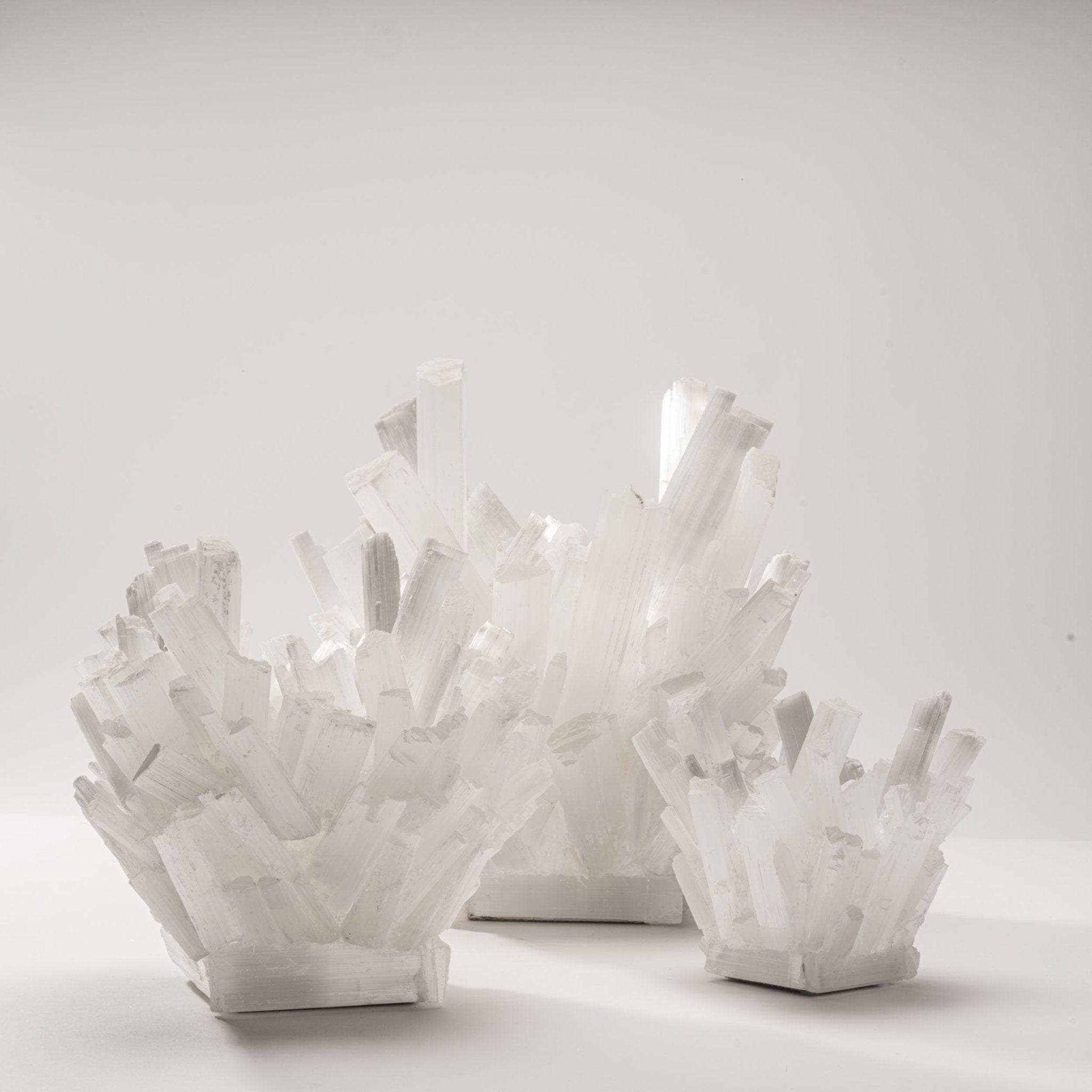 The Selenite Planter Vessel by Kathryn McCoy is a luminous sculptural vessel carved from radiant natural selenite. Formed from crystalline blades that rise organically around the perimeter, each piece reveals the stone’s natural striations, translucency, and architectural structure. No two are ever alike, making every planter a singular mineral composition shaped by nature and refined through hand craftsmanship.