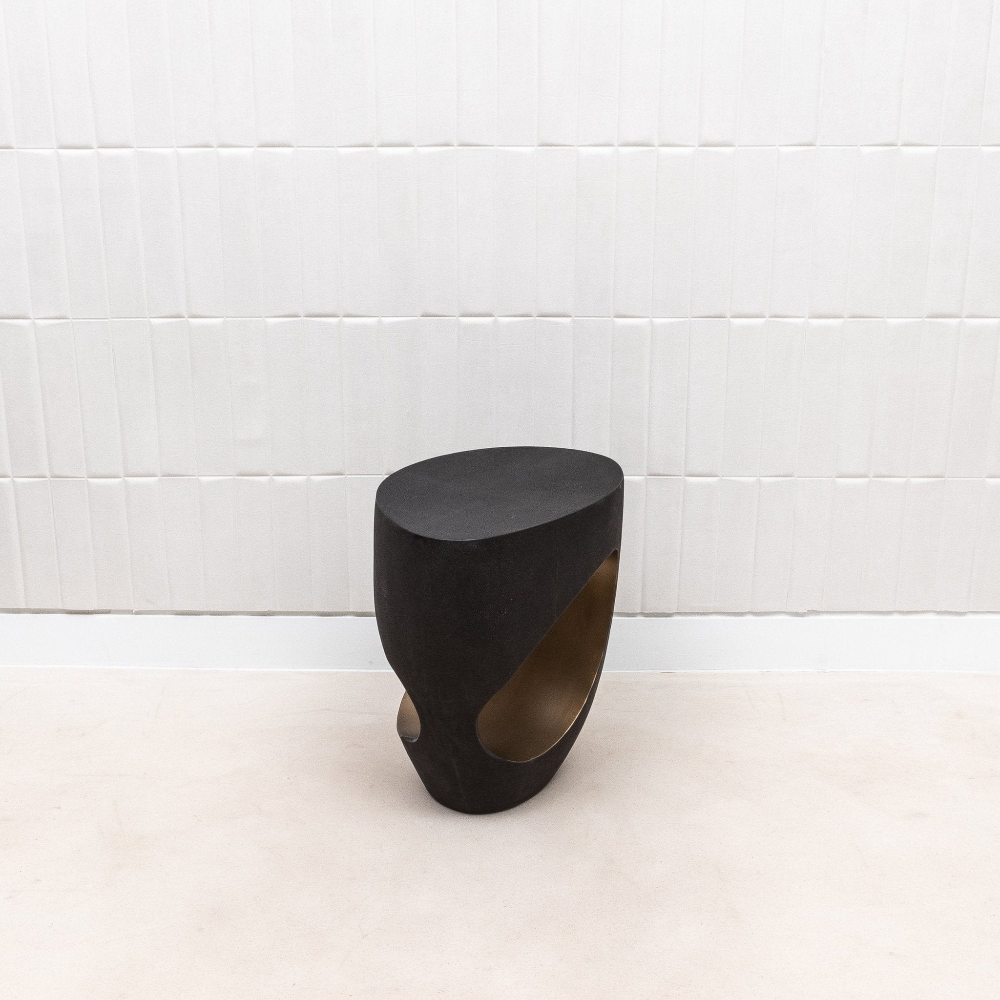 The Eclipse Stool by R&Y Augousti is a striking fusion of art and functionality, wrapped in luxurious black shagreen and accented with a bronze patina brass interior. The stool’s bold, sculptural design is characterized by its unique, hollowed-out shape, which creates a sense of lightness and fluidity despite its solid construction. Meticulously hand-crafted, this piece is as much a work of art as it is a functional piece of furniture, making it a perfect addition to any modern or contemporary space. Its elegant form and luxurious materials make the Eclipse Stool a standout piece that elevates the ambiance of any room.