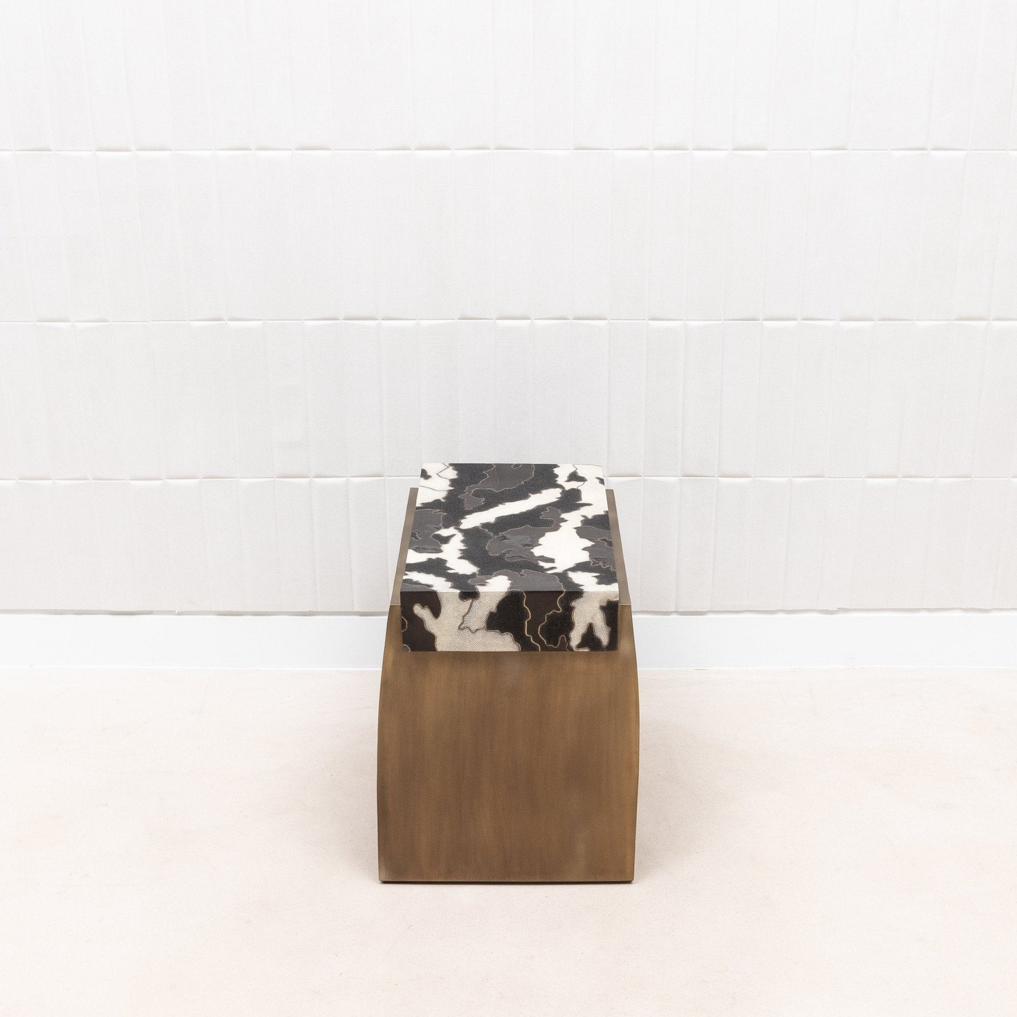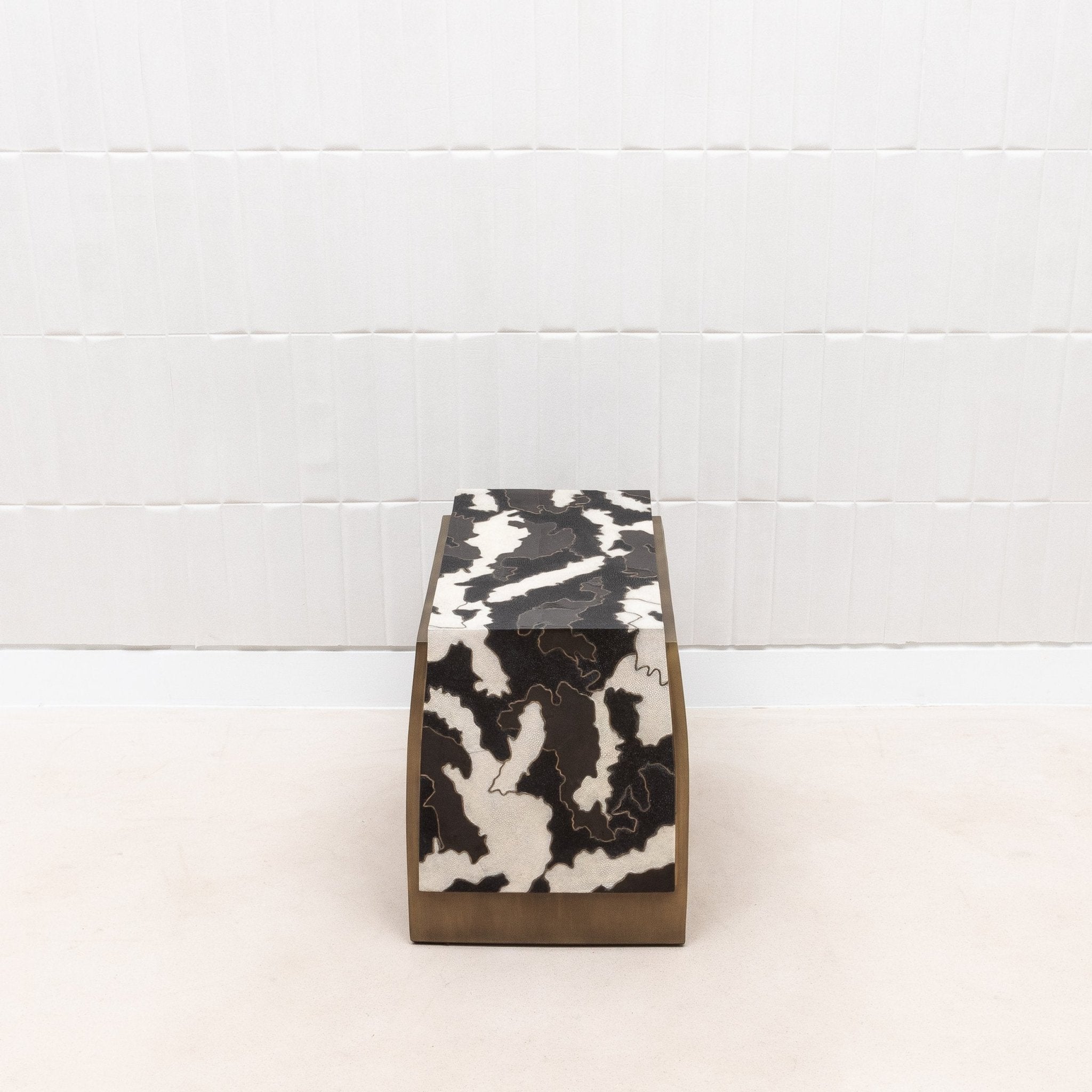 The Laurens Camo Stool by R&Y Augousti is a stunning blend of artistry and function, crafted to be a statement piece in any setting. The seat is adorned with a captivating pattern made from a meticulous inlay of shagreen and shell, creating a unique camouflage effect. This intricate design is framed by a sleek bronze patina brass base, adding a touch of warmth and sophistication to the piece. The stool's refined construction and luxurious materials make it not just a piece of furniture, but a work of art that embodies the essence of contemporary elegance. Perfect for use as a stool or an accent piece, the Laurens Camo Stool is a testament to the exquisite craftsmanship of R&Y Augousti.