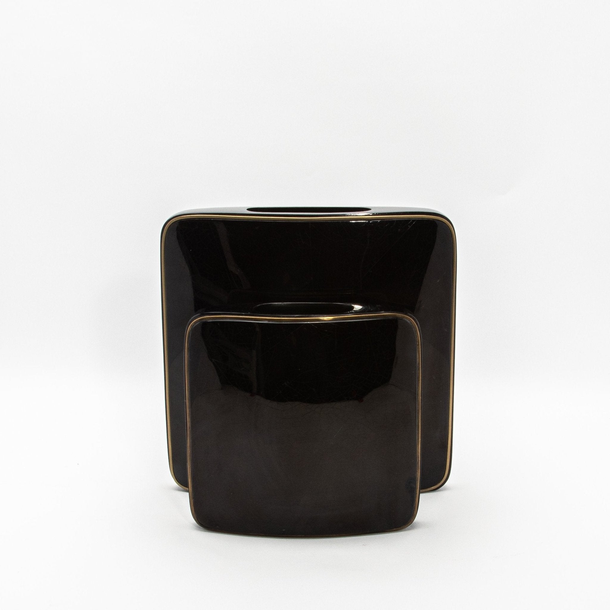 The R&Y Augousti “Square Vase” in medium size, crafted from luxurious black shell with brass accents, exudes timeless elegance. Its sleek, geometric silhouette is both bold and refined, showcasing the harmonious contrast between the glossy black shell surface and the fine brass details that frame its edges. The natural material of the shell offers a lustrous depth, while the brass details add a touch of warmth and classic charm, making it a perfect centerpiece in any contemporary or modern space.