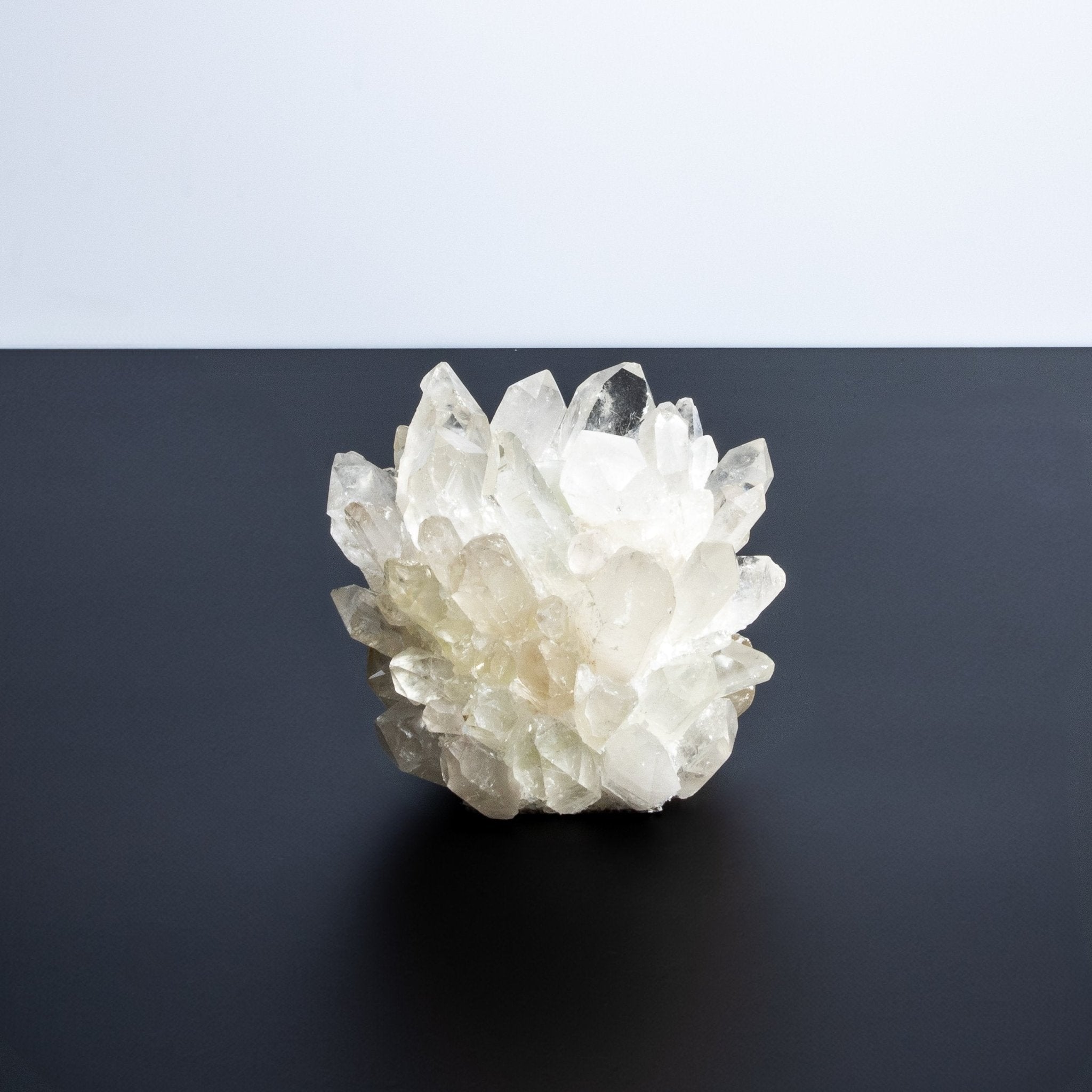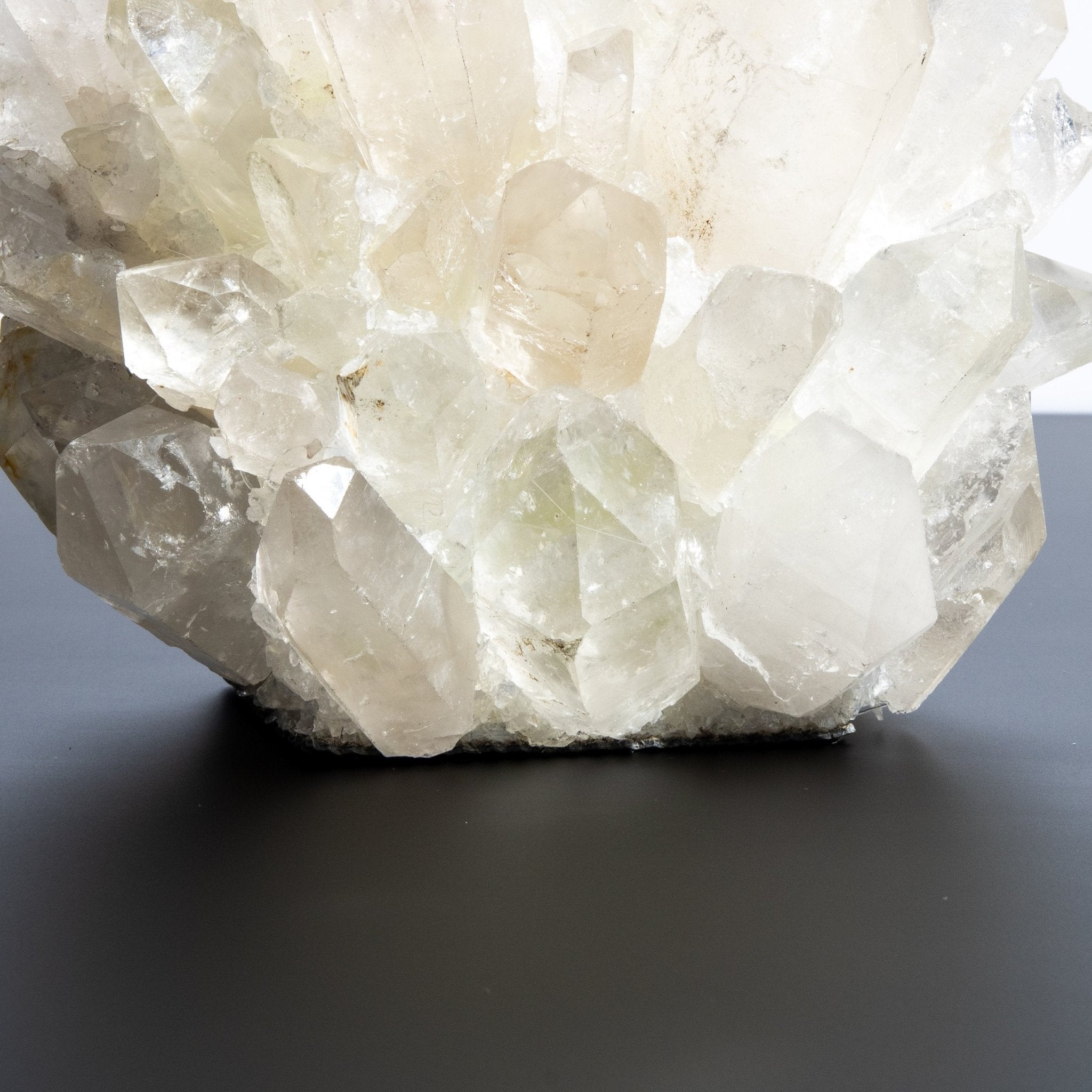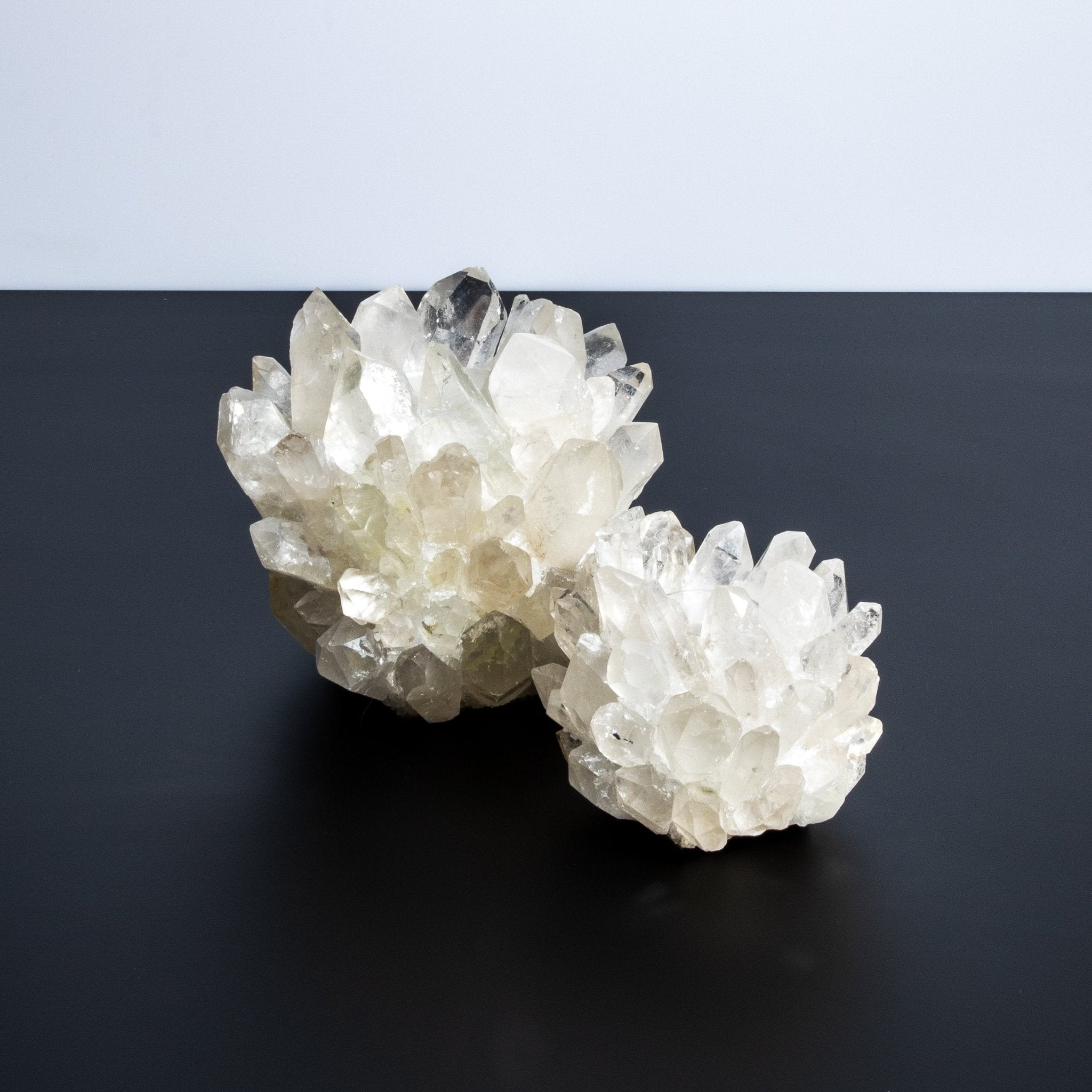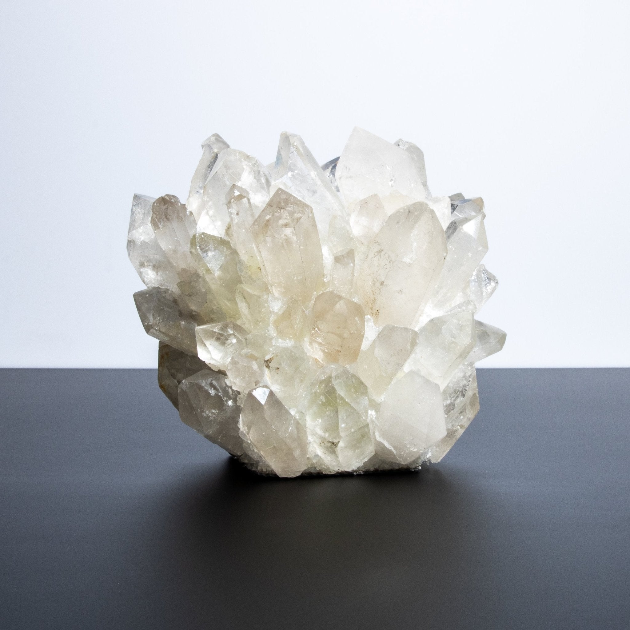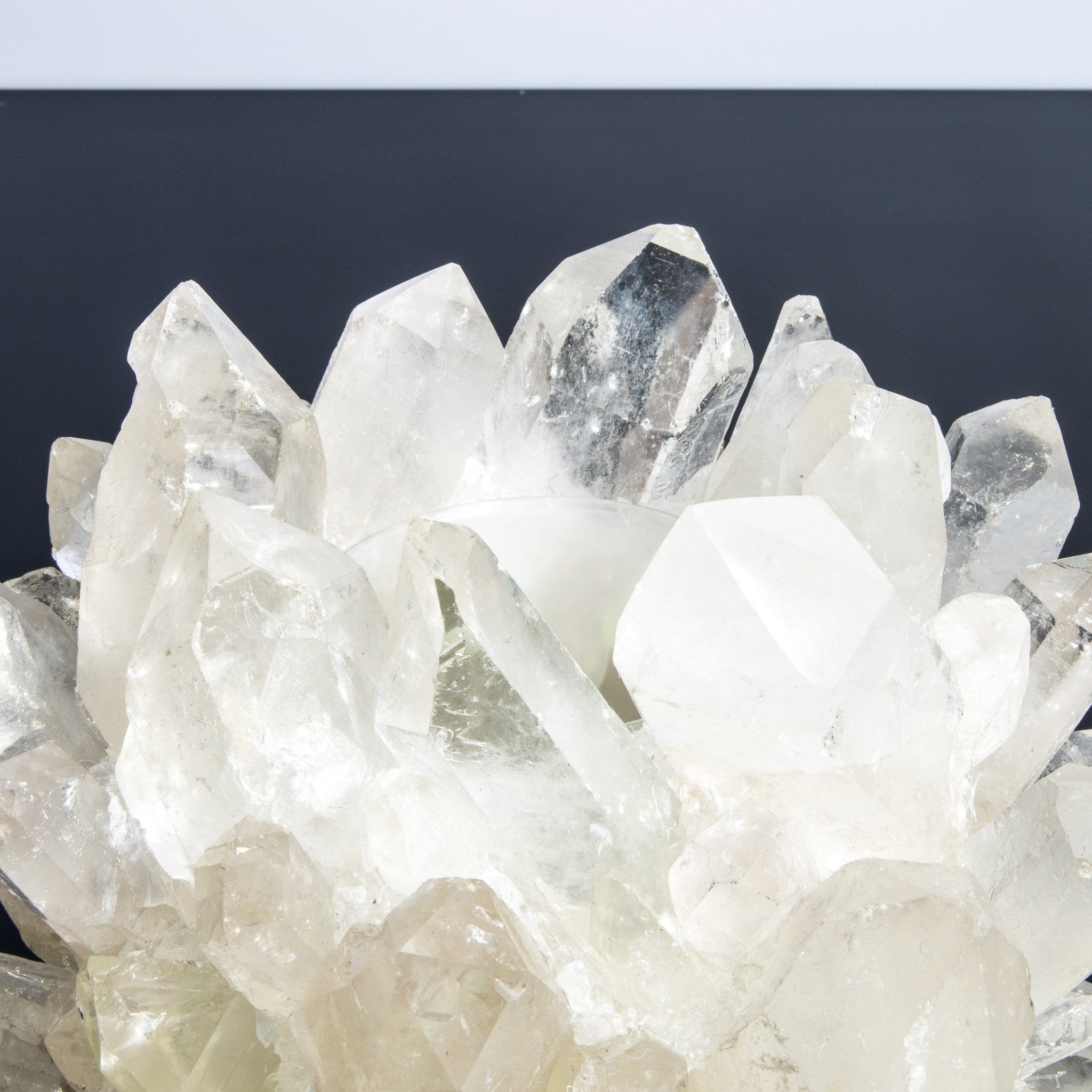 When illuminated, the votive holder's stunning beauty is further enhanced by the candlelight, casting a mesmerizing interplay of light and shadow. This radiant effect elevates the ambiance, transforming any room into a haven of opulence and grace. The brilliance of the quartz, combined with Kathryn McCoy's meticulous attention to detail, creates a piece that is not only functional but also a luxurious work of art.