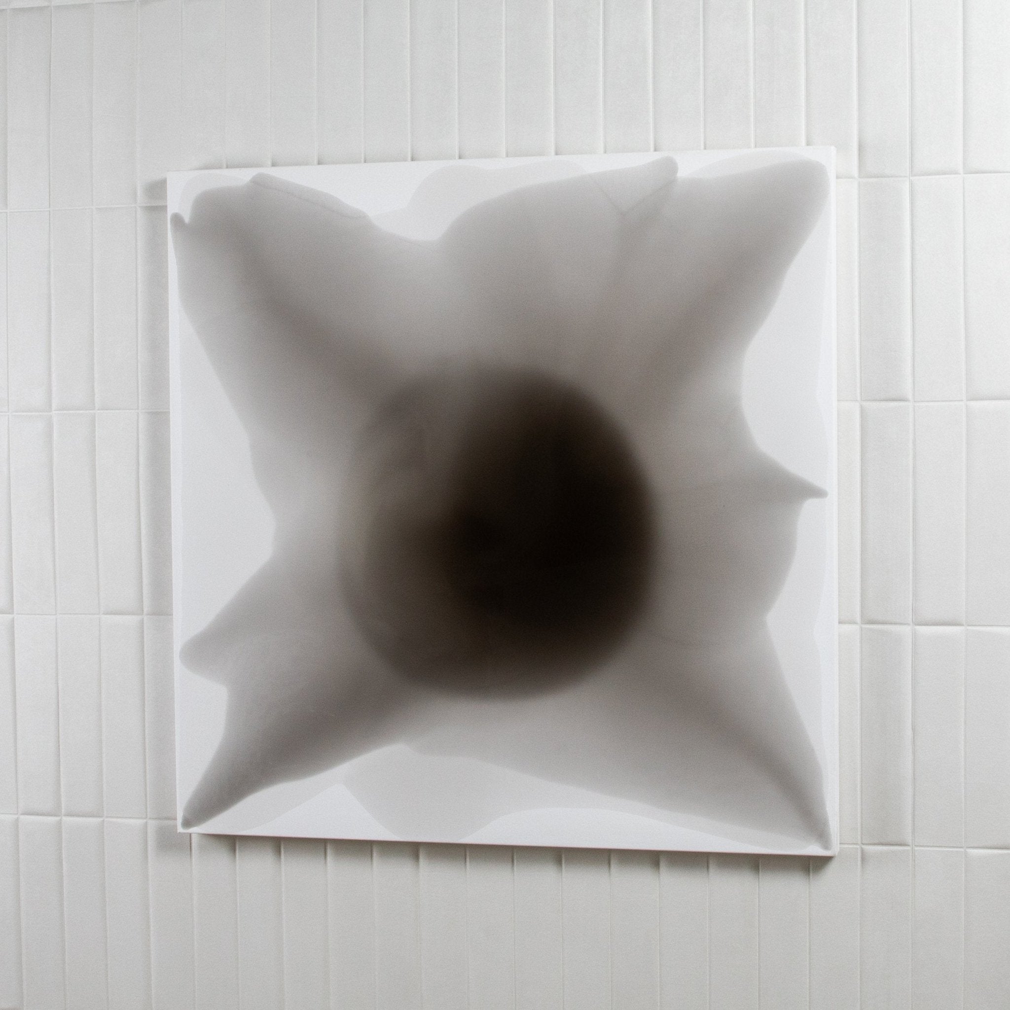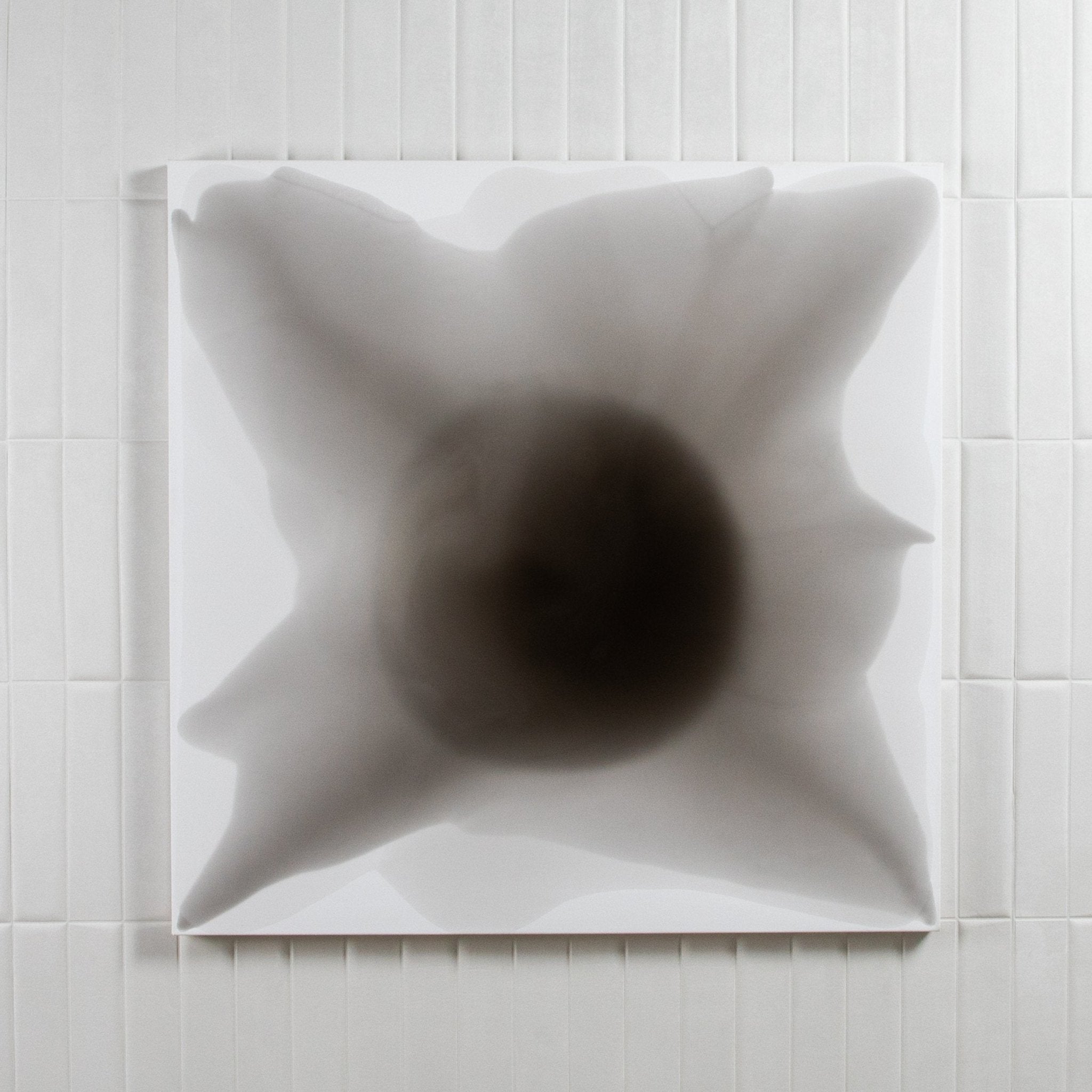 From the series e·the·re·al, this monochromatic composition offers a haunting serenity, unfolding in smoky layers of grey and soft black. Created with ink and resin on canvas, its organic form seems to radiate from a quiet, inky core—like a breath held in perfect stillness. The gentle contrast and translucent veils suggest a delicate balance between shadow and light, presence and absence. Its muted palette enhances a sense of introspection, evoking feelings of quiet strength, subtle melancholy, and meditative calm. The movement is slow and expansive, offering a moment of visual silence in a world of noise. This piece speaks to restraint, elegance, and emotional depth through simplicity. A singular creation framed in concealed wood, it becomes more than décor—it is a reflective presence in the room, a visual pause. Perfect for minimalist spaces, it adds a touch of poetic stillness and timeless sophistication.